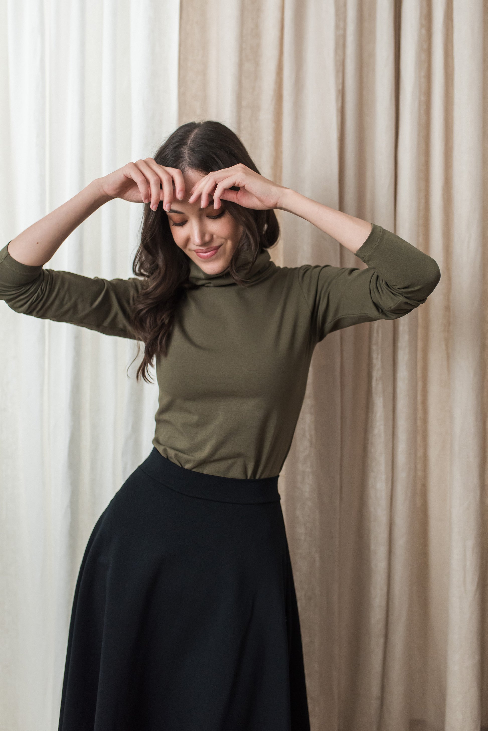 > A NUI szoknya sportosan nőies megjelenést kölcsönöz letisztult szabásával. Fekete pamut futter anyagunkból kellemes viselet, amely derék részen követi a test vonalát, majd lefelé finoman bővül. A térdig érő fazon elegáns, mégis praktikus viselet - sokféle stílusú felsőrésszel kombinálható. Remek választás hétköznapi vagy elegánsabb összeállításokhoz is.