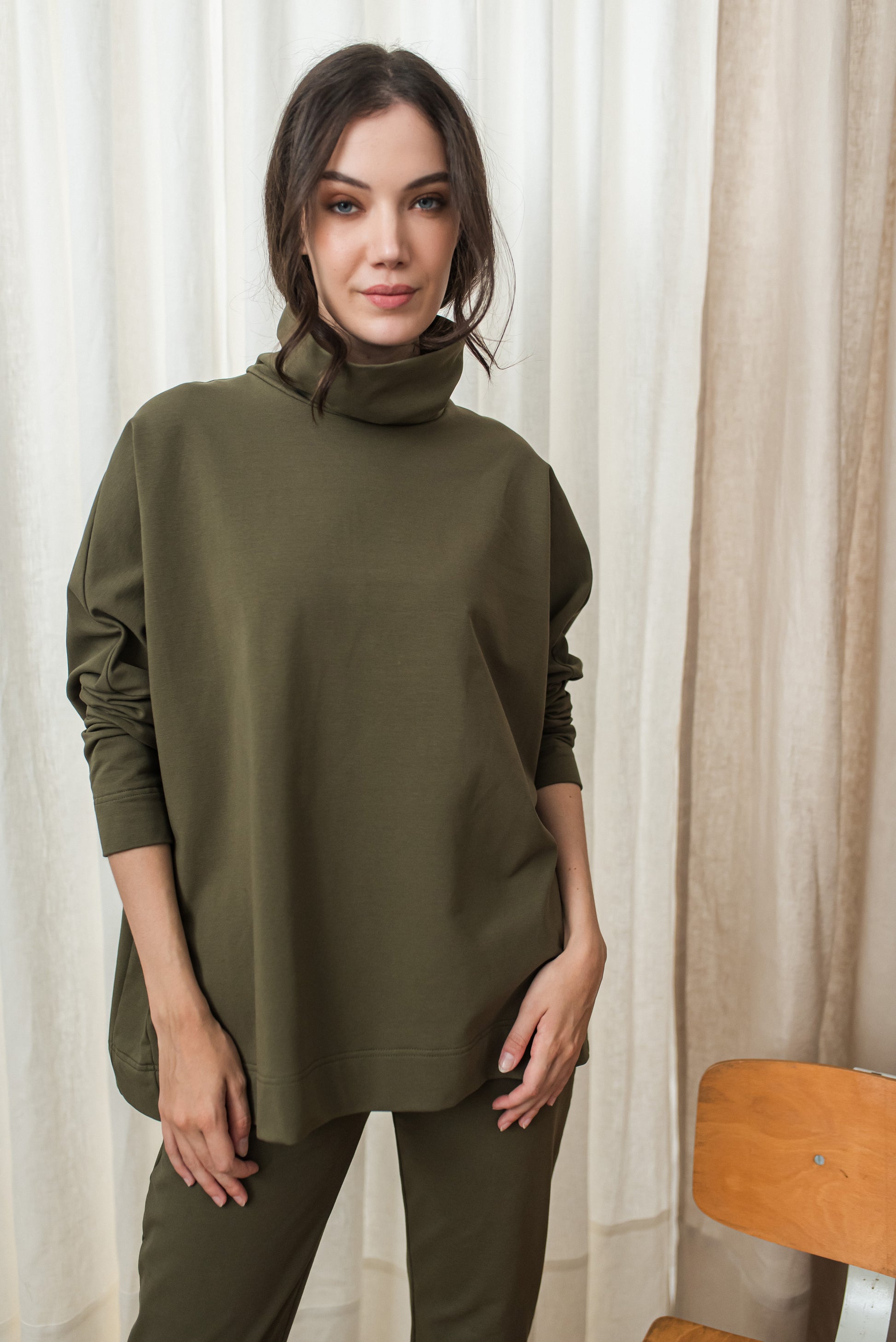 > SHIA pulóverünk egyméretes, oversize darab - mely rövid garbójával, hosszú ujjával és bő szabásával gondoskodik a tökéletes kényelemről - puha anyagának köszönhetően pedig ölelő gondoskodással kíséri végig a napodat. Ez a pulcsi főnyeremény annak, akinek a harmónia lételeme - minden magasságon és alkaton jól mutat, az őszi szezon egyik kedvence nálunk.