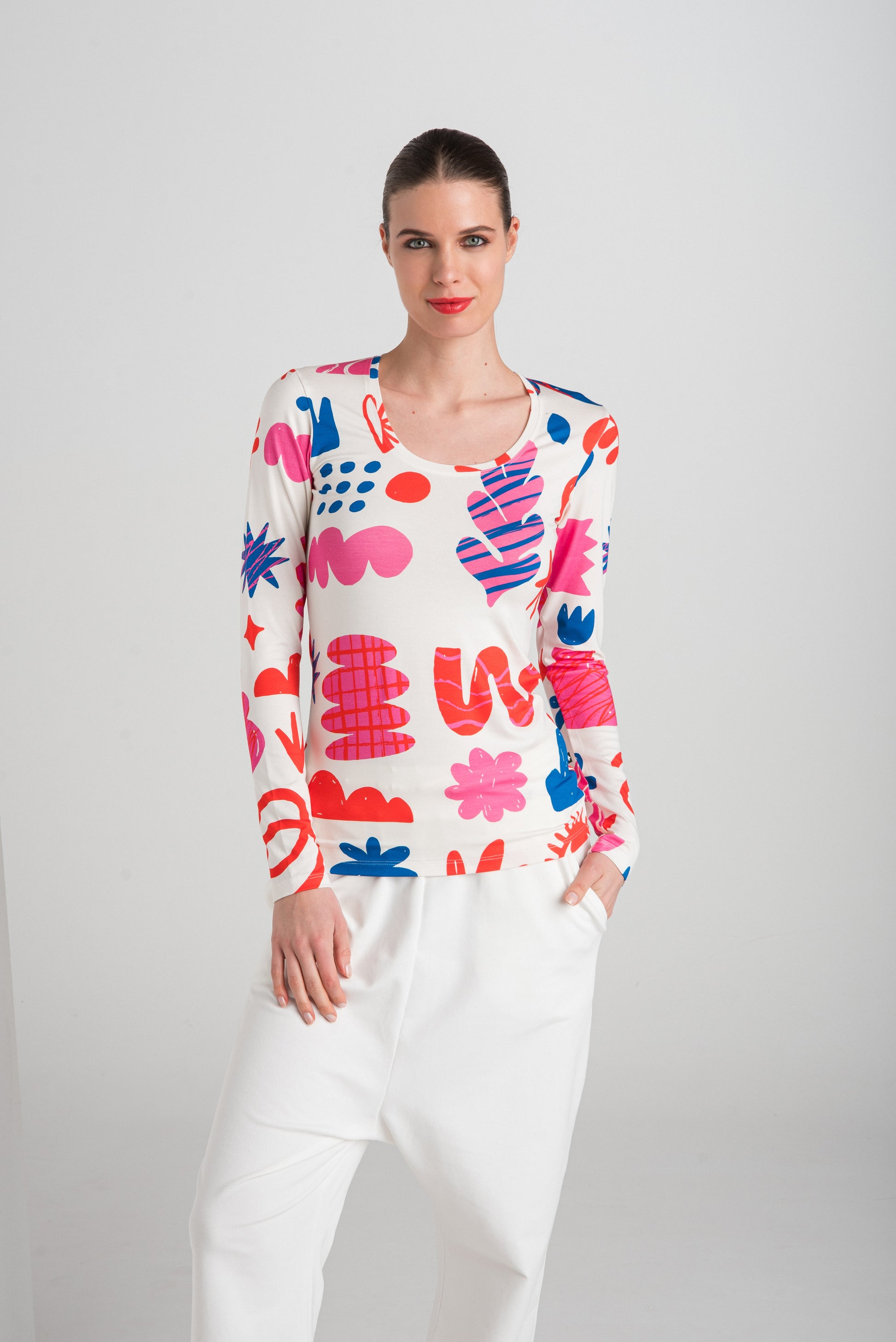 As spring awakens, we rediscover the playfulness of life. The " enJOY" collection, with its colorful patterns and light cuts, says: enjoy the moment, play with life! The natural softness and harmony of the materials help you notice the beauty in even the simplest things, while you live your everyday life with self-forgetfulness. Make the world a little more colorful!
