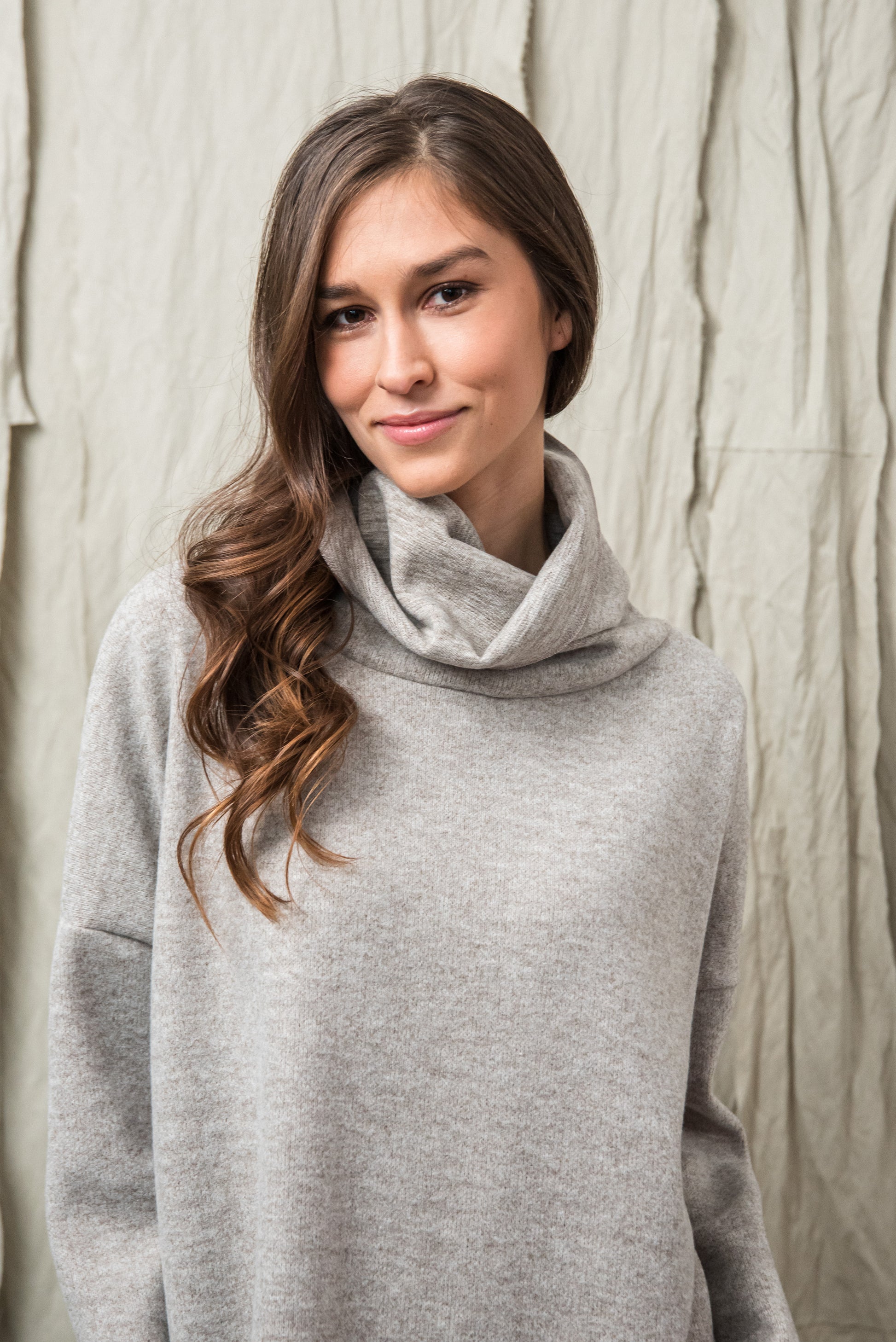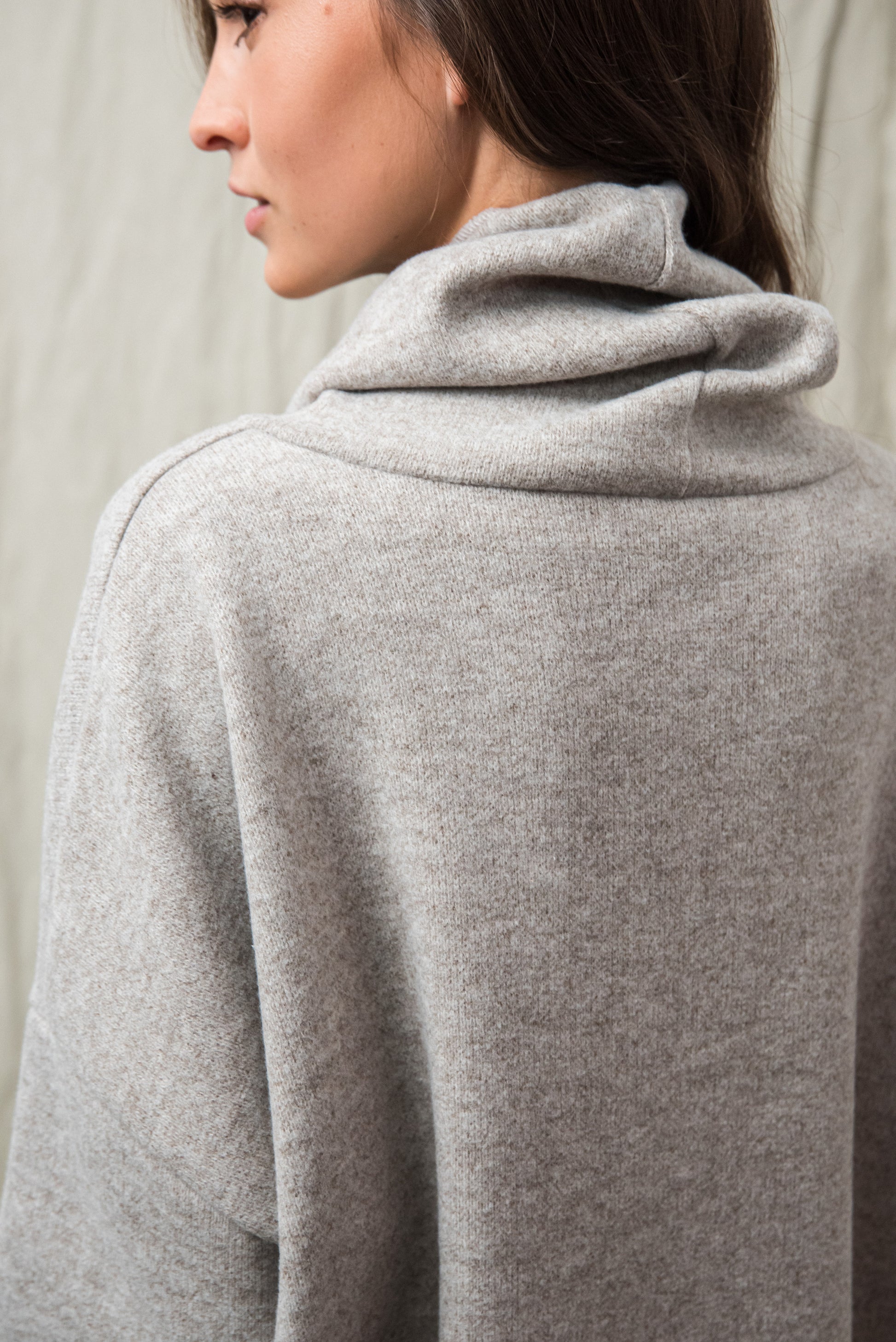 The medium-thick, soft knit texture has a natural elasticity that gently follows your movements while providing pleasant warmth. Its surface is extremely soft, silky to the touch, has a soft drape, and gently glides against the skin — this gives it that immediately noticeable comfort that is especially good on colder days. The structured interweaving of the fibers ensures stability, yet retains the intimate, homely softness that is characteristic of quality knit fabrics. Due to the natural softness, the surface may slightly pill with wear - this is a completely normal process typical of knitted fabrics that develops during everyday use. If you experience this, the smaller lumps can be carefully removed by hand or with a gentle pilling remover, so the material retains its harmonious, soft appearance and beauty for a long time. The warmth, elasticity and softness of the texture combine to create a material that is both reliable, comfortable and gently embracing — a truly pleasant companion for everyday life in the cooler seasons.