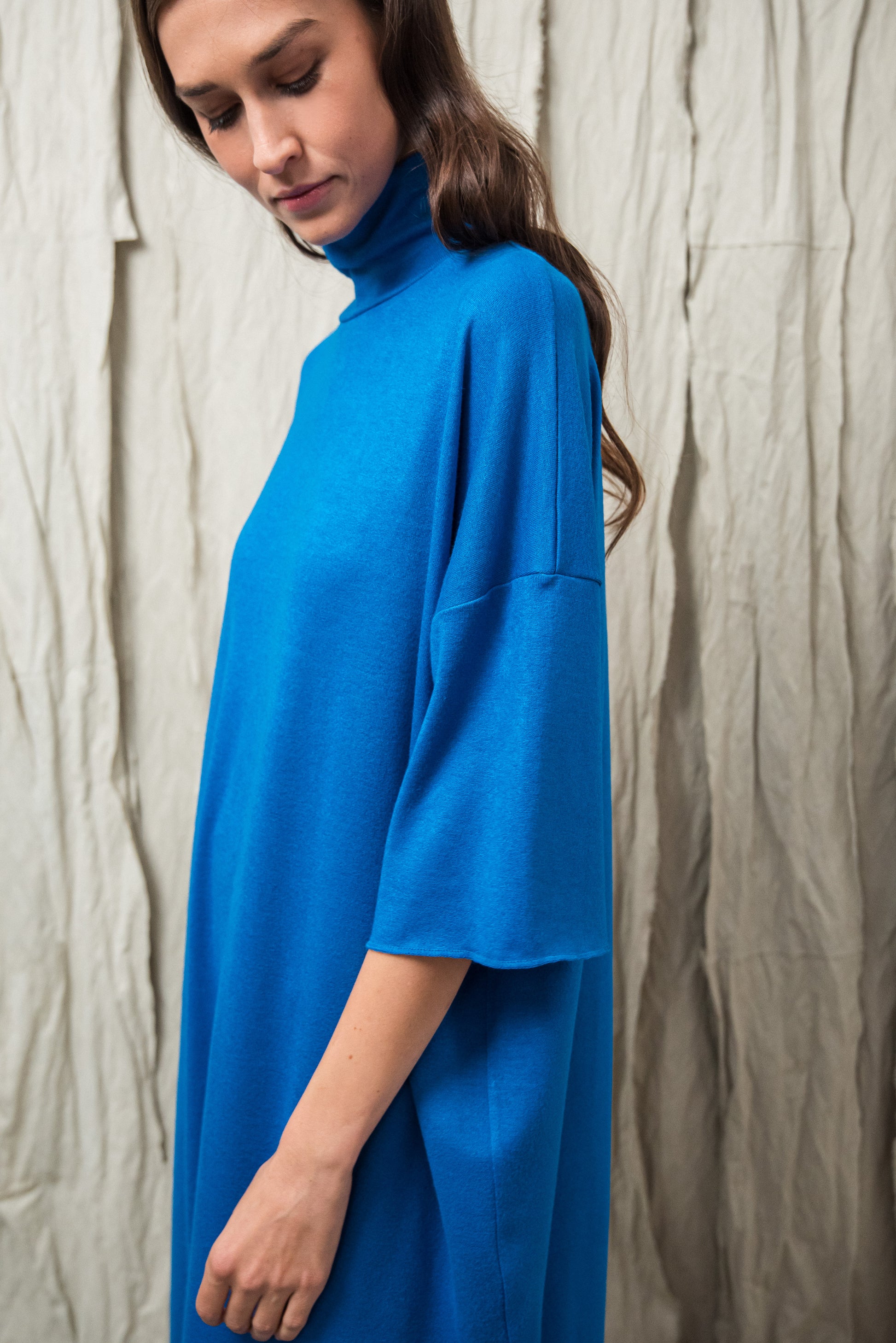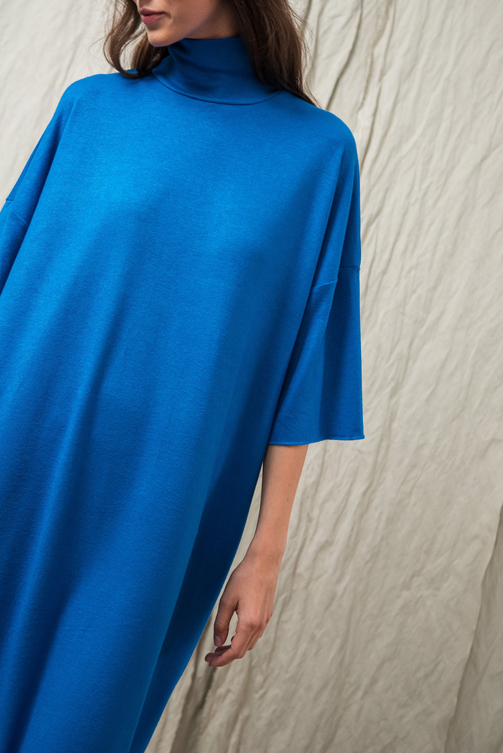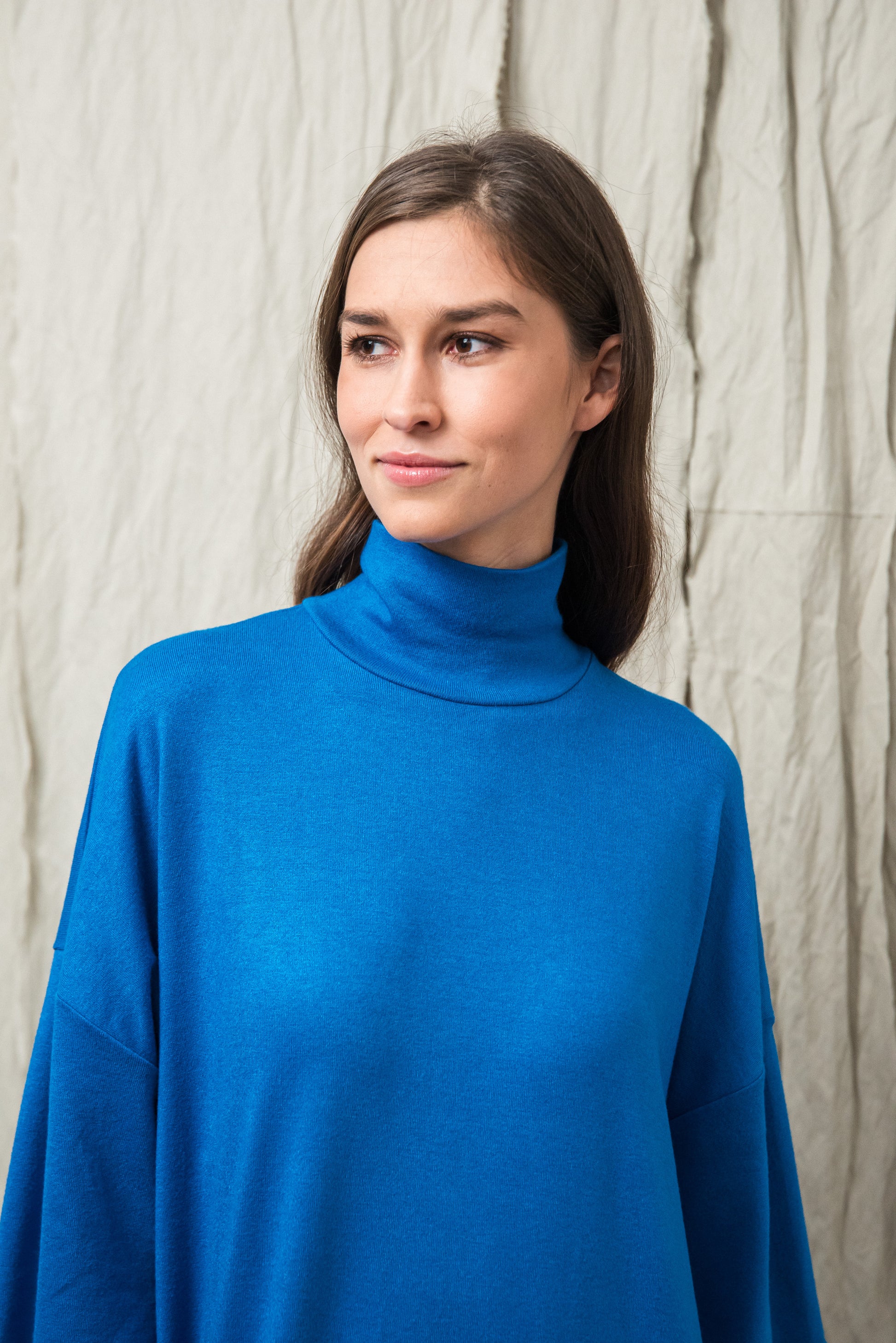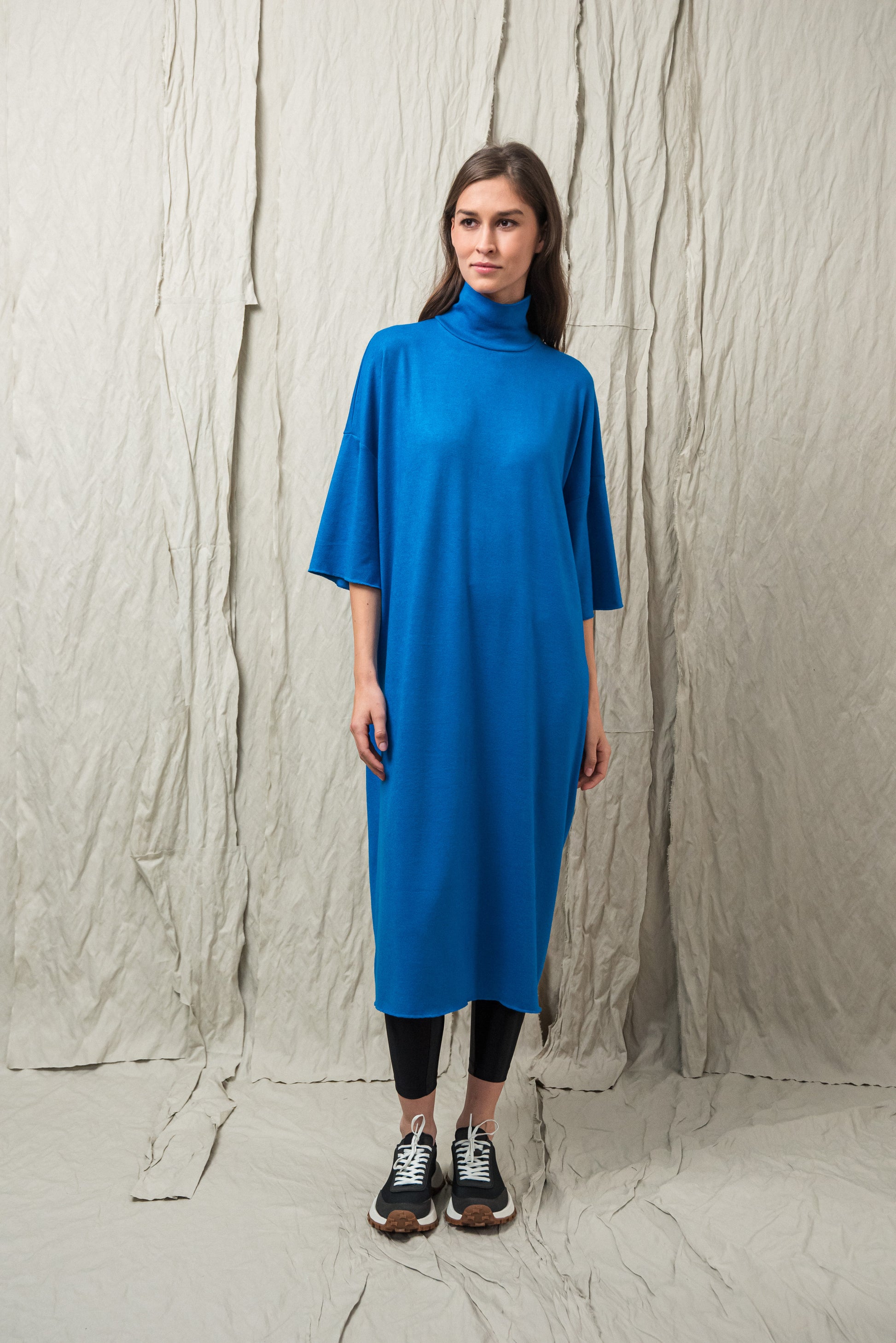 The ANG dress embodies the light, clean aesthetic of NONPLUS: a turtleneck, oversized T-shirt cut that combines freedom of movement with feminine softness. Its casual lines, elbow-length sleeves and turtleneck harmoniously frame the body while giving a confident, liberated look. You can wear it with leggings, trousers or as a dress on its own - it offers carefree comfort and elegant simplicity every time. The timeless character of the cut and Functionality reminiscent of the NONPLUS philosophy makes it indispensable in everyday life.