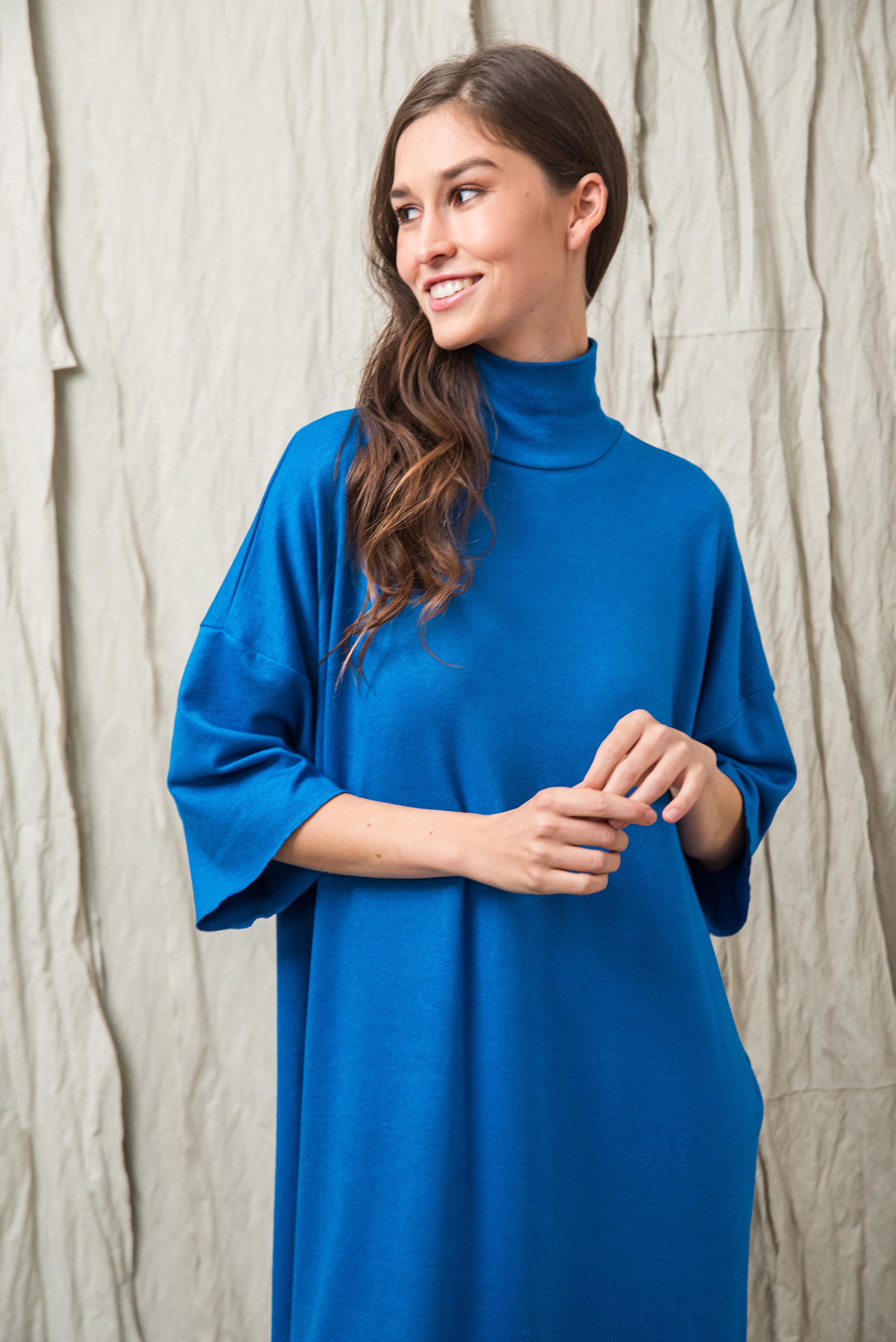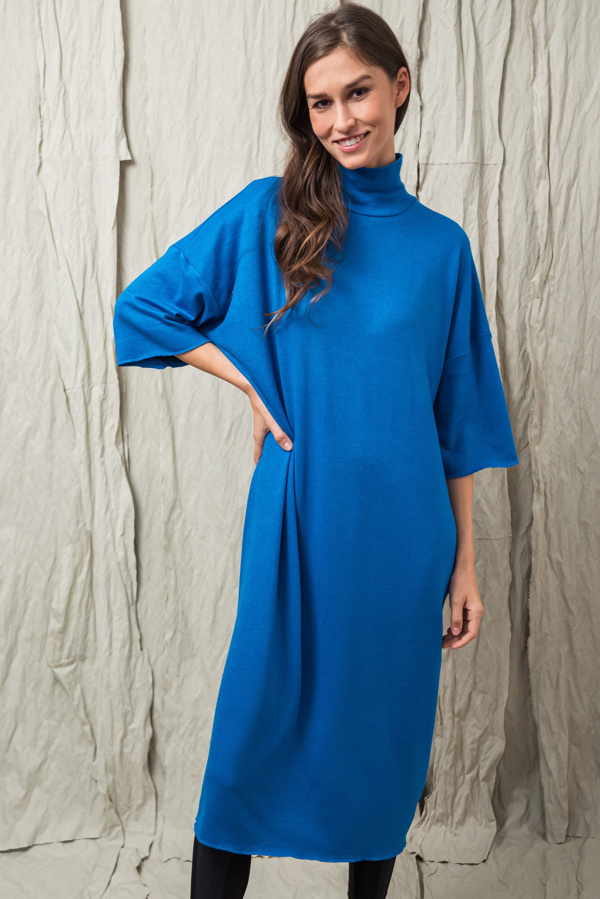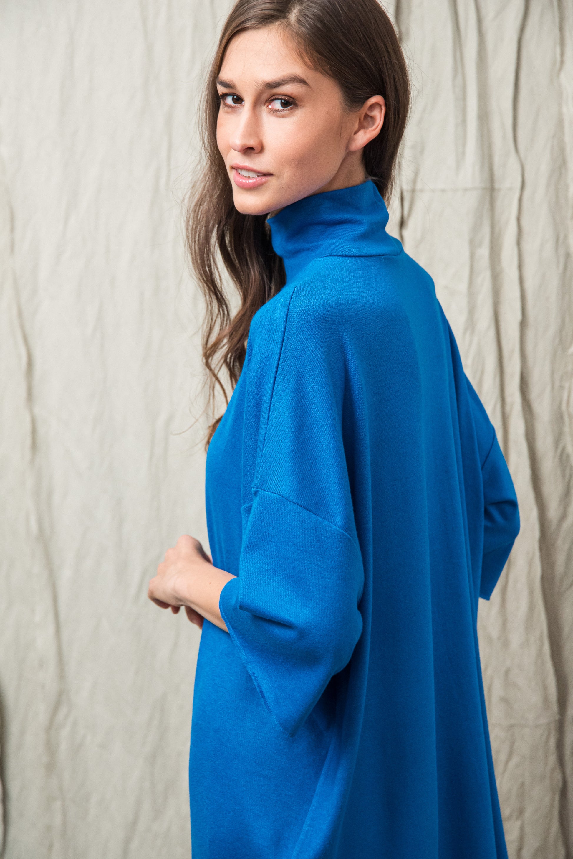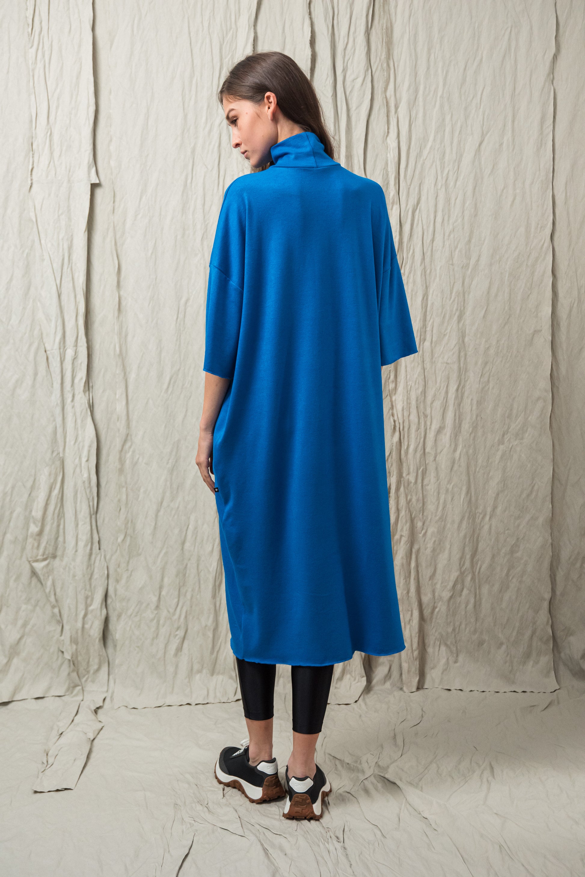 The ANG dress embodies the light, clean aesthetic of NONPLUS: a turtleneck, oversized T-shirt cut that combines freedom of movement with feminine softness. Its casual lines, elbow-length sleeves and turtleneck harmoniously frame the body while giving a confident, liberated look. You can wear it with leggings, trousers or as a dress on its own - it offers carefree comfort and elegant simplicity every time. The timeless character of the cut and Functionality reminiscent of the NONPLUS philosophy makes it indispensable in everyday life.
