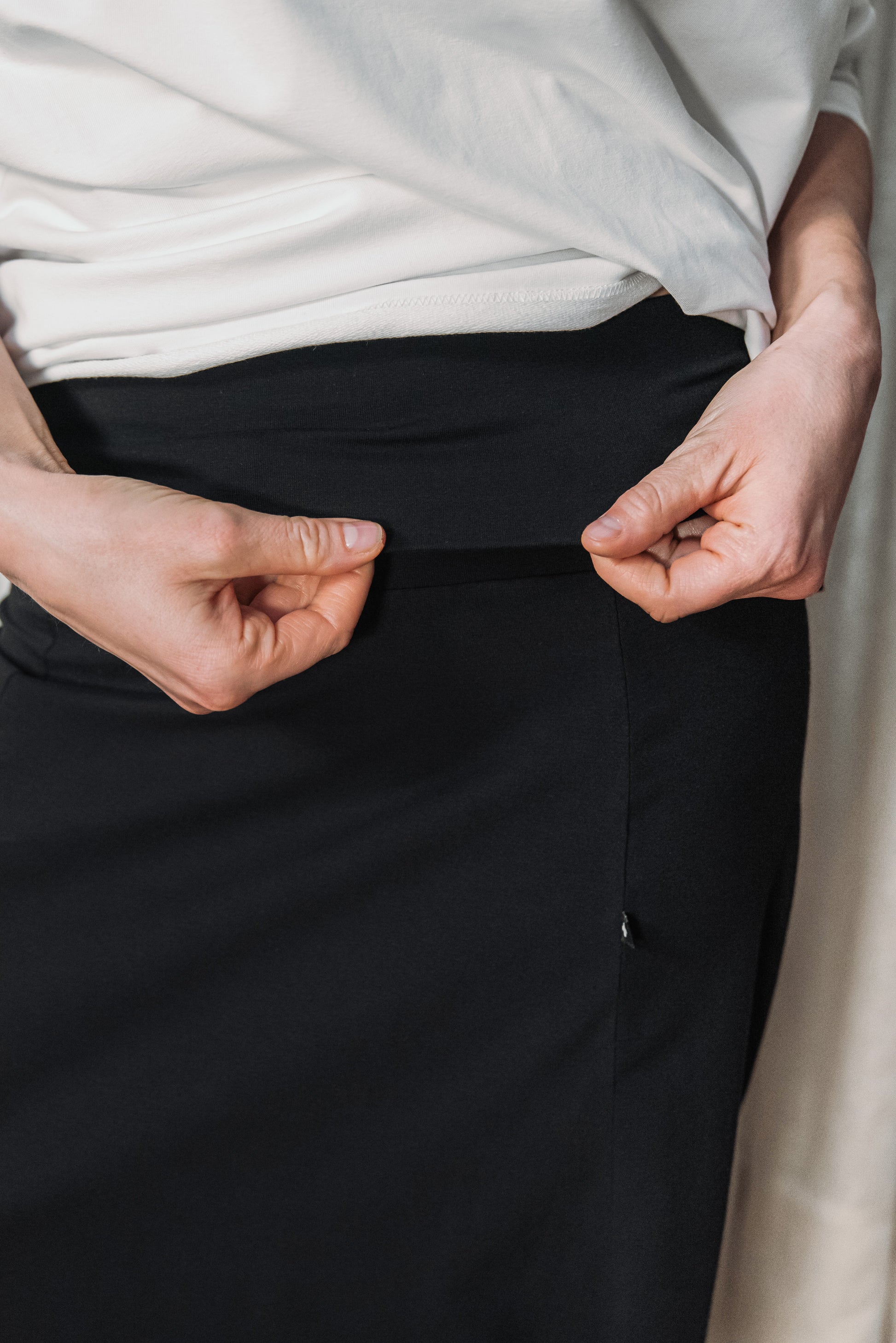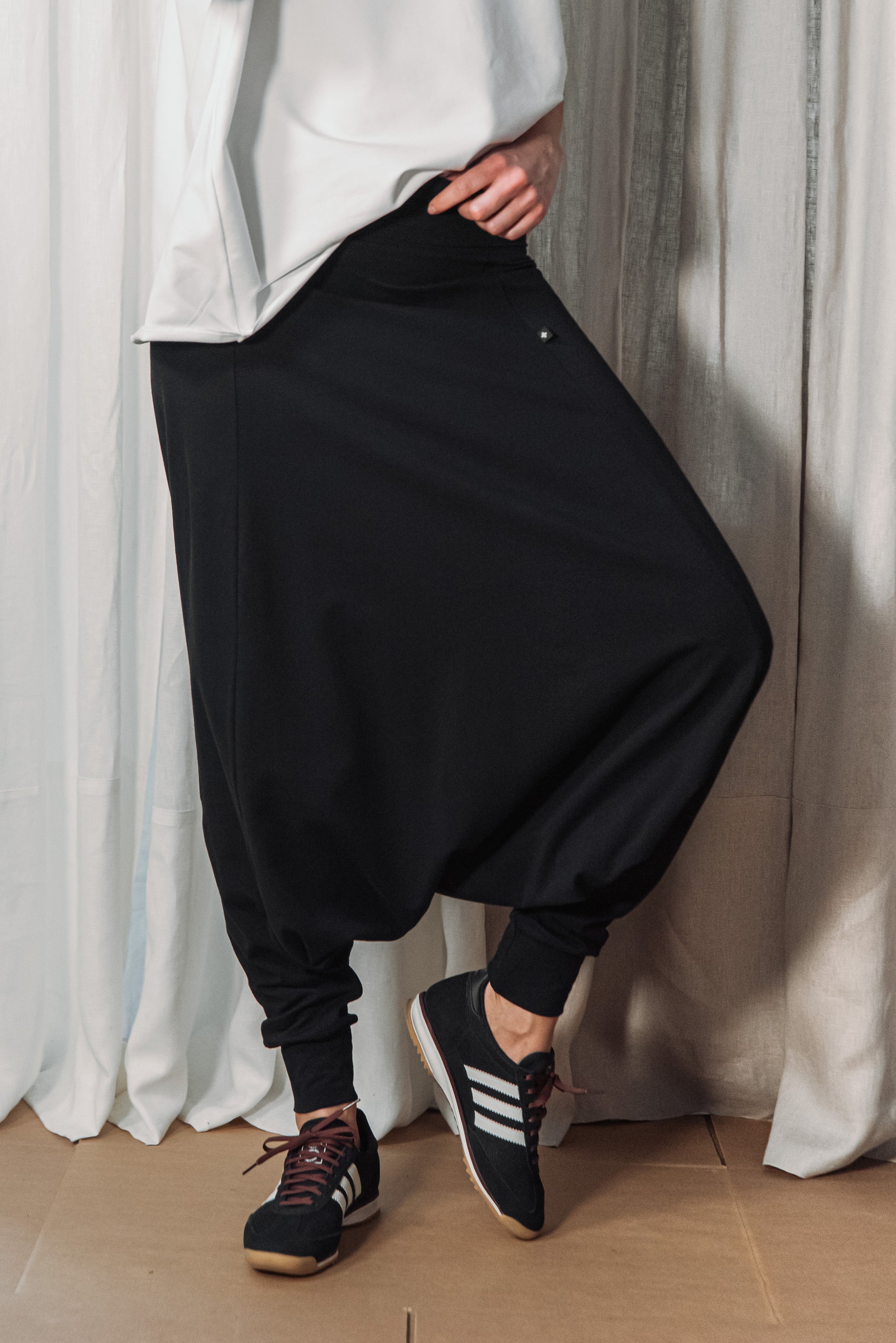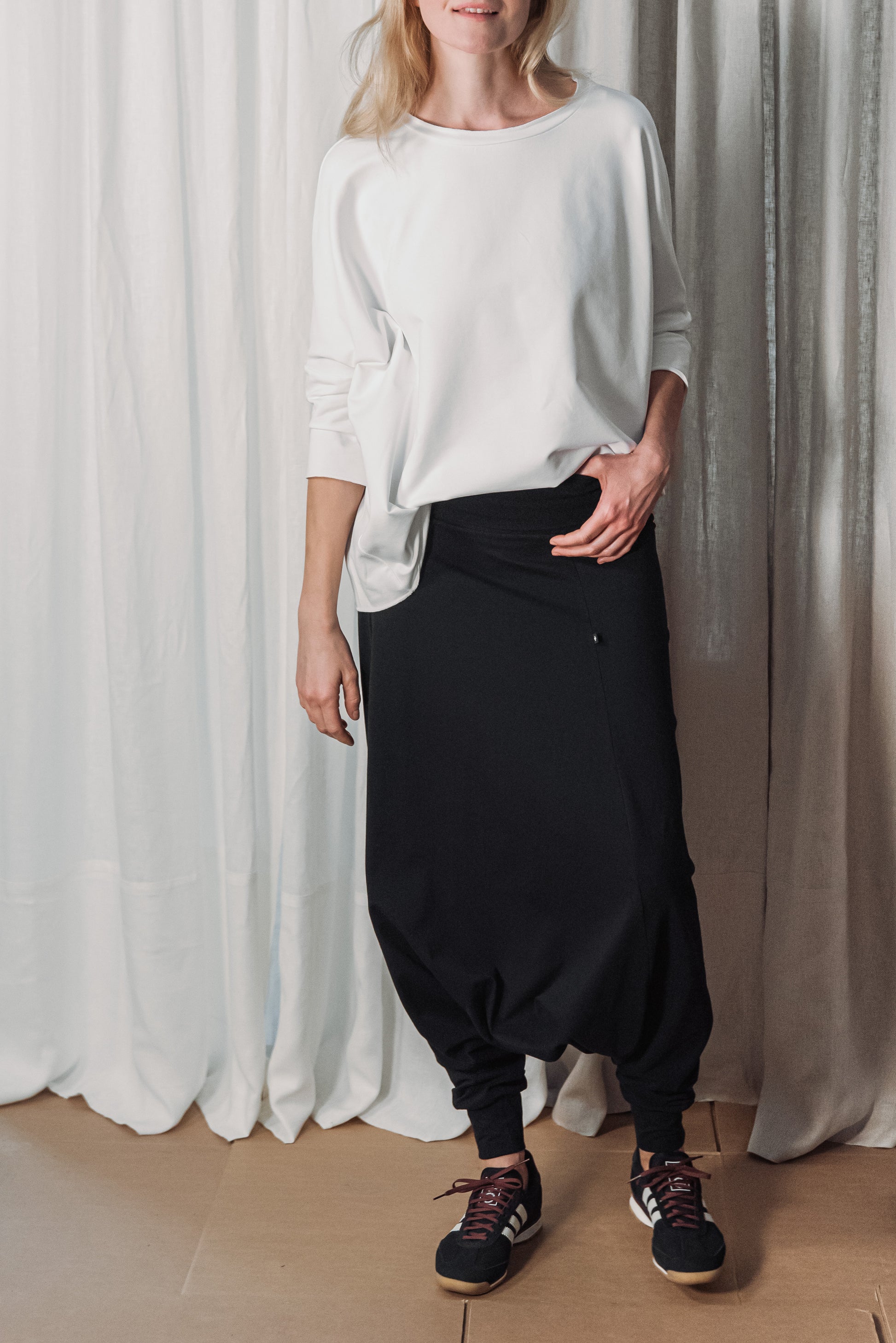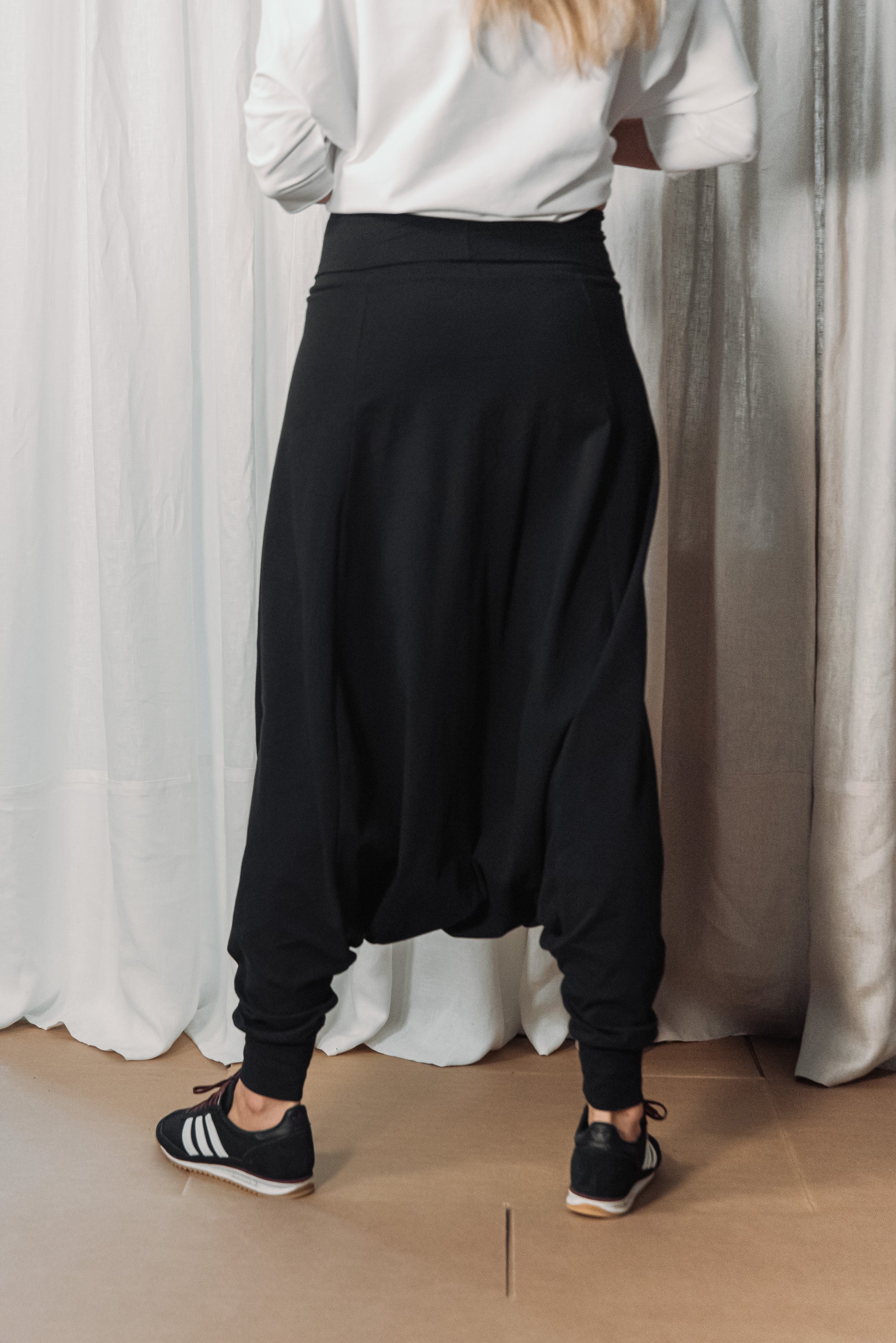 > The waist of the AUM pants is made of double material and can be folded back (so it is comfortable for new mothers) - very deep bottom, with a fitted part at the ankle. Pulled up to the chest, it can also be worn as overalls - extremely comfortable and cool style. Number one favorite based on our customers' feedback - because it is so natural and easy to wear.