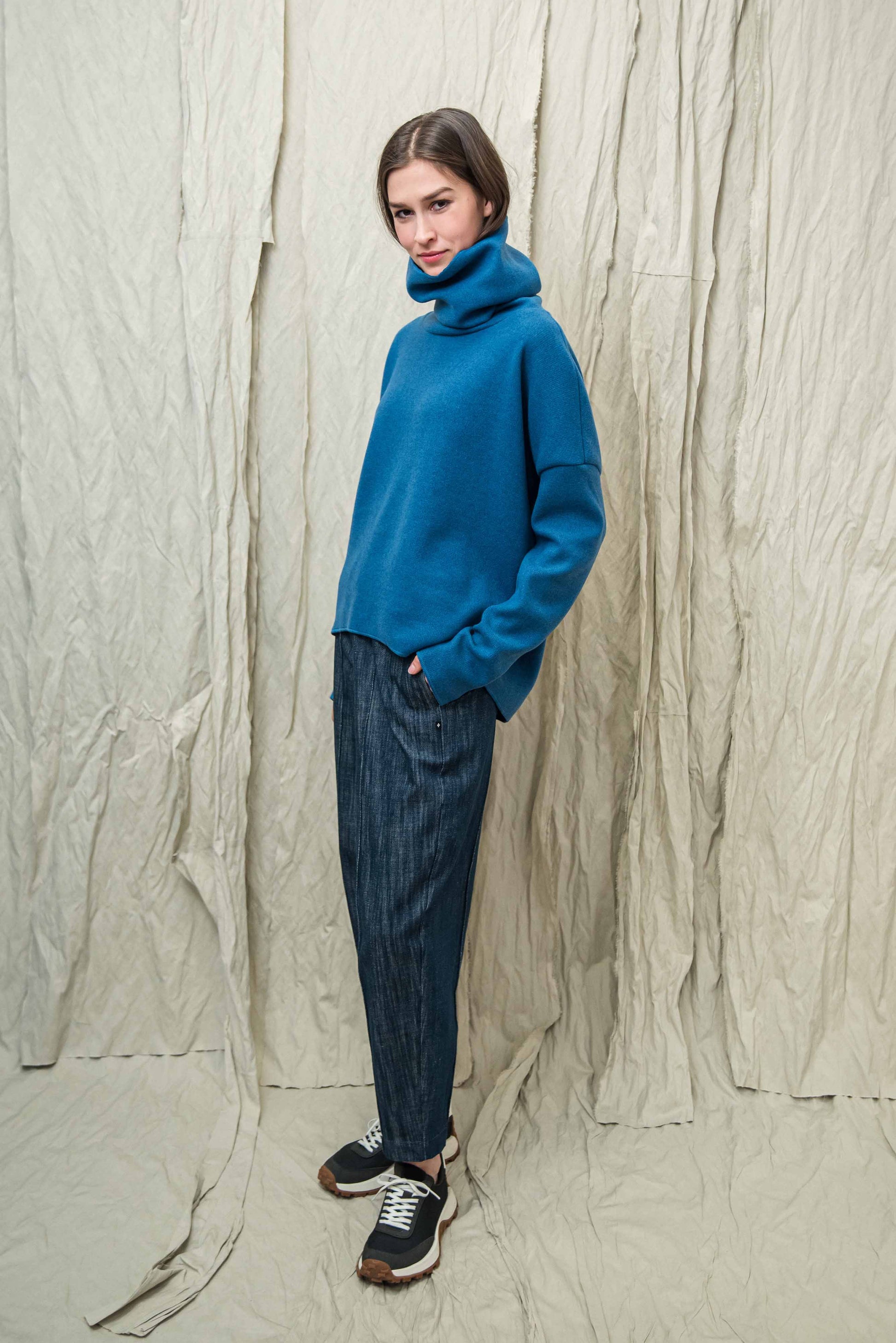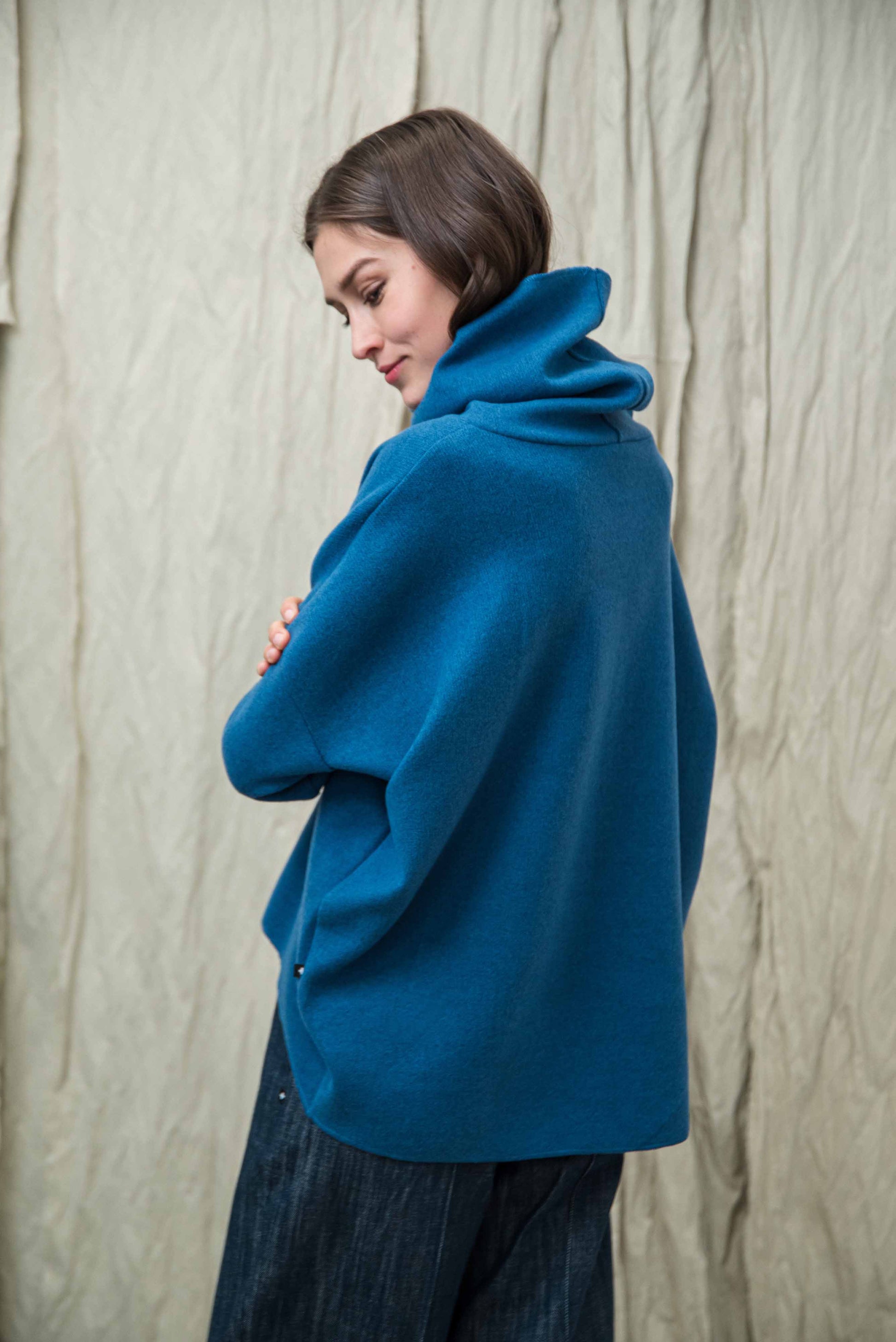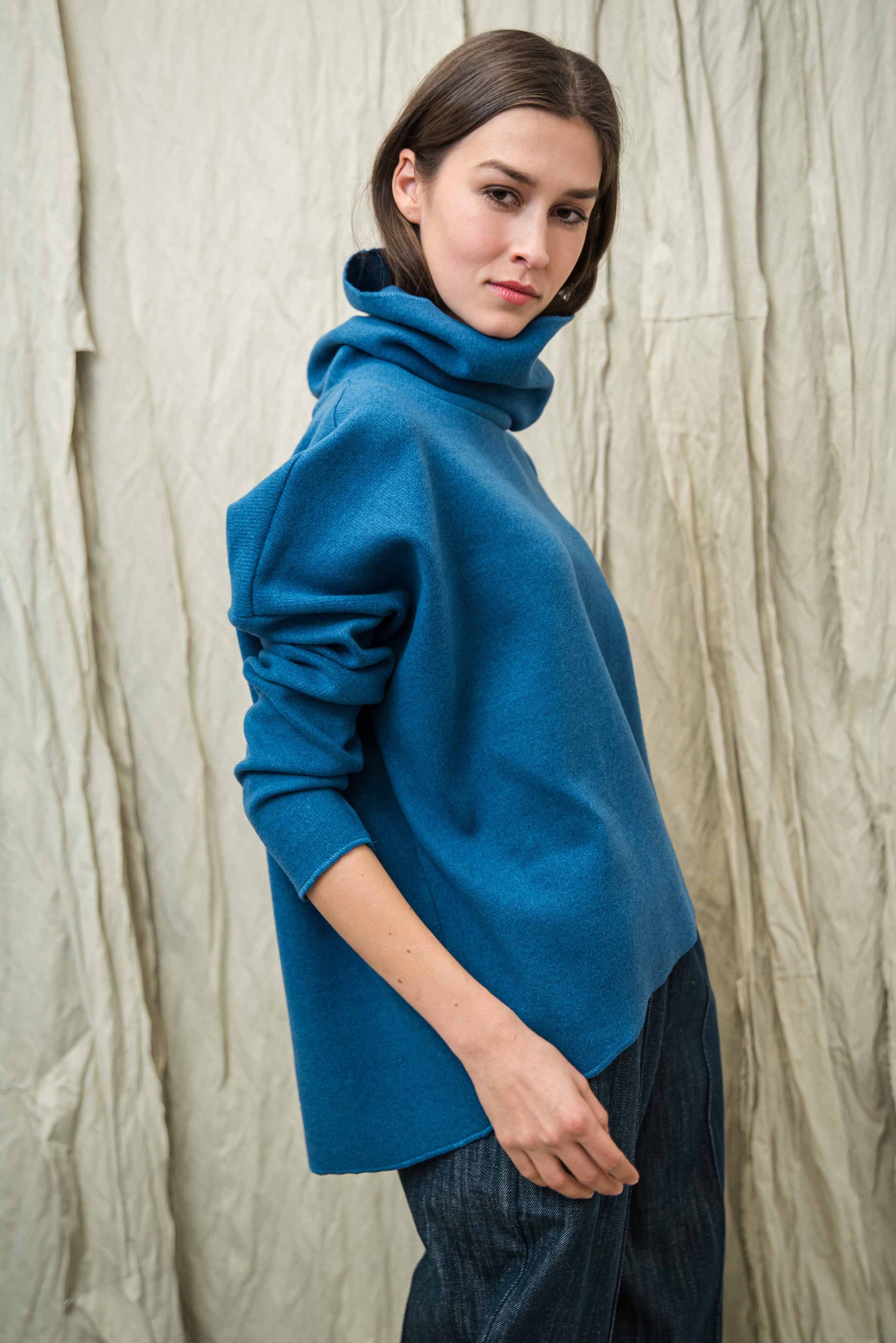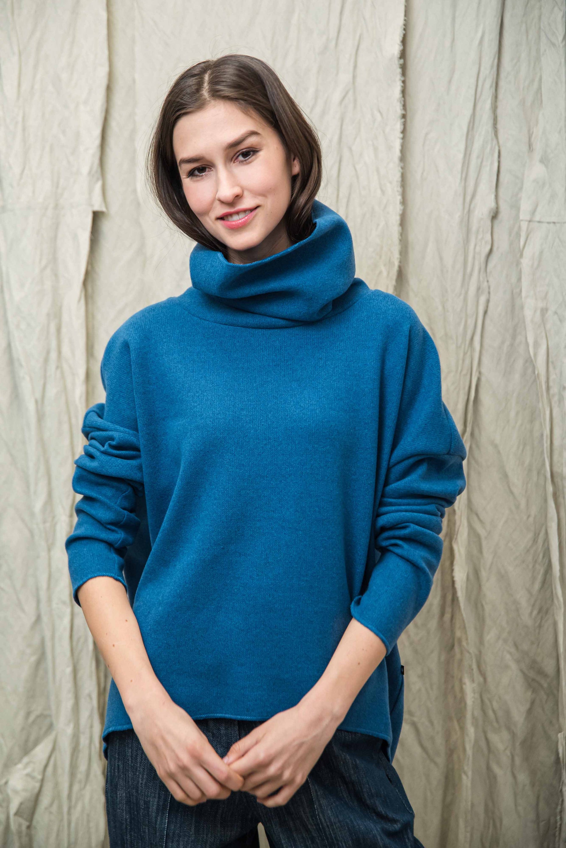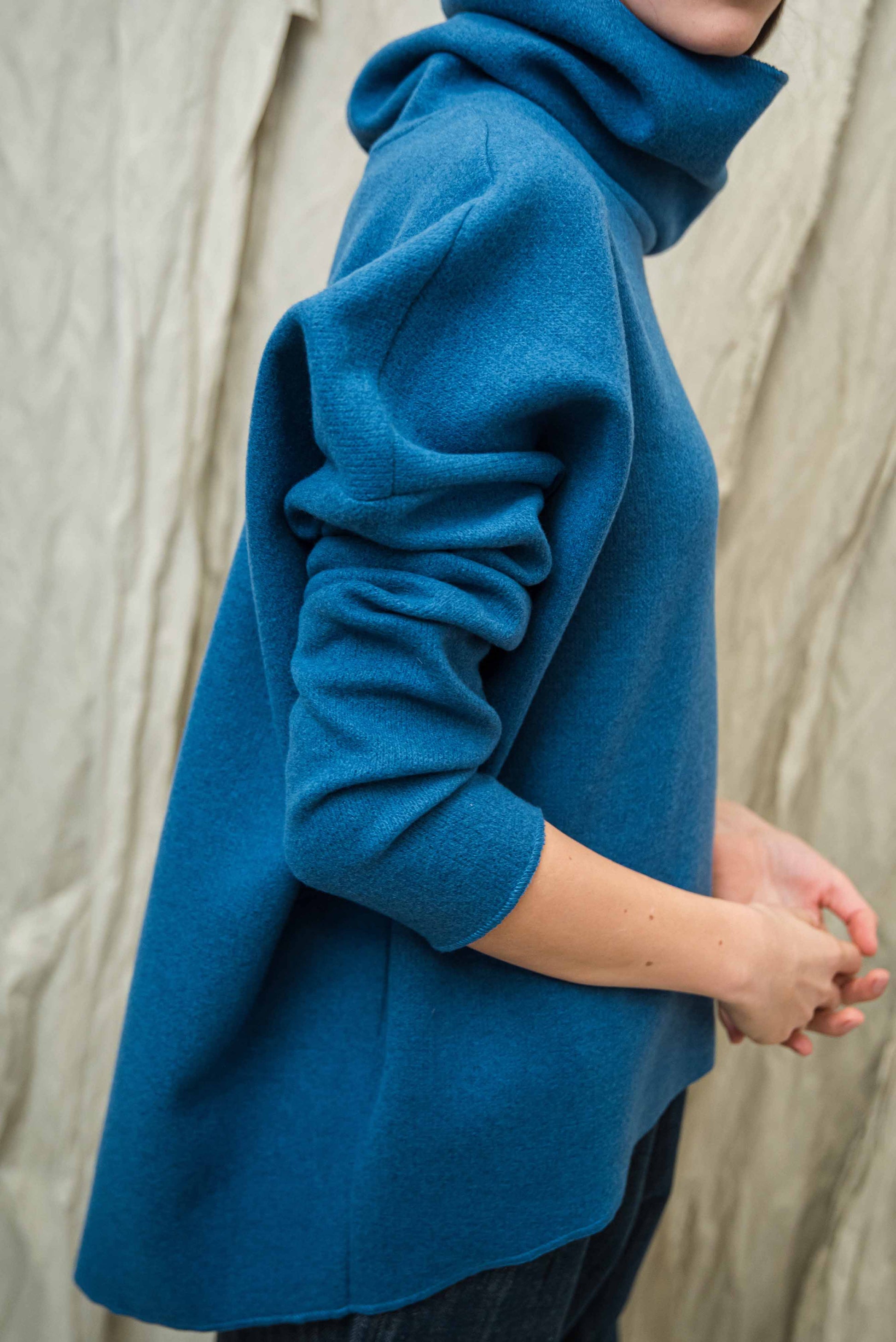 The medium-thick, soft knit texture has a natural elasticity that gently follows your movements while providing pleasant warmth. Its surface is extremely soft, silky to the touch, has a soft drape, and gently glides against the skin — this gives it that immediately noticeable comfort that is especially good on colder days. The structured interweaving of the fibers ensures stability, yet retains the intimate, homely softness that is characteristic of quality knit fabrics. Due to the natural softness, the surface may slightly pill with wear - this is a completely normal process typical of knitted fabrics that develops during everyday use. If you experience this, the smaller lumps can be carefully removed by hand or with a gentle pilling remover, so the material retains its harmonious, soft appearance and beauty for a long time. The warmth, elasticity and softness of the texture combine to create a material that is both reliable, comfortable and gently embracing — a truly pleasant companion for everyday life in the cooler seasons.