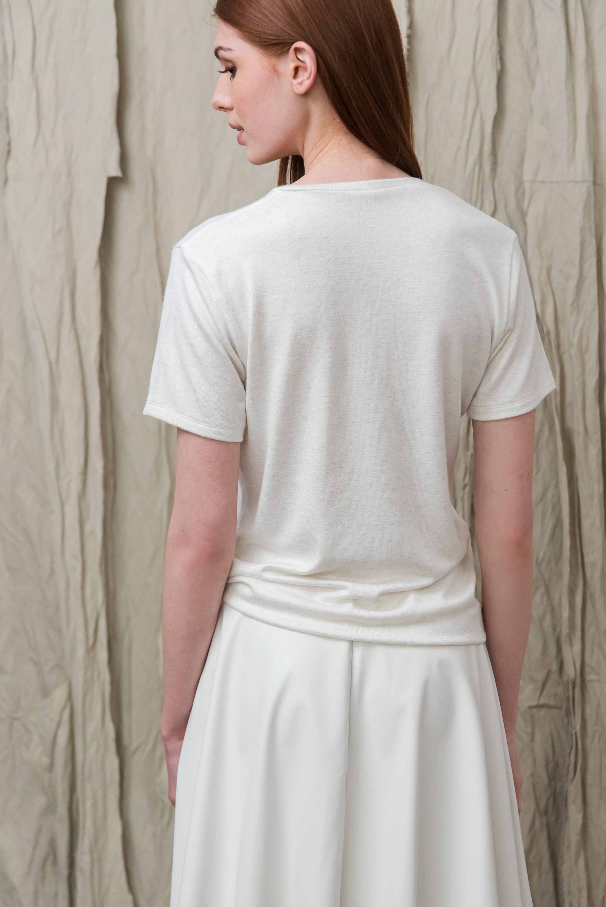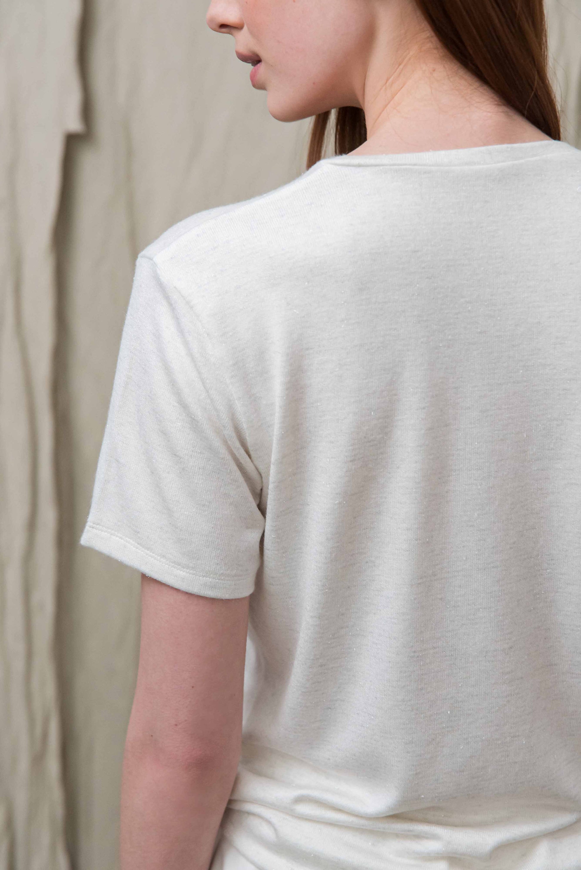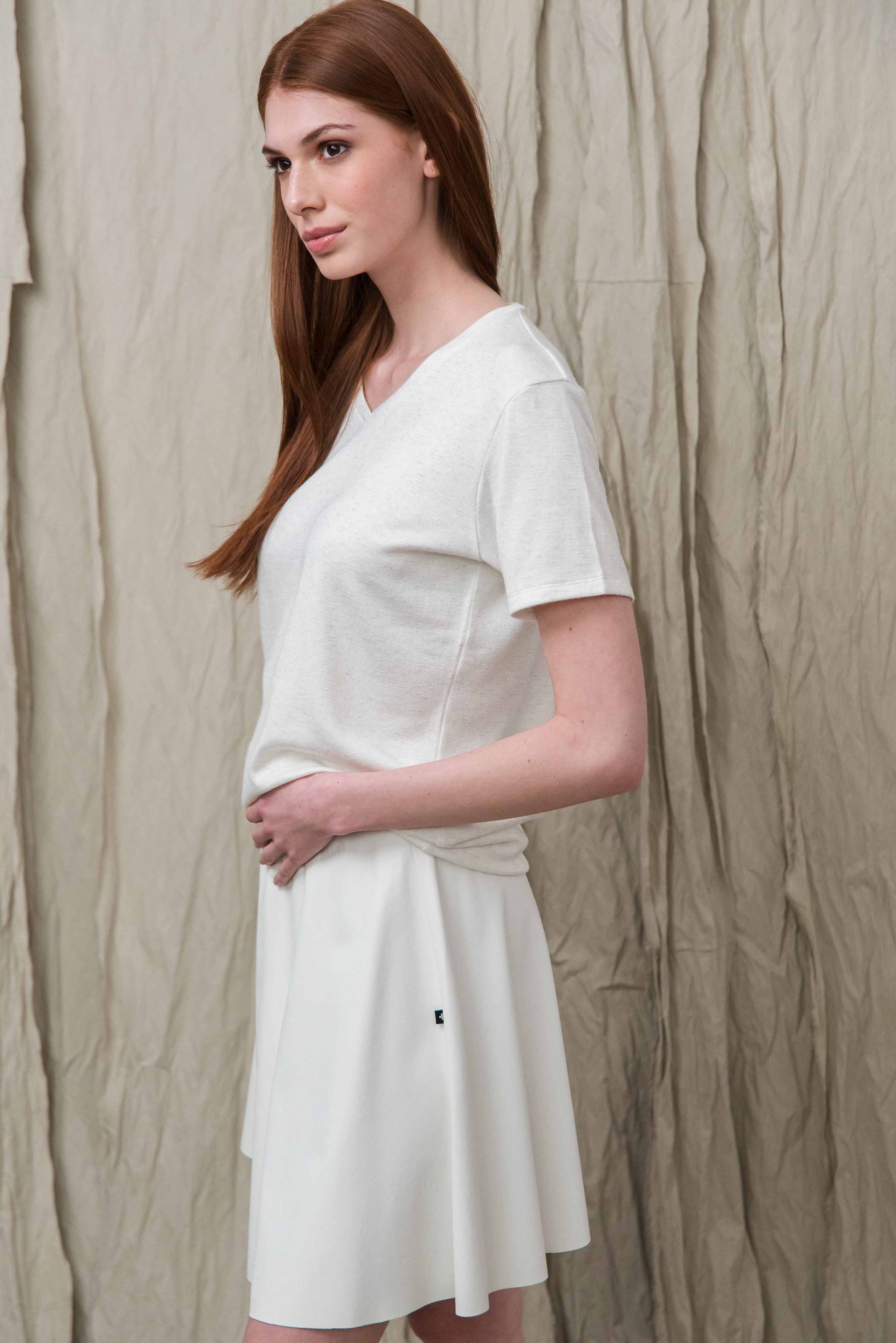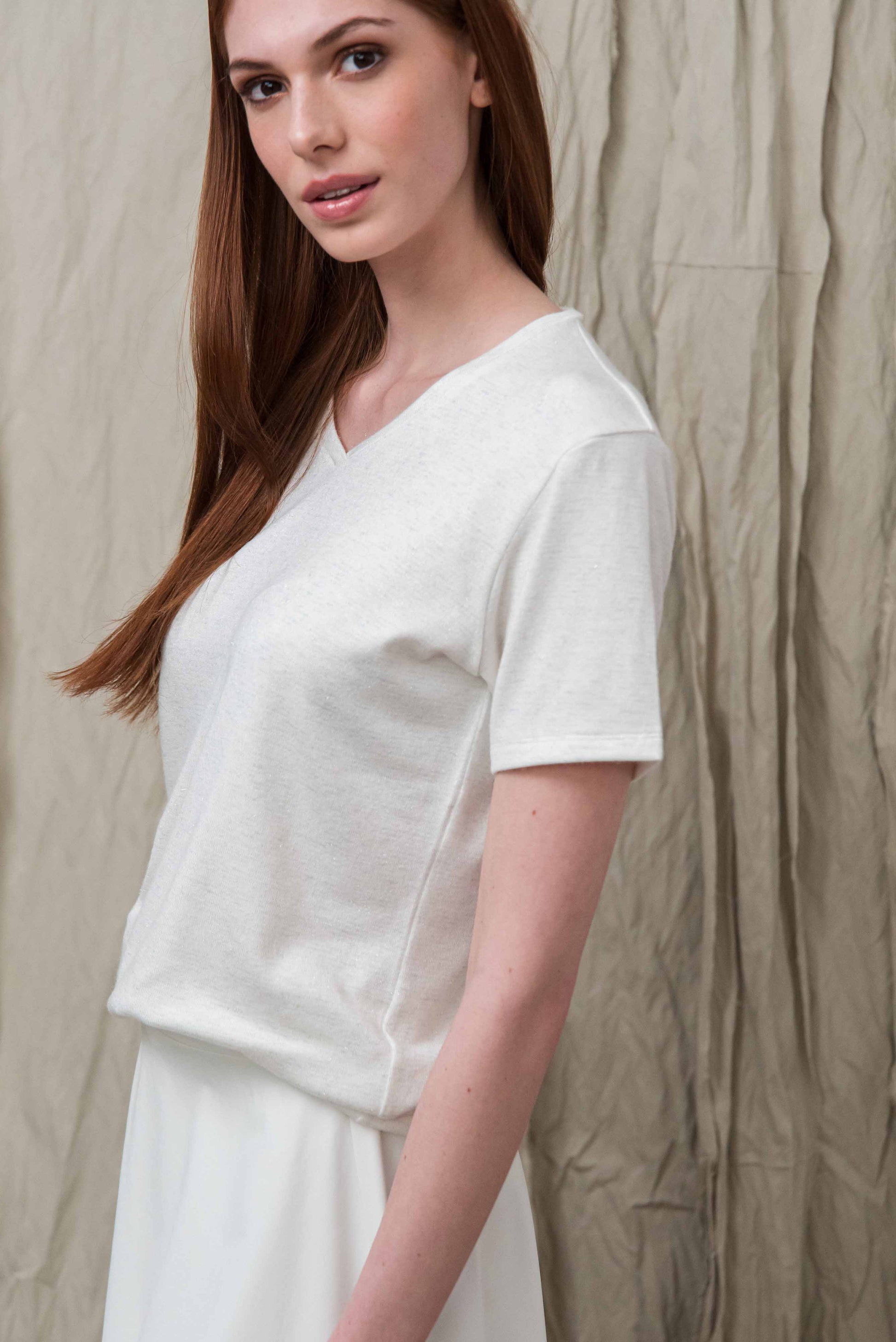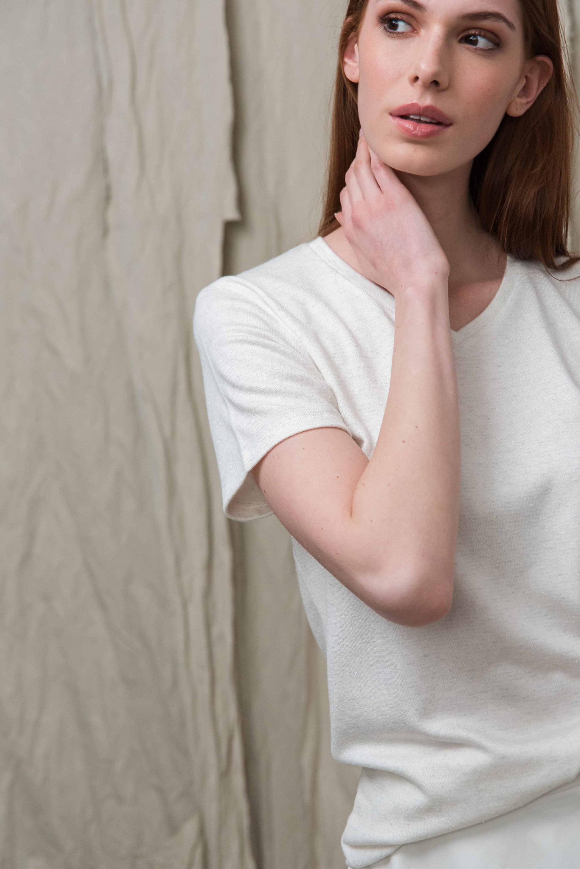 > The CARI top is a clean-cut staple that provides a natural, proportionate look with its delicate V-neckline and precise tailoring. Its simple form is the result of conscious design: there are no unnecessary details, everything is built on clean lines and wearability. Its lightweight, soft-draping material ensures a pleasant feel on the skin, making it comfortable to wear all day, either on its own or layered. The minimalist design allows it to easily fit into various outfits while maintaining its understated character. The CARI top is made for those who seek functionality and simplicity: a reliable piece that provides a stable foundation for a thoughtful, sustainable wardrobe.