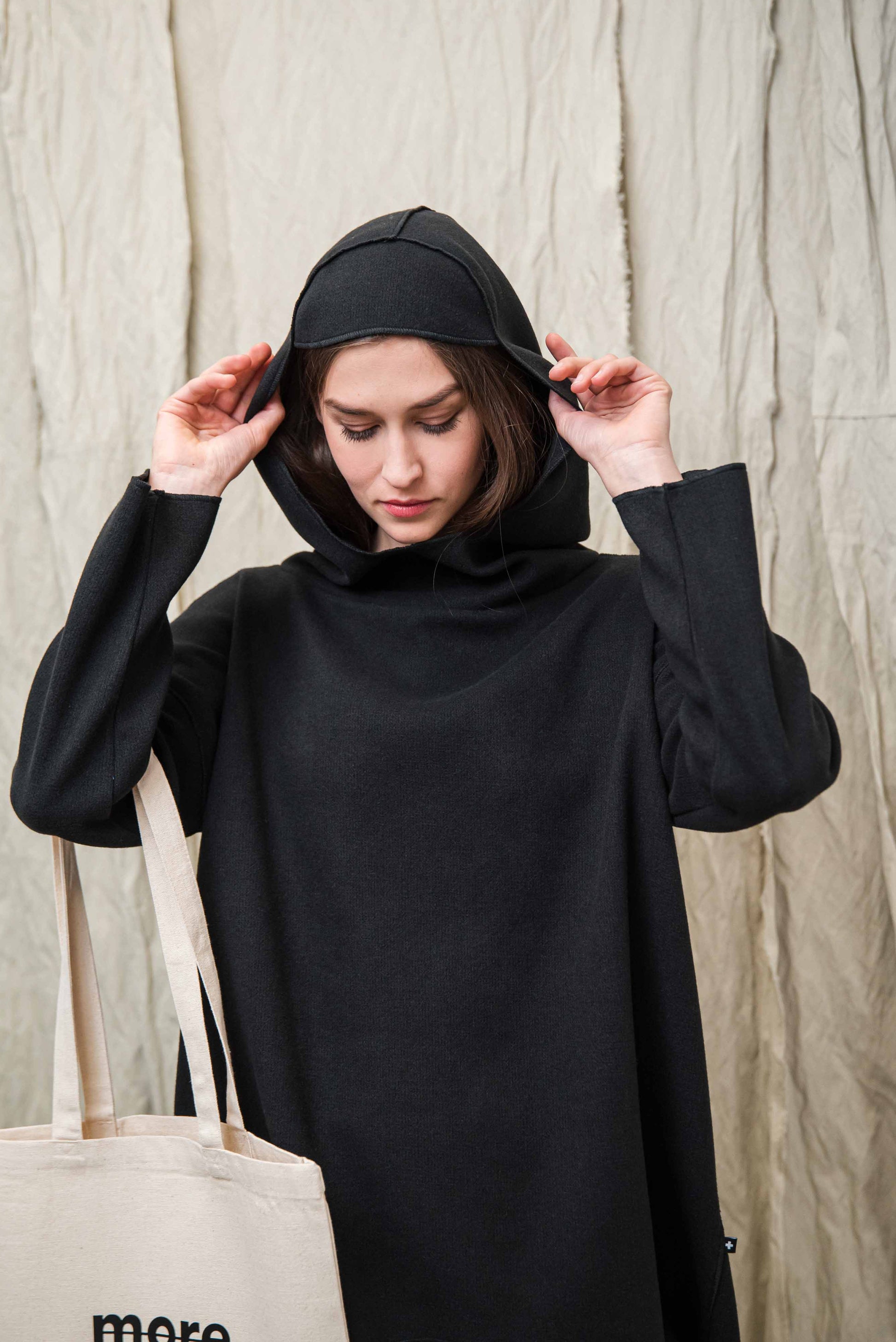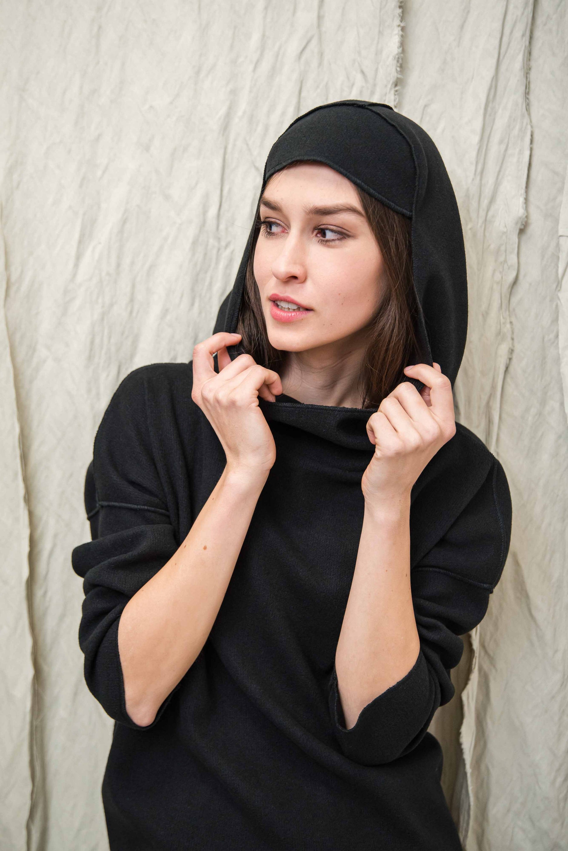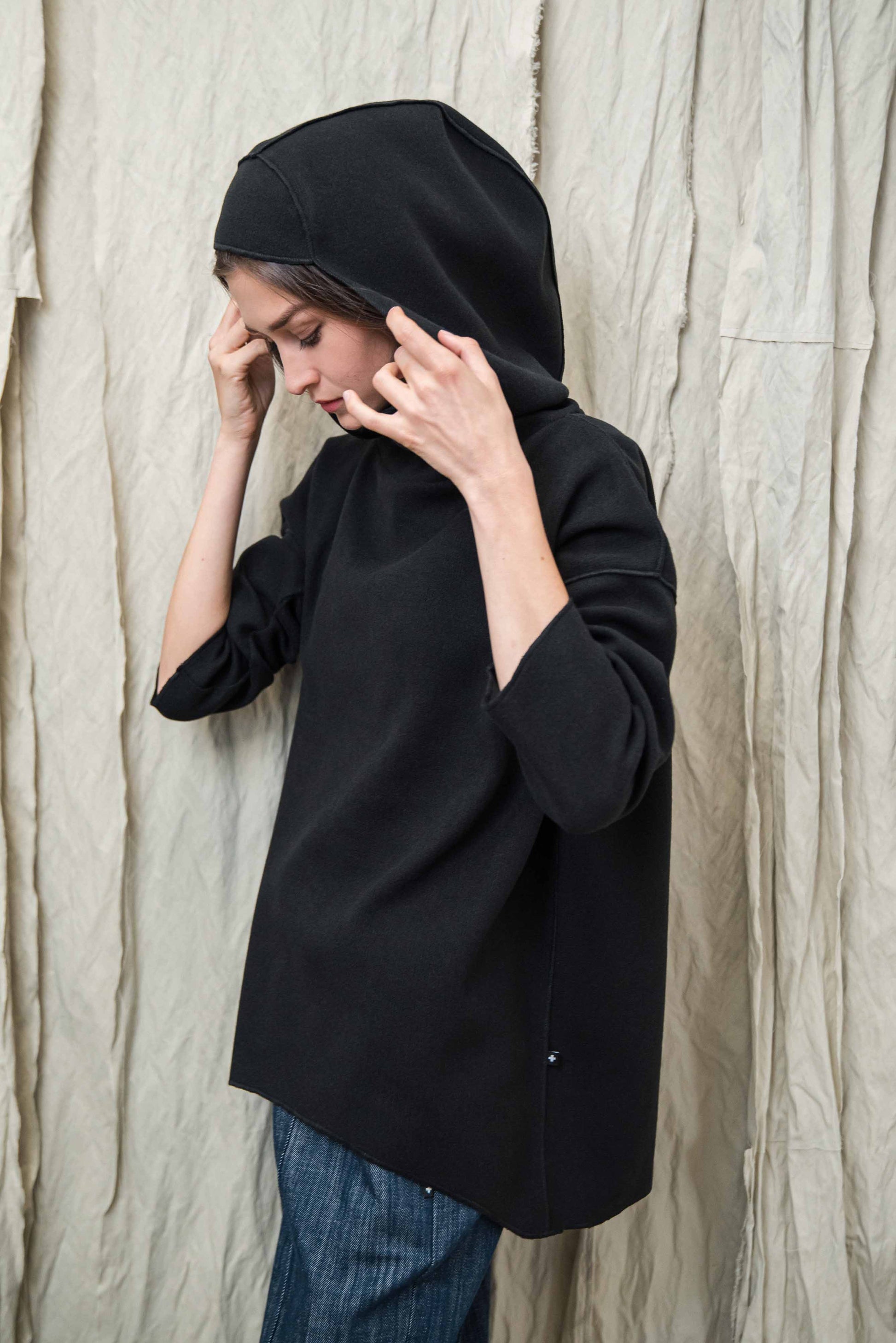 > The EIGO sweater is a confident answer to cooler days when comfort and character are both important. Its clean, yet cool look is given by its sharp lines and hood, which acts as both a functional element and a stylish focal point. Its locked edges show off the cut lines, reinforcing the no-frills aesthetic and durability that is characteristic of NONPLUS. Its soft, structured fabric keeps you warm while allowing you to move freely in everyday life. It is an ideal choice for layering, transitional periods or long days when you don't want to compromise between comfort and appearance. Its minimalist design helps reduce an overly thought-out wardrobe and supports a more conscious, sustainable way of dressing. The The EIGO sweater is designed for those who are looking for functionality, coolness and timeless style in one piece.