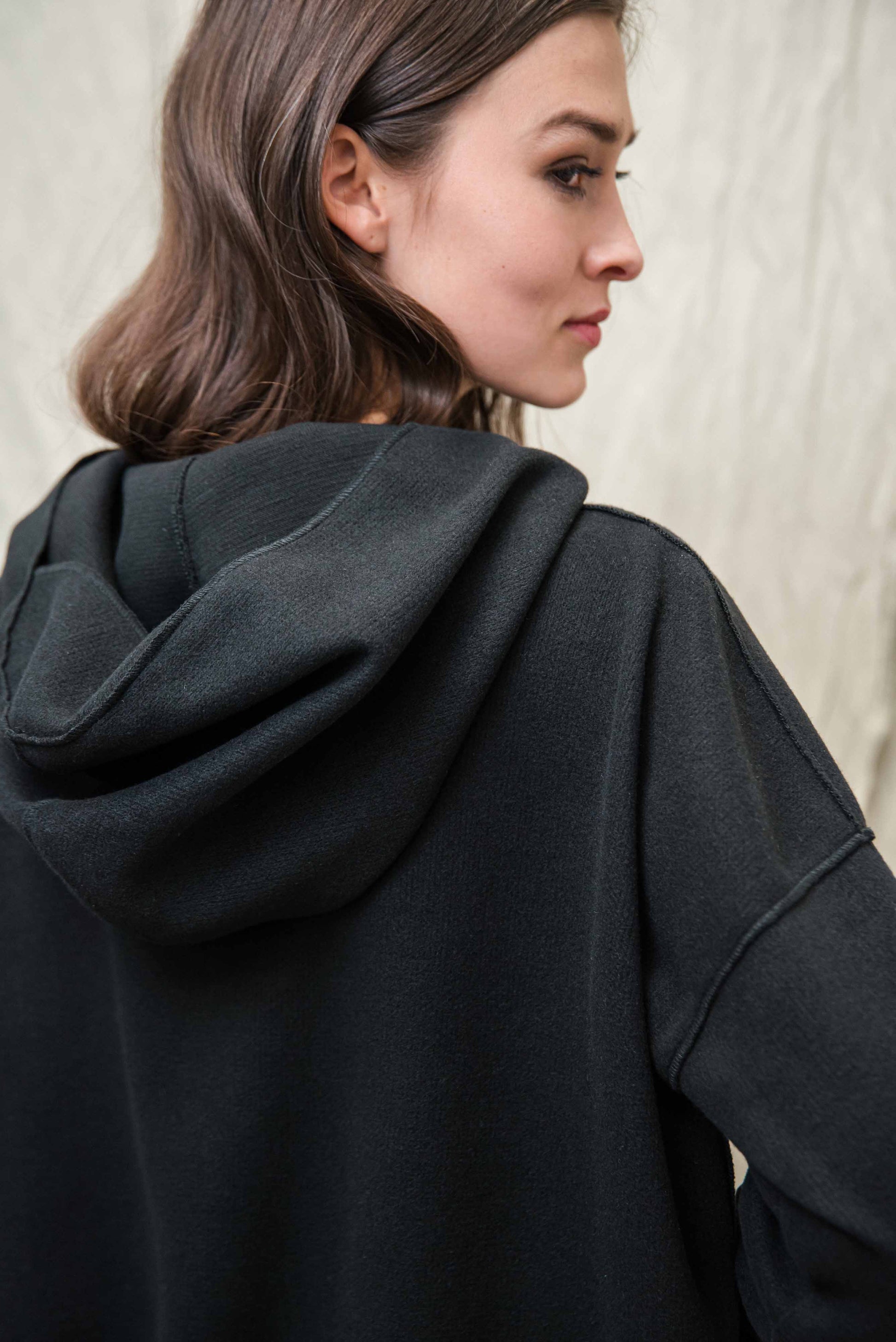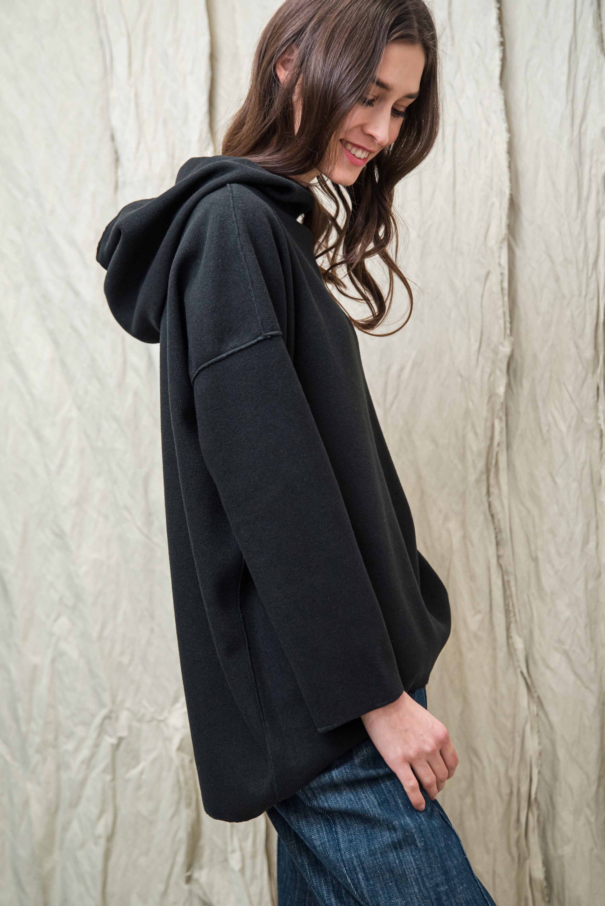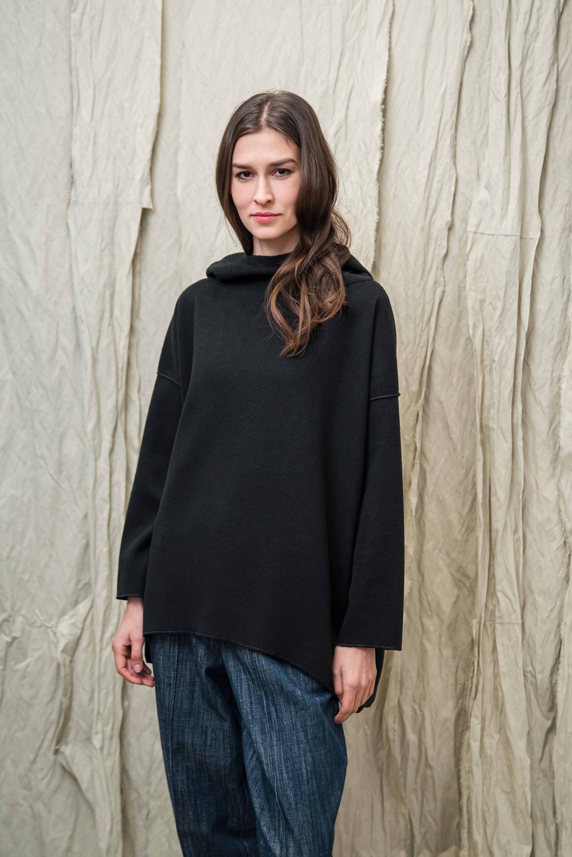 > The EIGO sweater is a confident answer to cooler days when comfort and character are both important. Its clean, yet cool look is given by its sharp lines and hood, which acts as both a functional element and a stylish focal point. Its locked edges show off the cut lines, reinforcing the no-frills aesthetic and durability that is characteristic of NONPLUS. Its soft, structured fabric keeps you warm while allowing you to move freely in everyday life. It is an ideal choice for layering, transitional periods or long days when you don't want to compromise between comfort and appearance. Its minimalist design helps reduce an overly thought-out wardrobe and supports a more conscious, sustainable way of dressing. The The EIGO sweater is designed for those who are looking for functionality, coolness and timeless style in one piece.