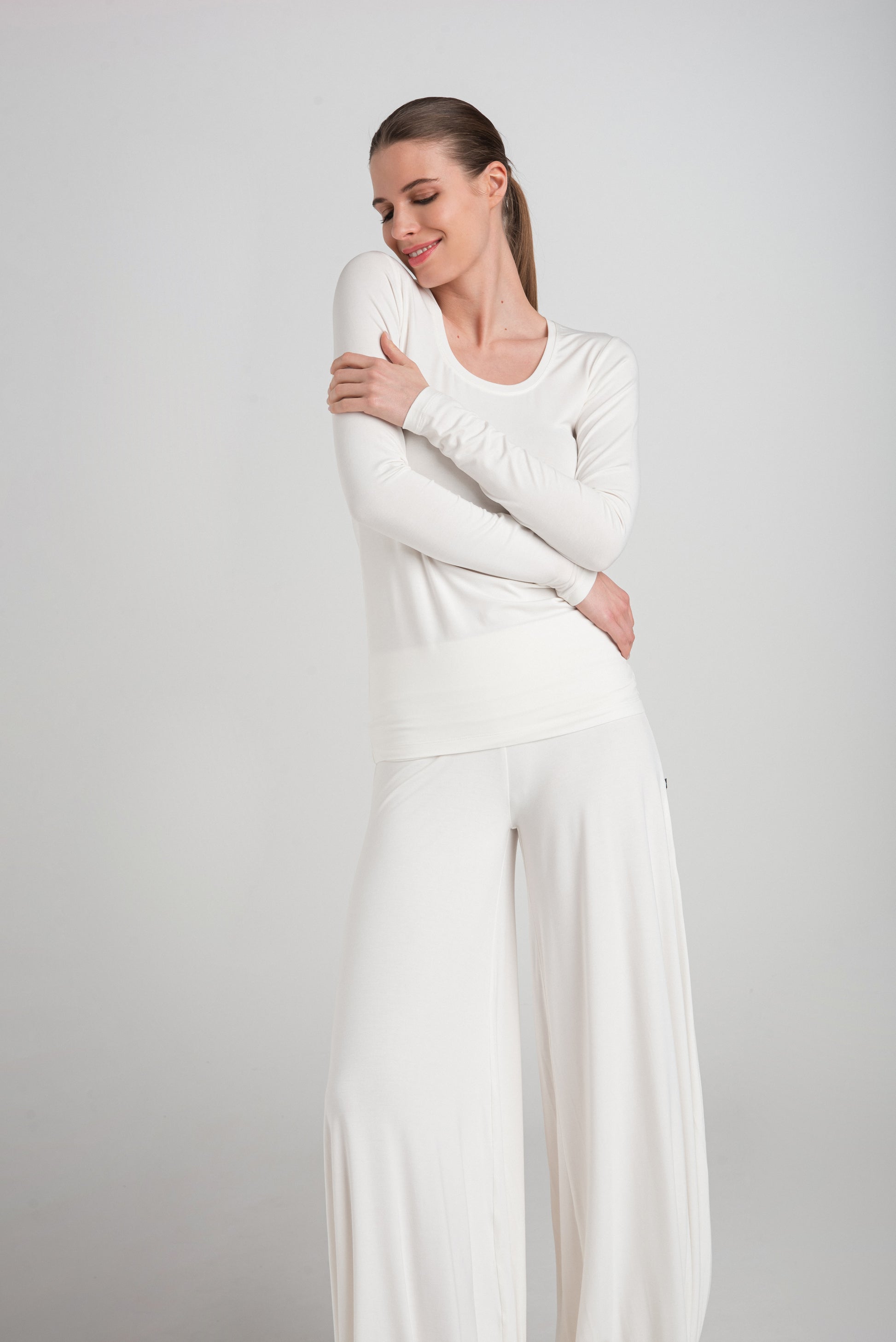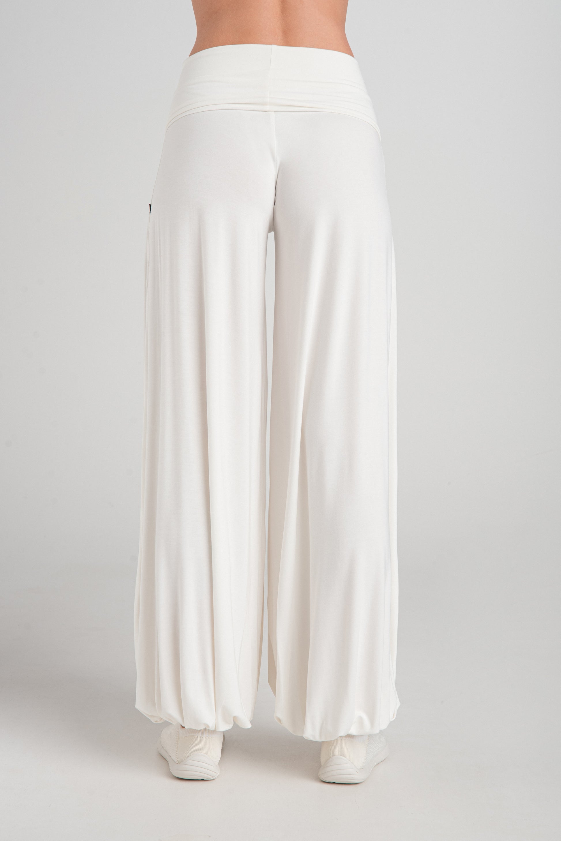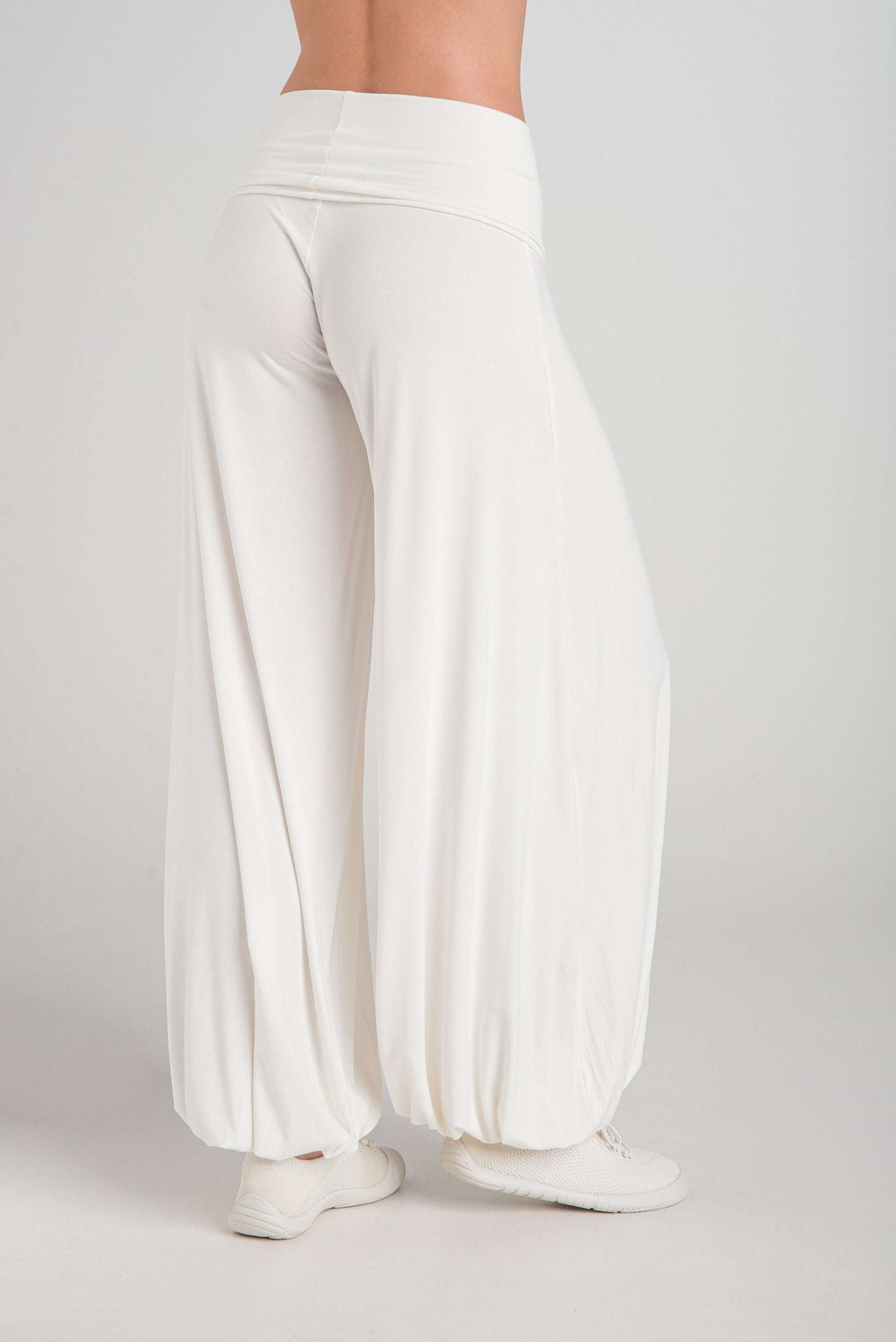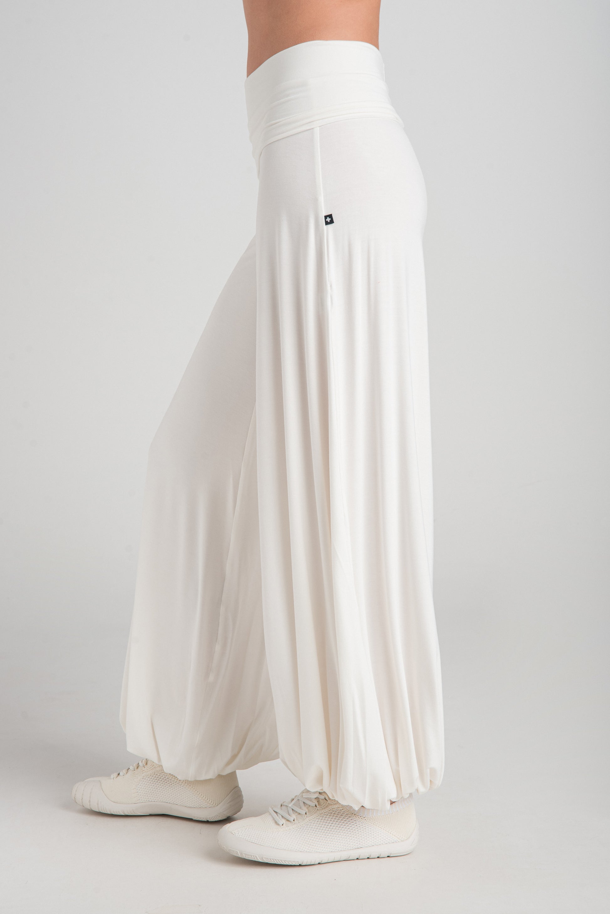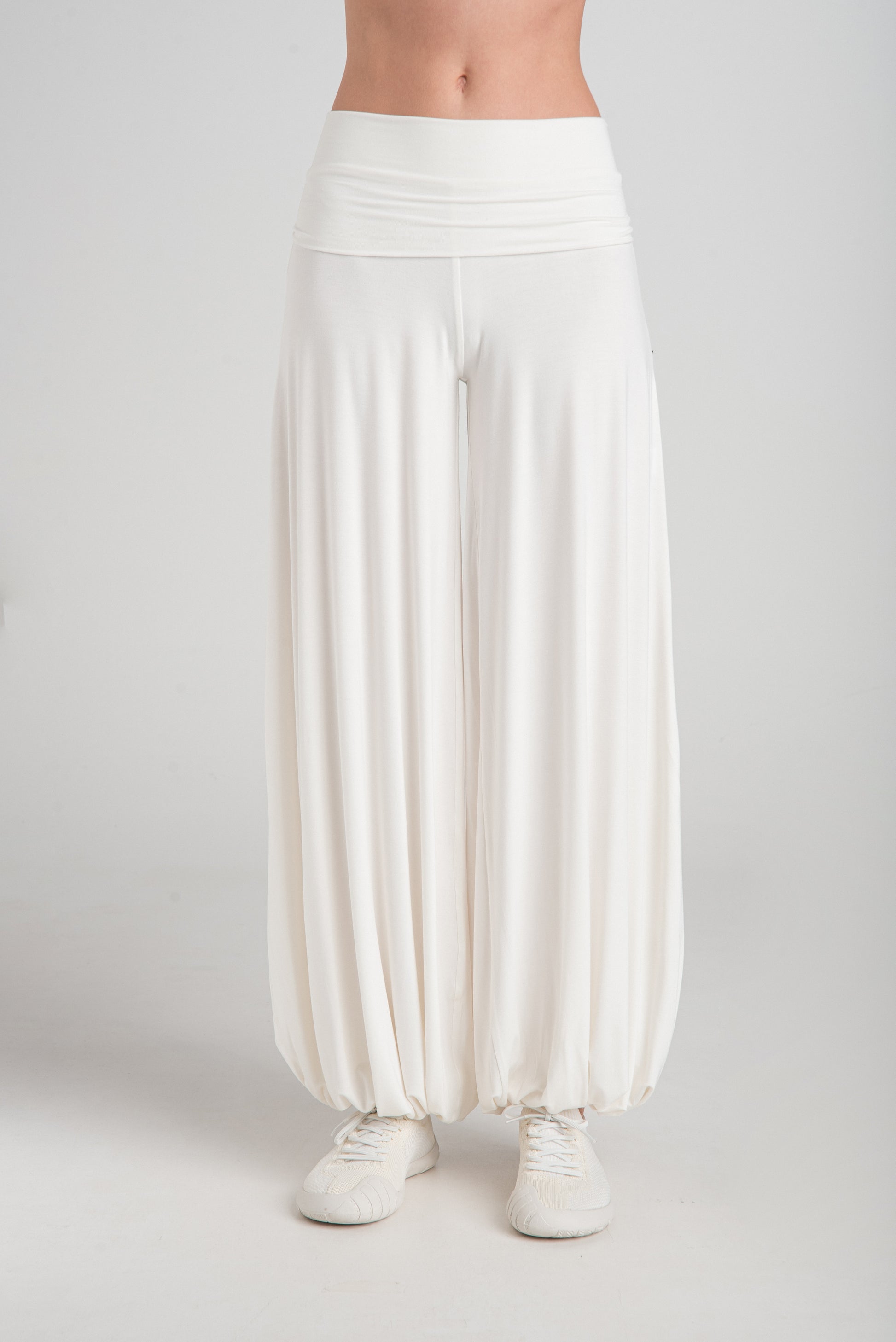 > Our HIRO baggy pants made of soft bamboo material have a particularly loose, loose fit. The fold-over waist is made of double material, so the length can be flexibly adjusted depending on height - perfect for new mothers. The baggy pants part provides maximum comfort, loose and light wear for home, yoga, and sleeping.