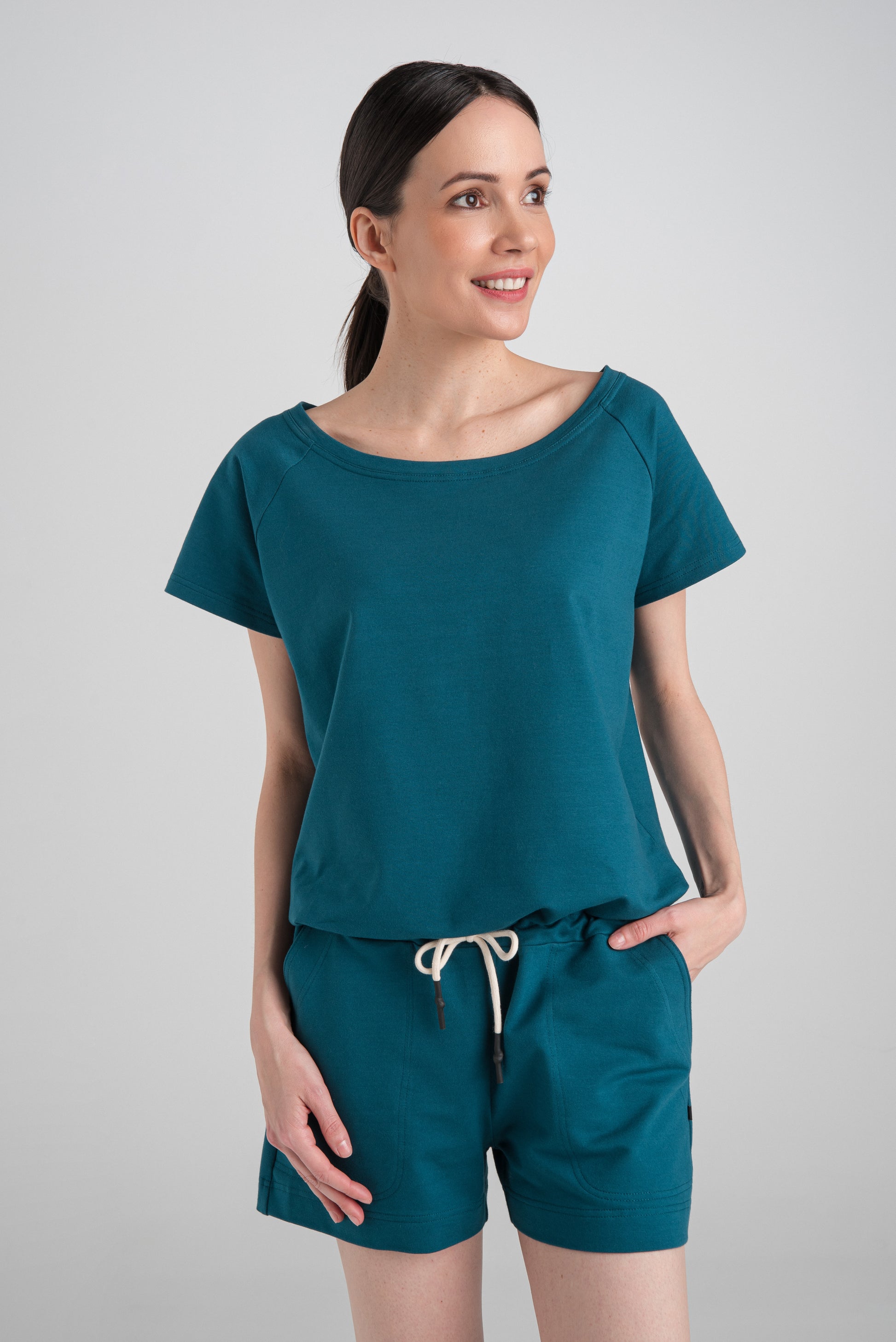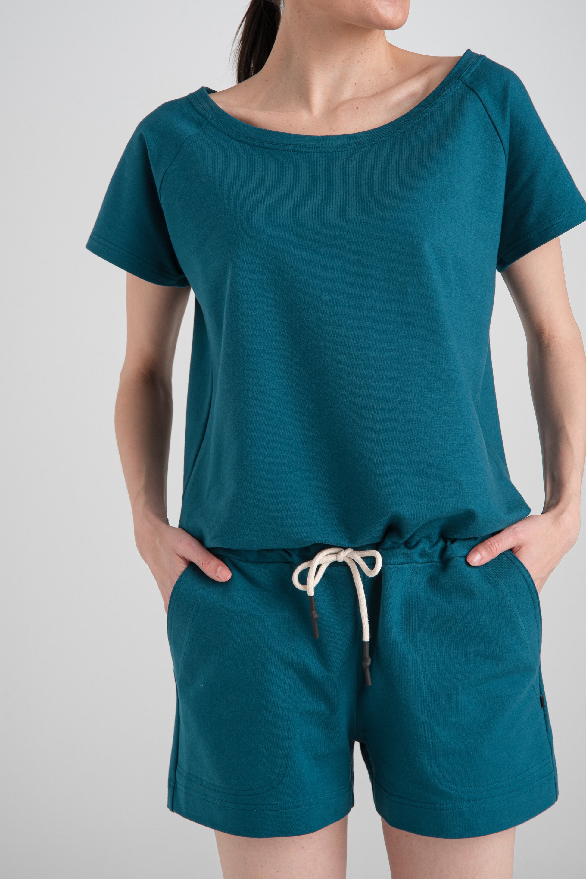 MENO SHORT OVERALLS DARK TURQUOISE