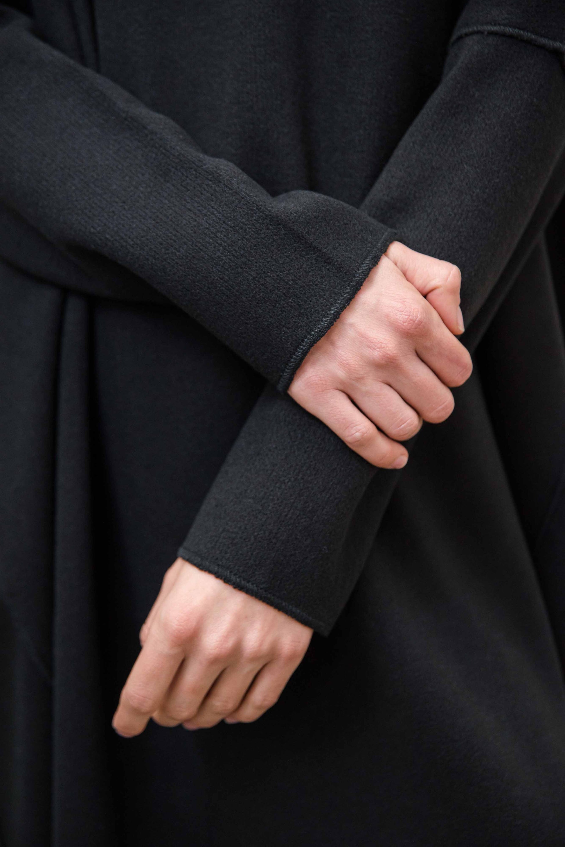 The medium-thick, soft knit texture has a natural elasticity that gently follows your movements while providing pleasant warmth. Its surface is extremely soft, silky to the touch, has a soft drape, and gently glides against the skin — this gives it that immediately noticeable comfort that is especially good on colder days. The structured interweaving of the fibers ensures stability, yet retains the intimate, homely softness that is characteristic of quality knit fabrics. Due to the natural softness, the surface may slightly pill with wear - this is a completely normal process typical of knitted fabrics that develops during everyday use. If you experience this, the smaller lumps can be carefully removed by hand or with a gentle pilling remover, so the material retains its harmonious, soft appearance and beauty for a long time. The warmth, elasticity and softness of the texture combine to create a material that is both reliable, comfortable and gently embracing — a truly pleasant companion for everyday life in the cooler seasons.