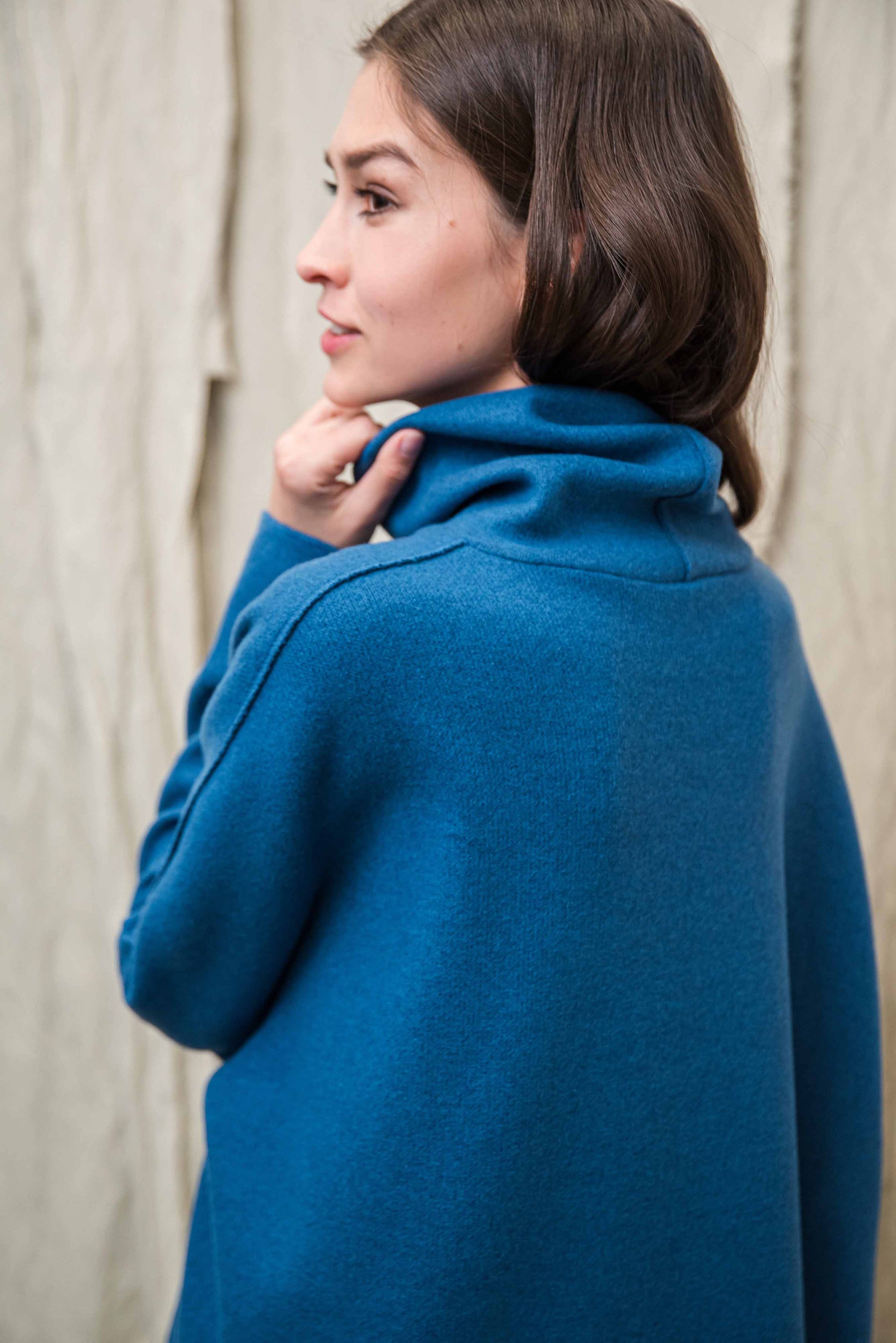 Made of soft, stretchy knit fabric, it provides pleasant warmth and freedom of movement on cooler days. The turtleneck and the asymmetrical cut, slightly longer at the back, give the piece a special character that playfully follows the body's lines. Comfortable yet stylish, it gives a clean, modern look on its own as a dress or combined with trousers - representing the conscious, relaxed aesthetic of NONPLUS.
