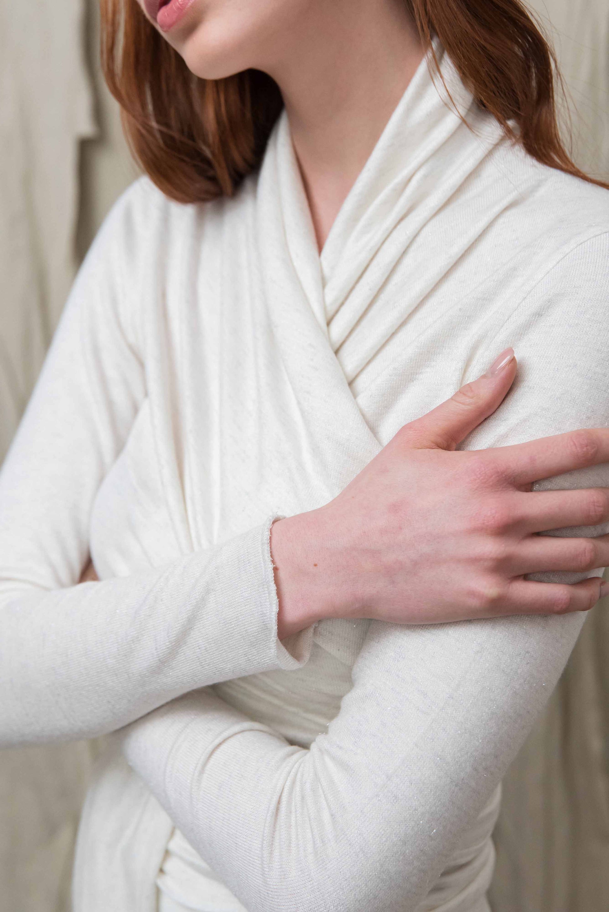 Our light, shimmering knitted fabric is comfortable and breathable, a pleasant and soft material whose natural embracing effect is perfect for both body and soul.