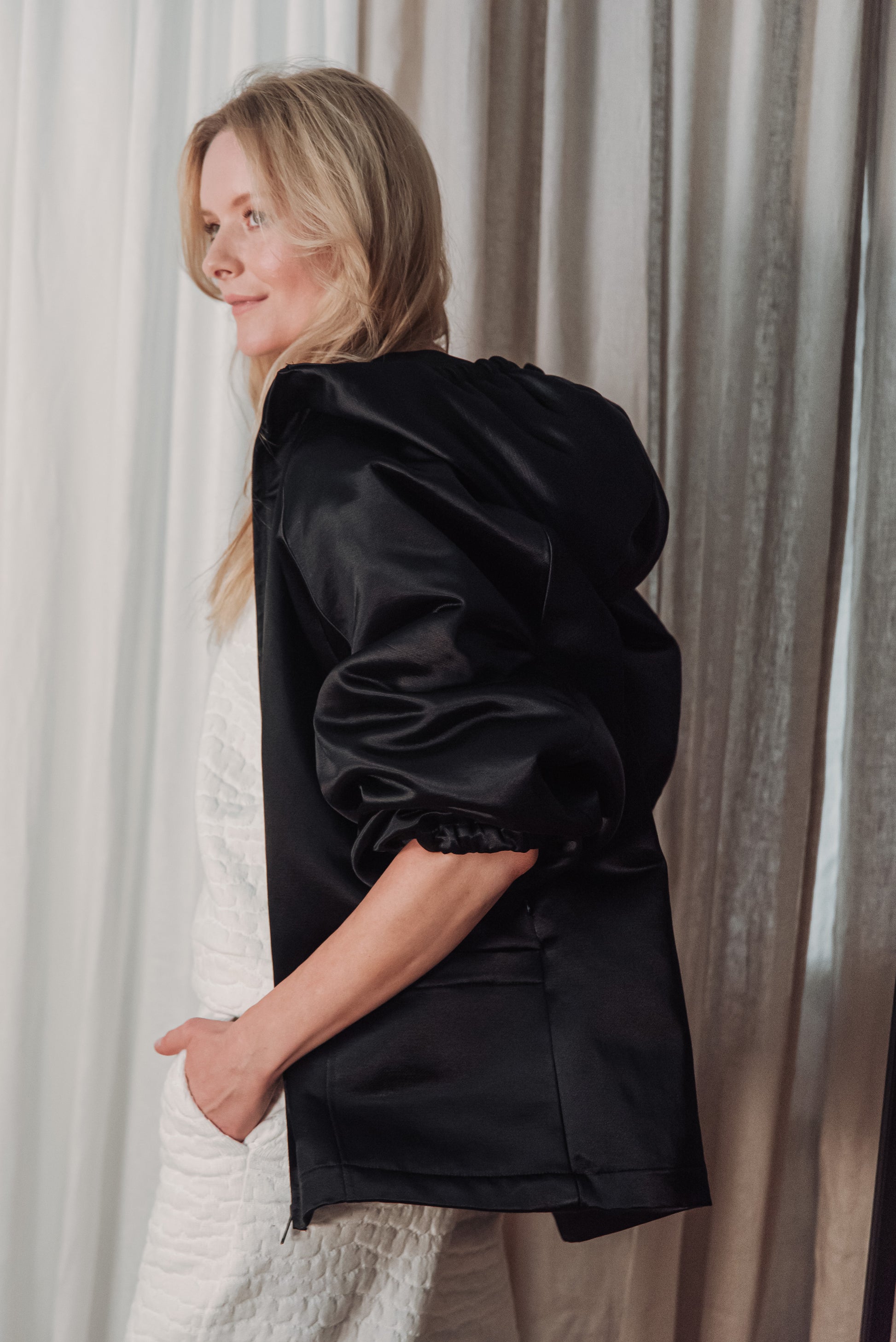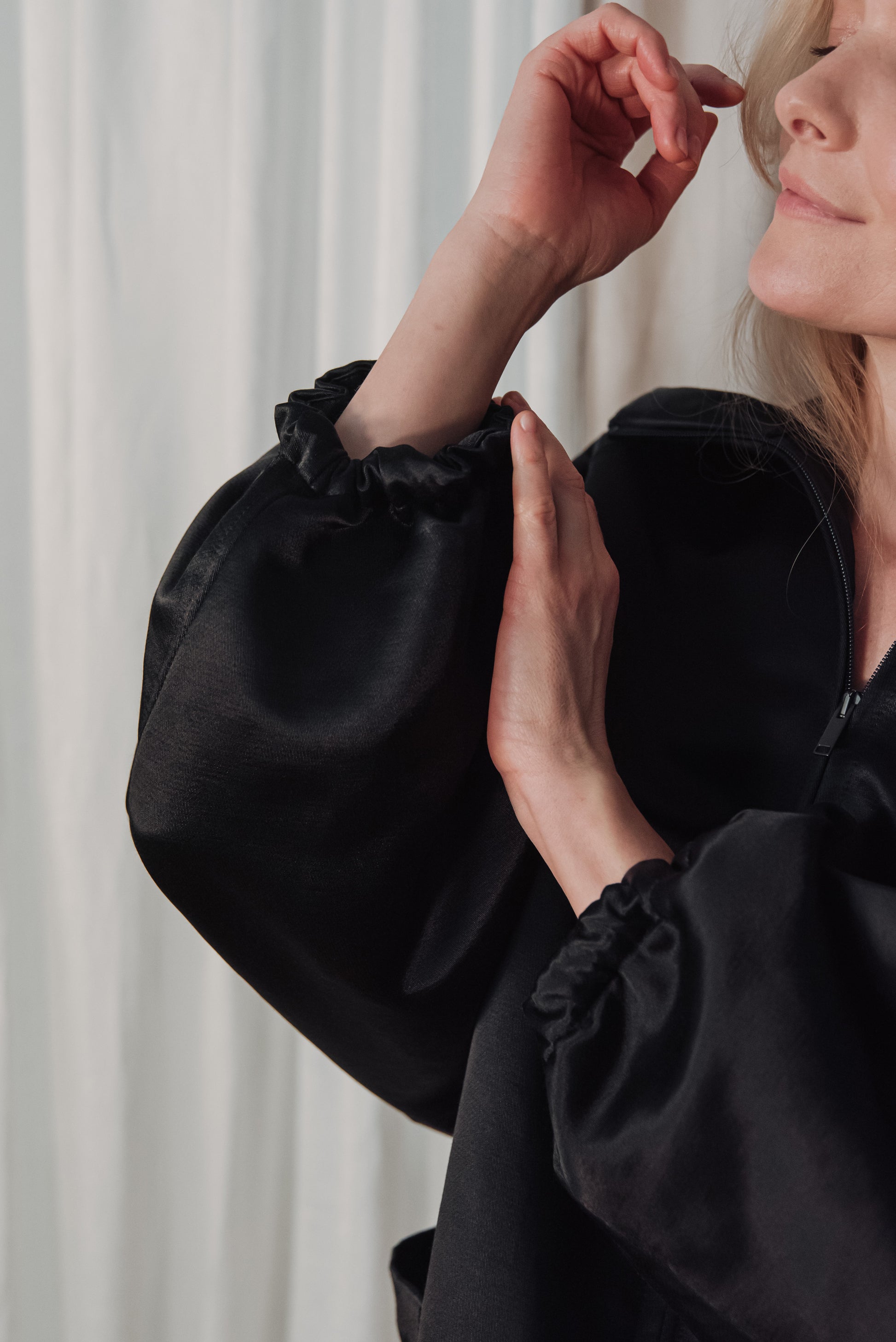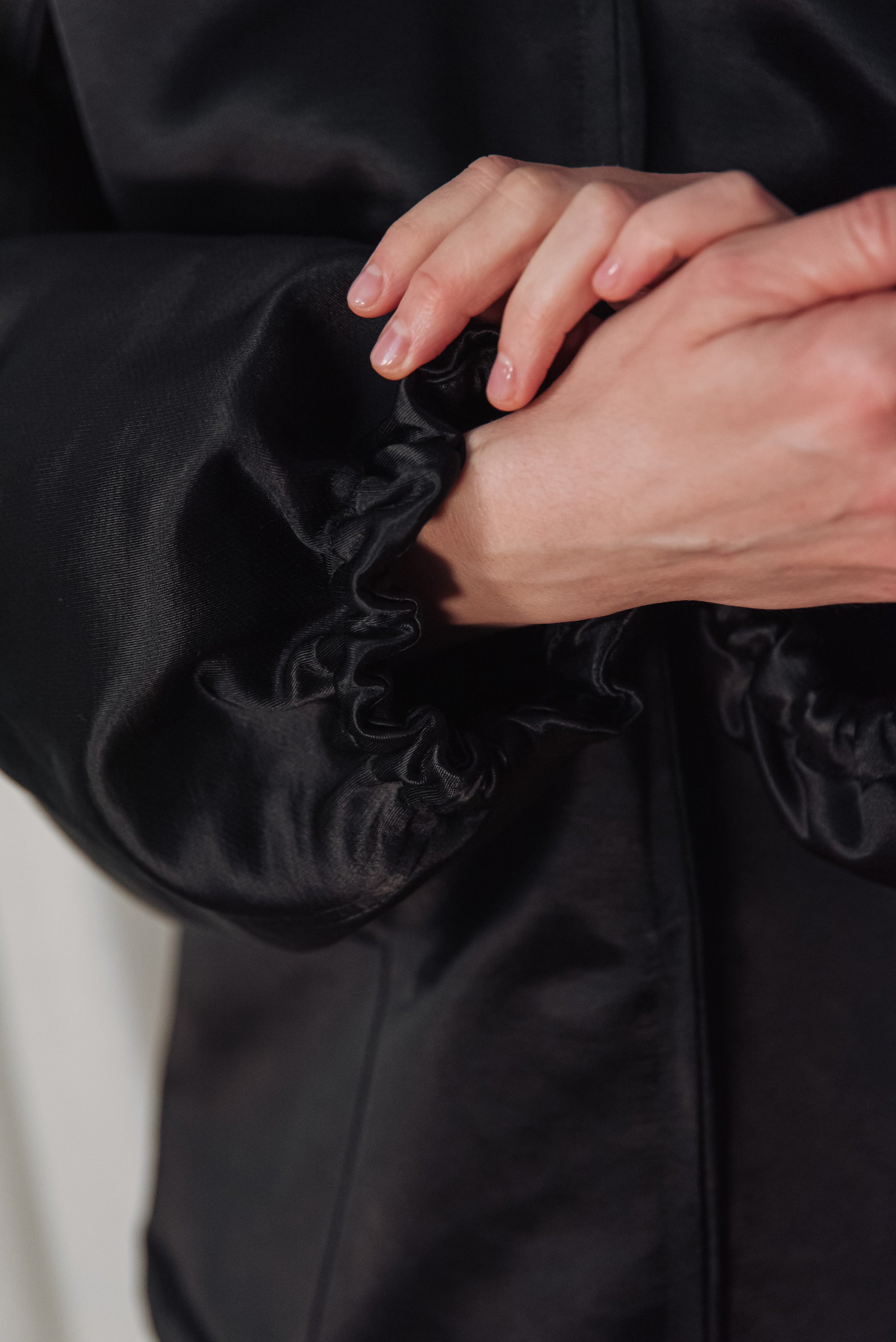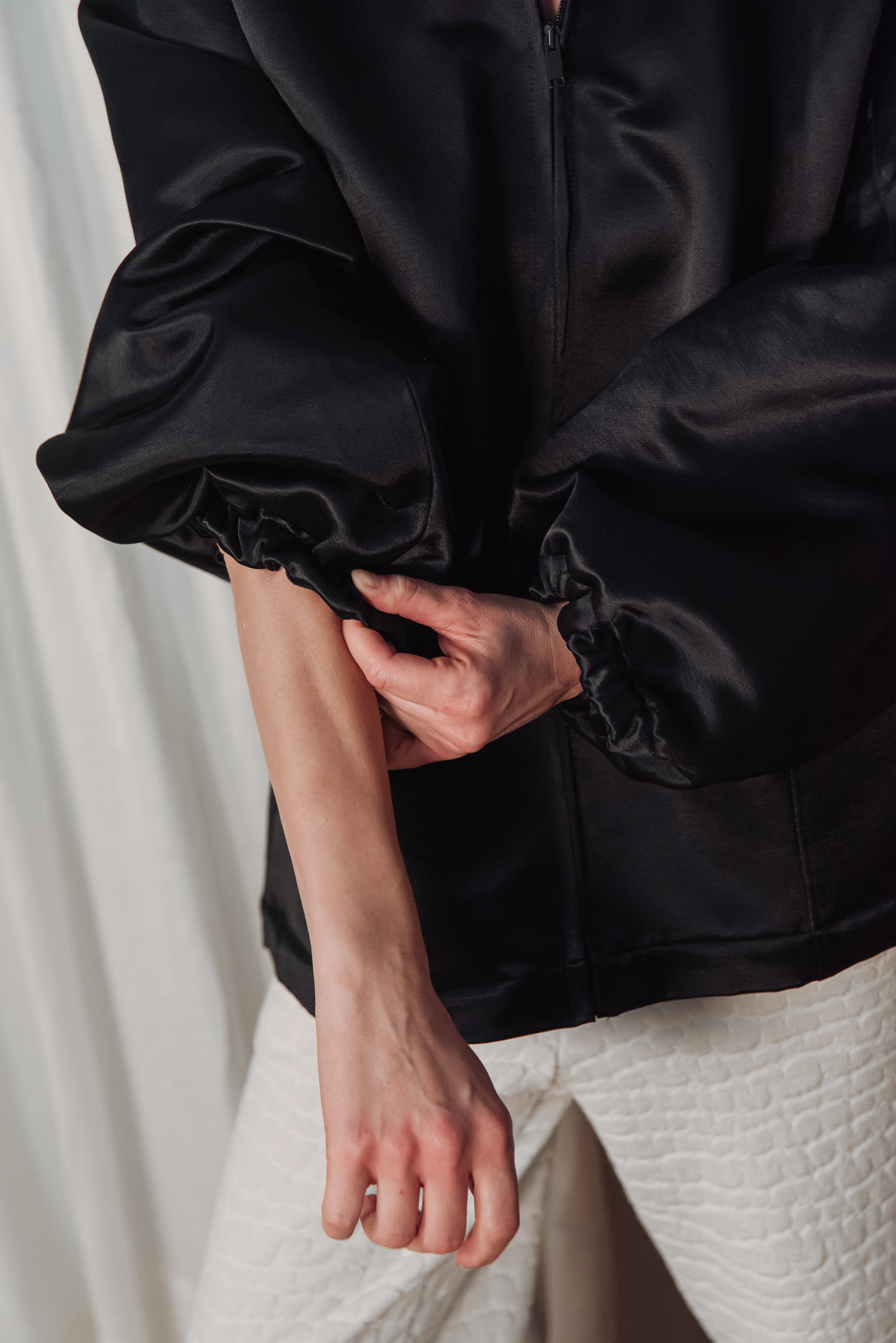 > The OGA jacket embodies the characteristic minimalism of NONPLUS: a clean, yet powerful piece that stands out with its distinct shapes and delicate details. The large, drawn-in hood and front zip give a modern, functional line, while maintaining the jacket's understated elegance. The material is medium-thick, densely woven and durable, yet pleasant - the natural, silky sheen of the cotton blended with cupro lends an elegant surface that highlights the structured lines of the piece. Its touch is smooth, noble, and its appearance is a combination of quality and timelessness. The OGA jacket is the essence of the NONPLUS aesthetic: clean, functional and confident - a staple that radiates strength and sophistication at the same time.
