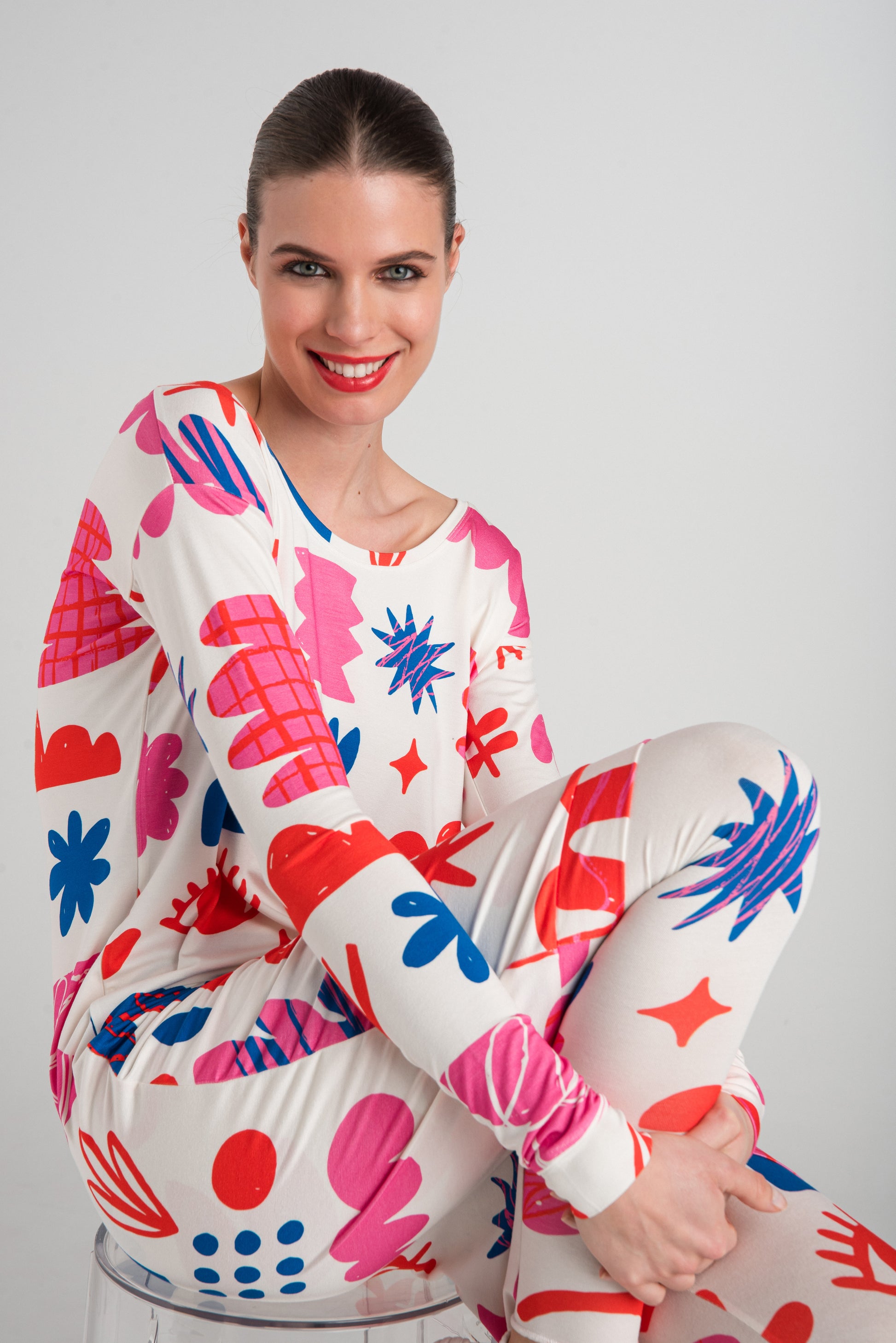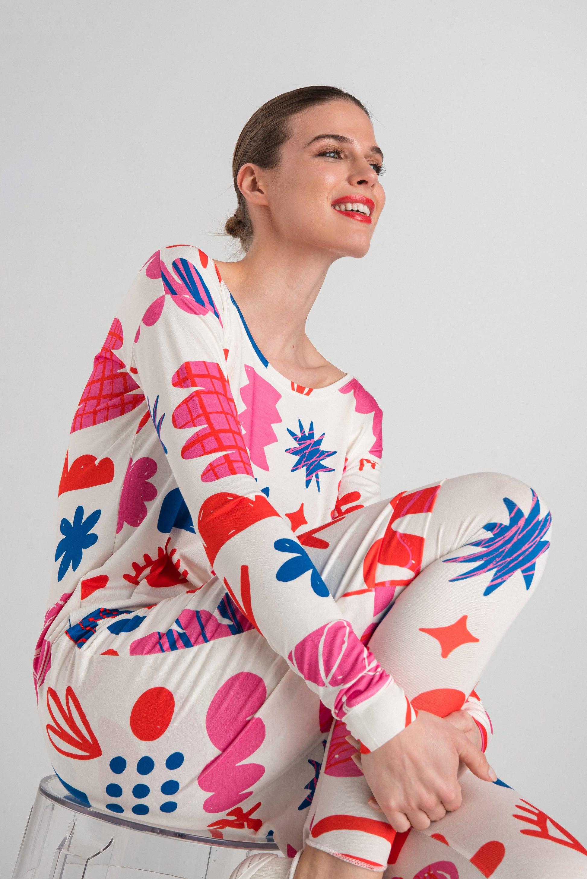 As spring awakens, we rediscover the playfulness of life. The " enJOY" collection, with its colorful patterns and light cuts, says: enjoy the moment, play with life! The natural softness and harmony of the materials help you notice the beauty in even the simplest things, while you live your everyday life with self-forgetfulness. Make the world a little more colorful!