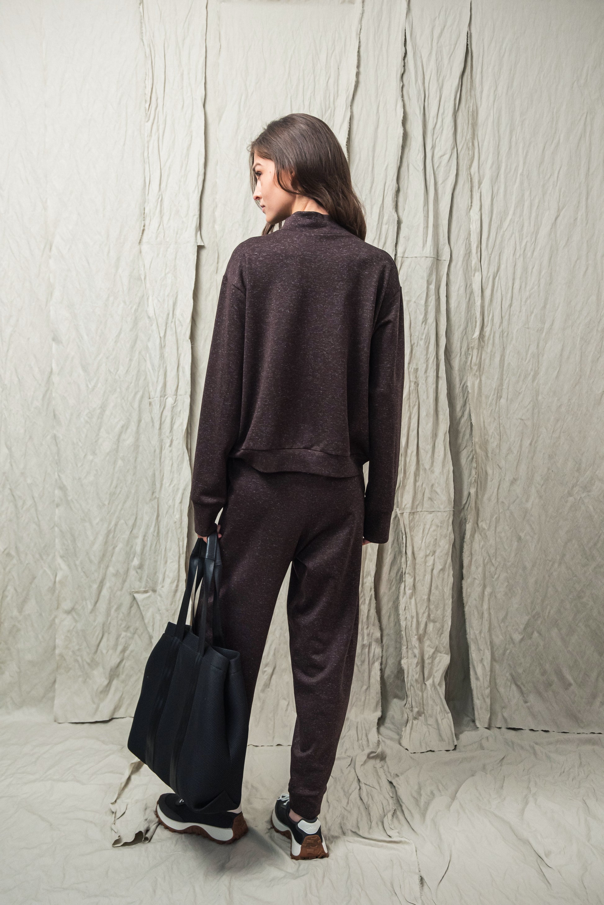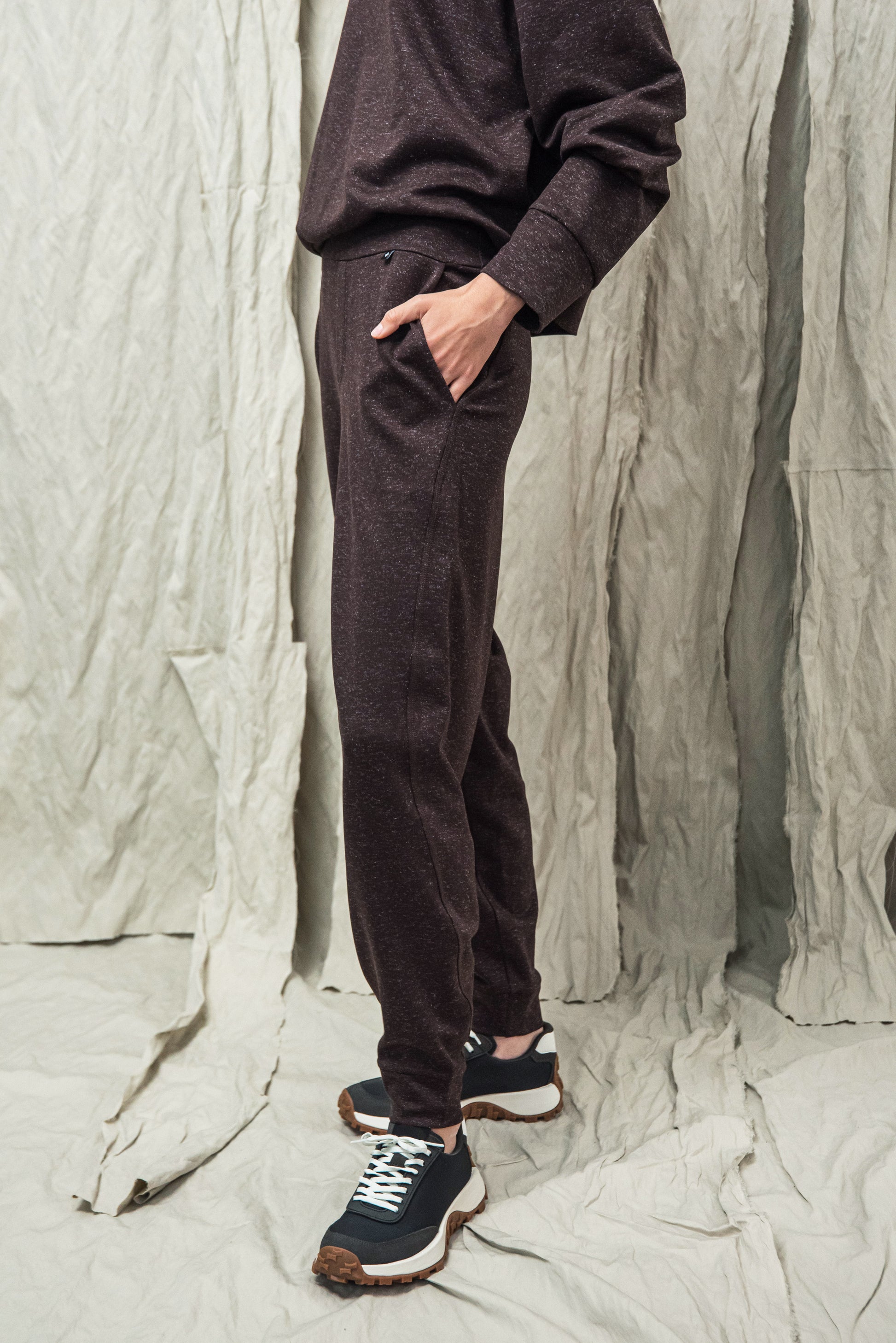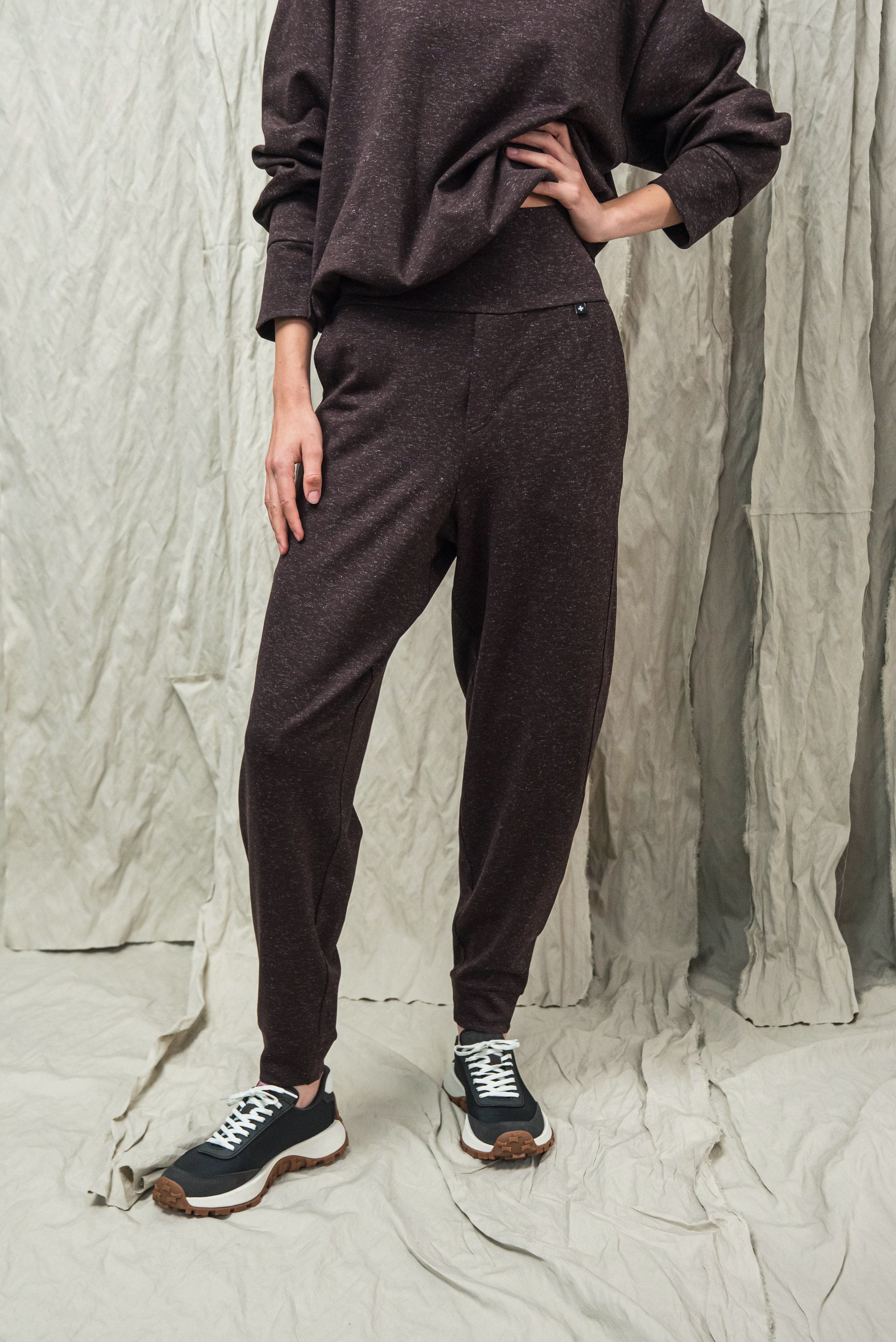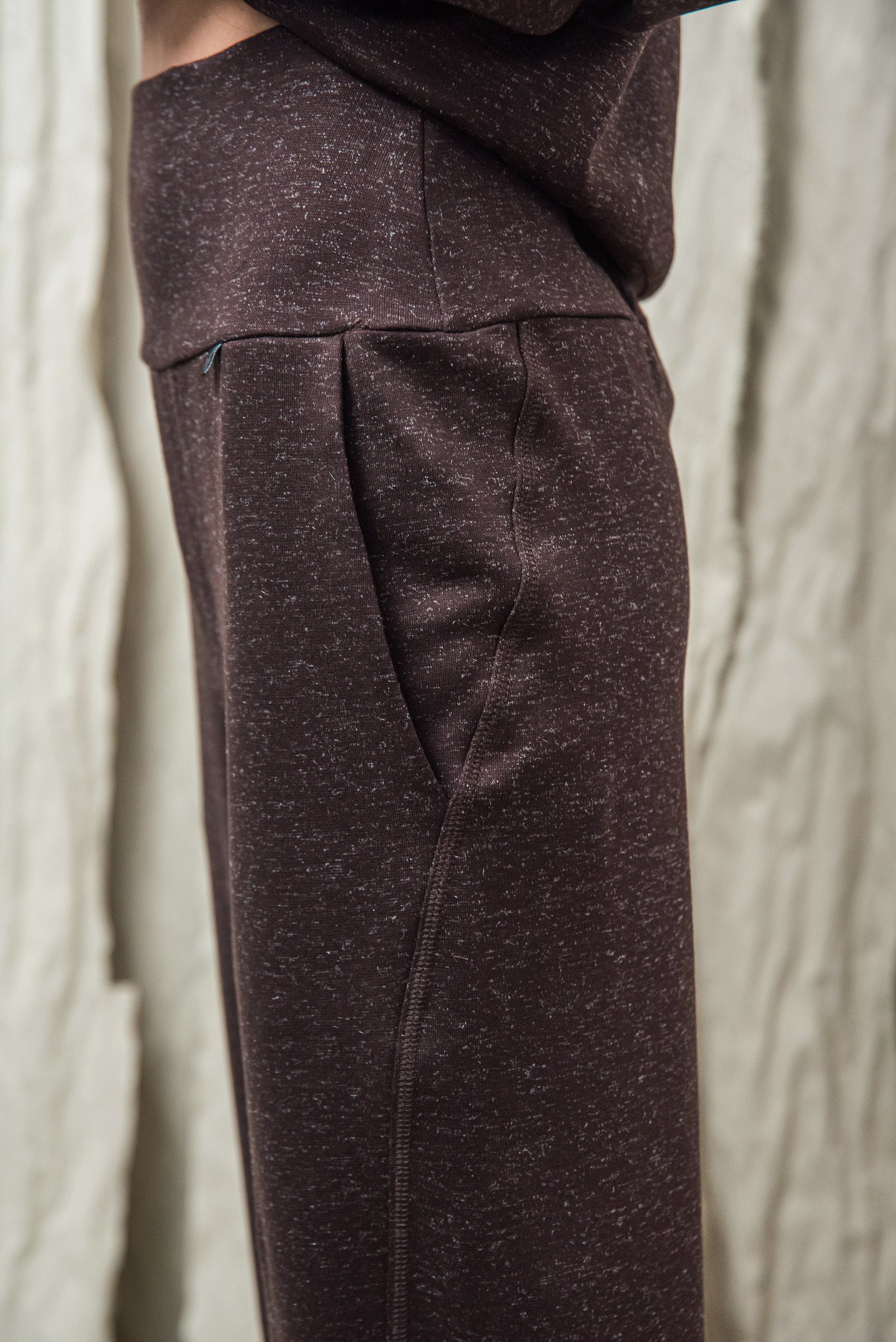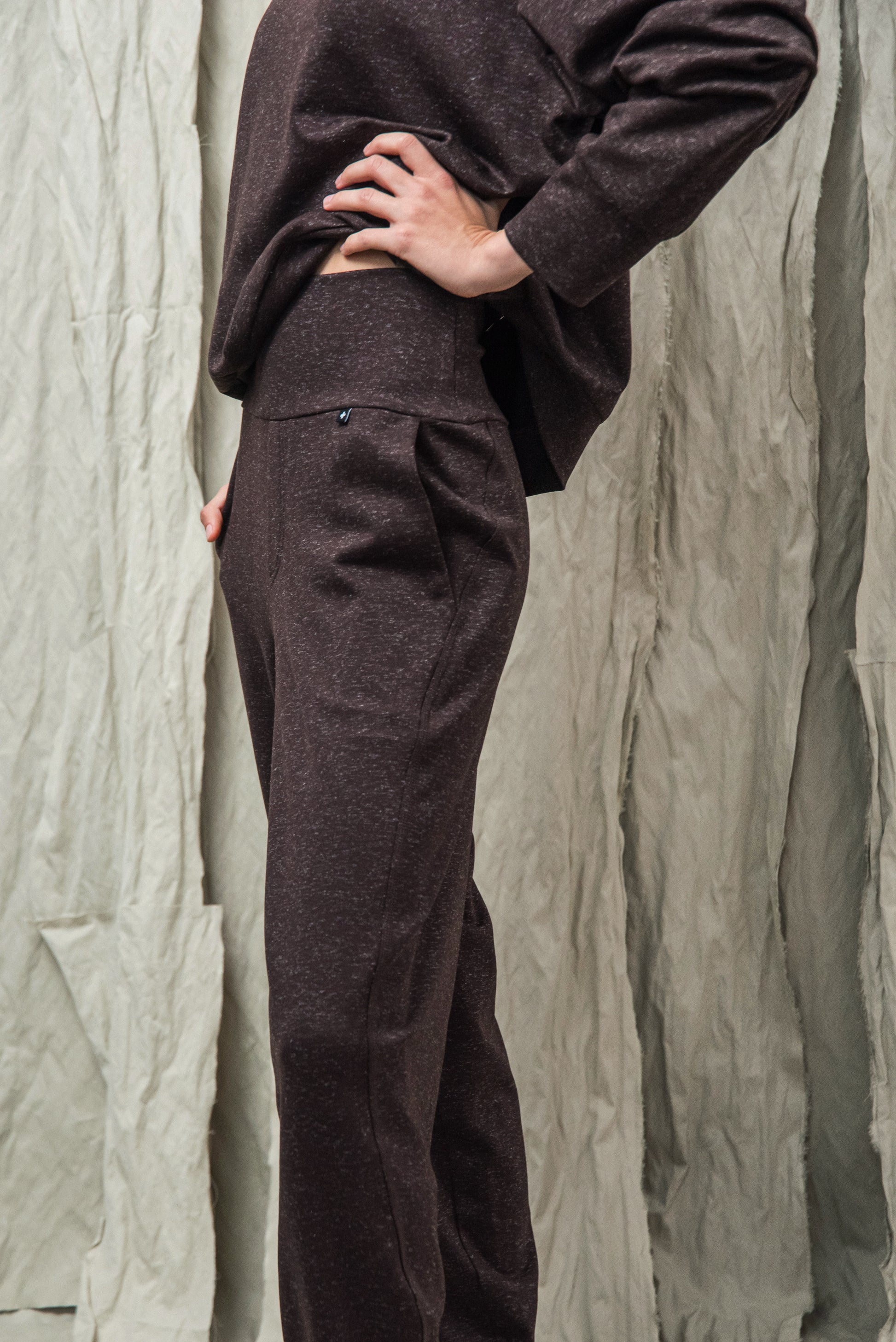 > The SANO trousers combine comfortable freedom of movement with a clean look. Made from soft punto fabric, their loose fit and curved seams give a subtle rhythm to the silhouette. The waist design is comfortable and neat, and the yoke at the ankle gives a definite frame to the overall effect. Two side pockets make them practical to wear. Combined with our TUA sweater, they create a harmonious, uniform set that is a comfortable choice for any time of the day – at home or on the go.