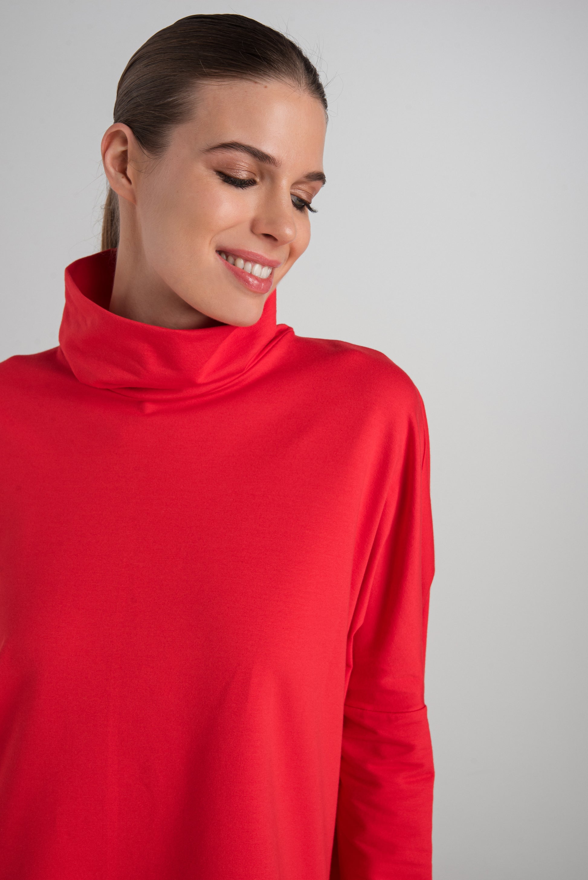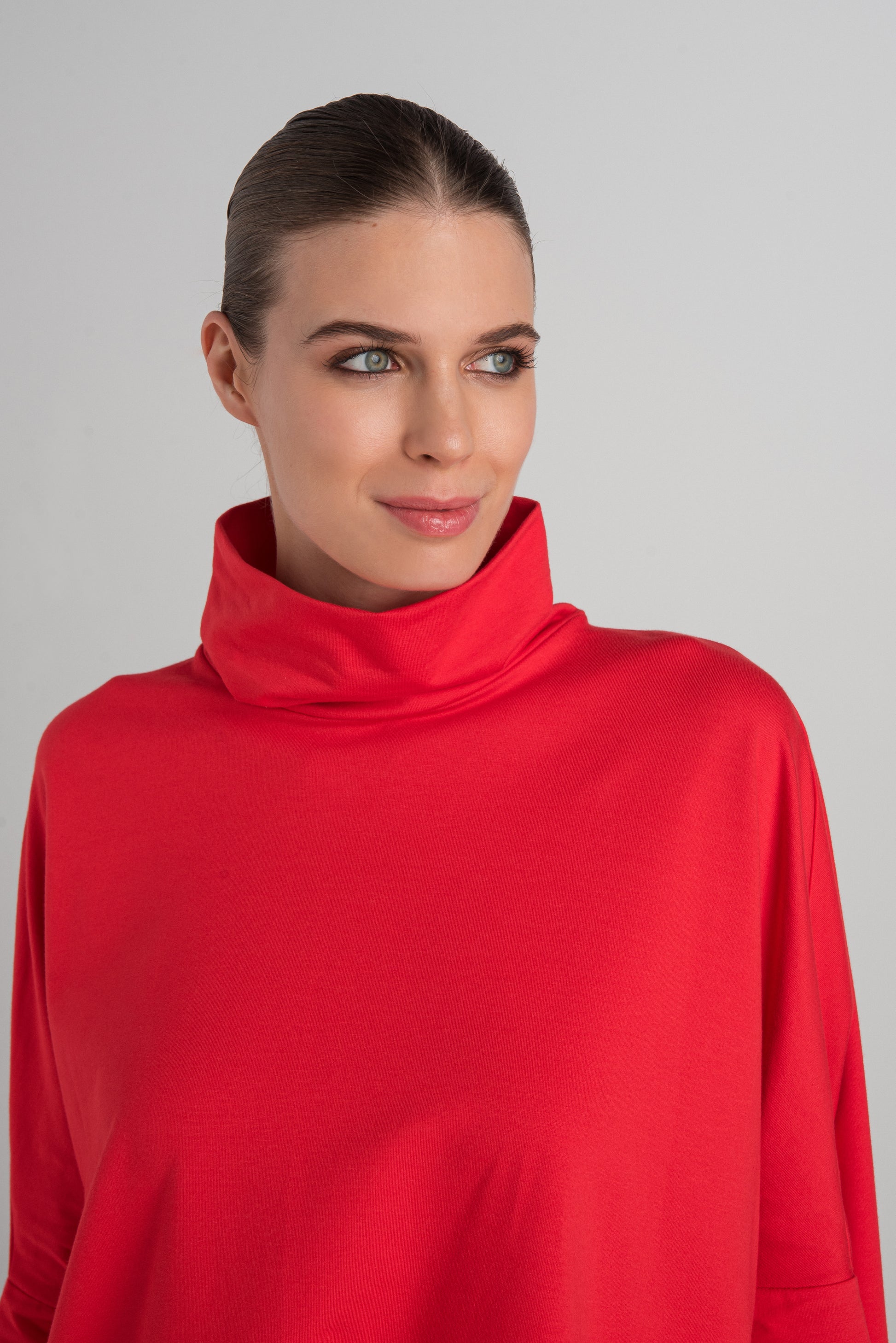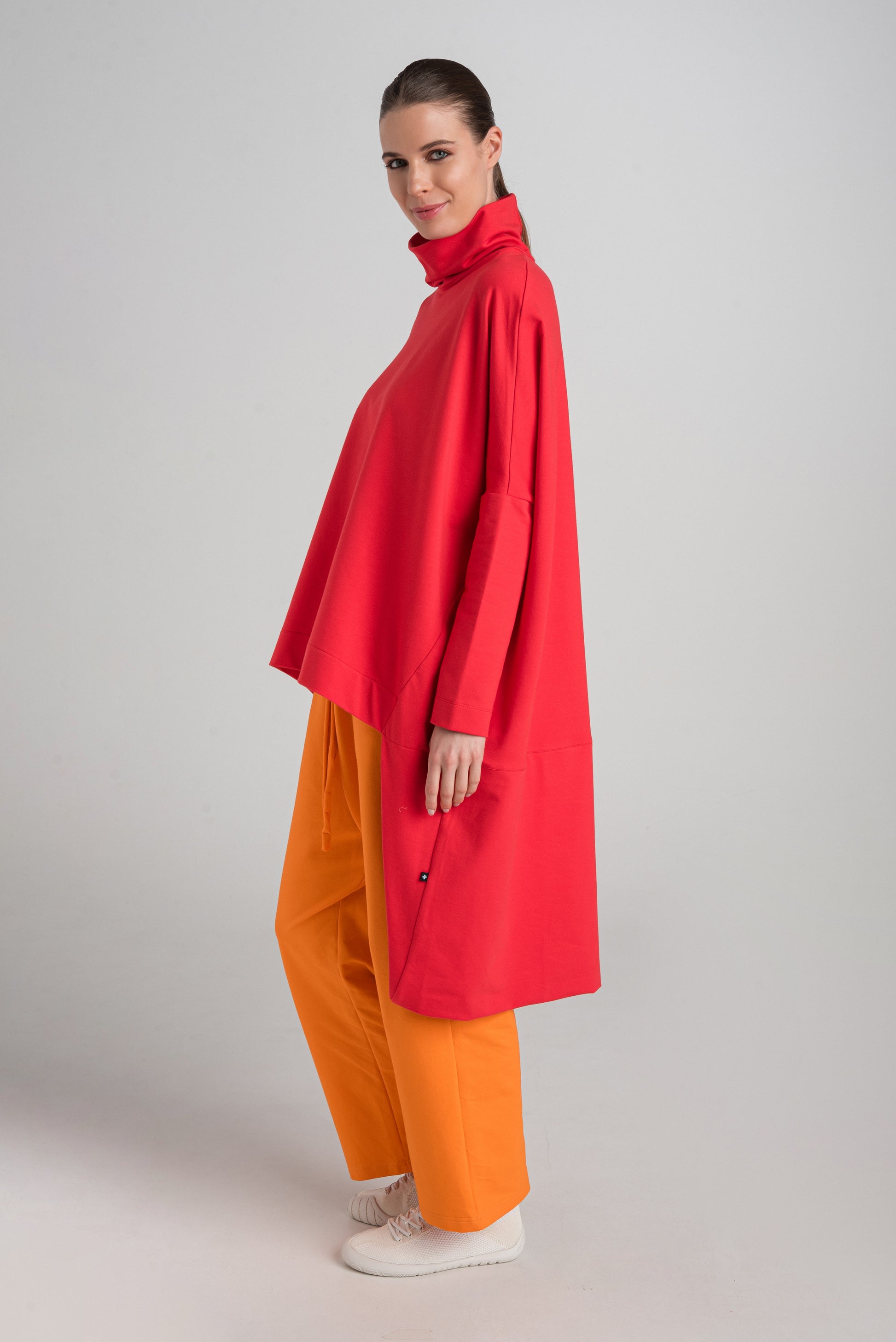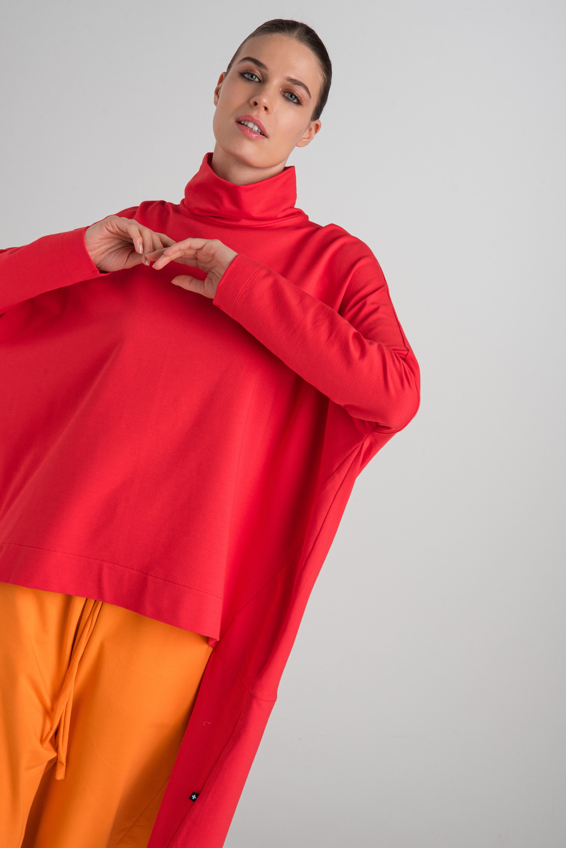 > Our SATO loose sweater has a turtleneck, shorter in the front and longer in the back. A real eye-catcher and at the same time comfortable to wear, a casual, oversized piece. Can be worn with leggings and trousers, practical and comfortable in every way, one of our most popular oversized sweater styles.