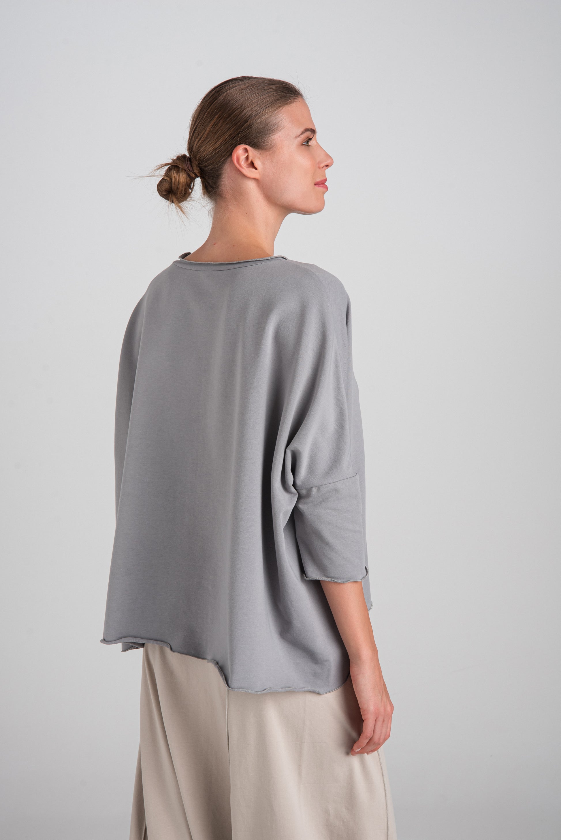 > Our three-quarter-sleeved, loose-fitting SOTO sweater has a loose, comfortable fit, made from soft cotton fleece - the microlock stitching gives it its unique, clean, puritanical character, which we love!
