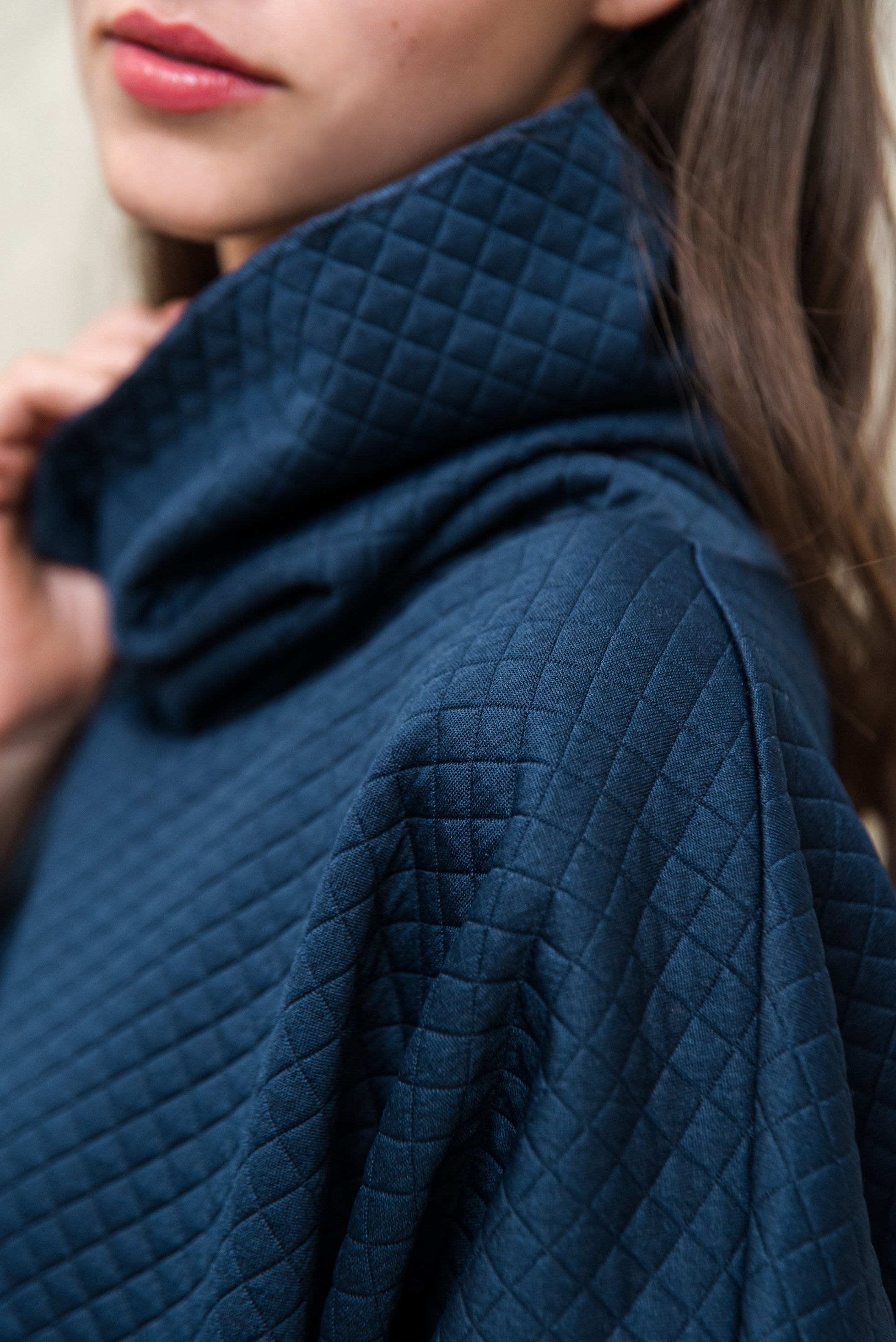 Ez az anyag finoman strukturált, steppelt felületével egyszerre ad tartást és puha komfortot, miközben mozgás közben is természetesen követi a testet. Időtálló minősége és letisztult megjelenése a tudatos, hosszú távra tervezett ruhatár alapja, ahol a funkcionalitás és az esztétika csendben, egymást erősítve van jelen. A Nonplusz szemlélethez hűen visszafogott, mégis karakteres – olyan anyag, amely nem harsány, hanem maradandó.