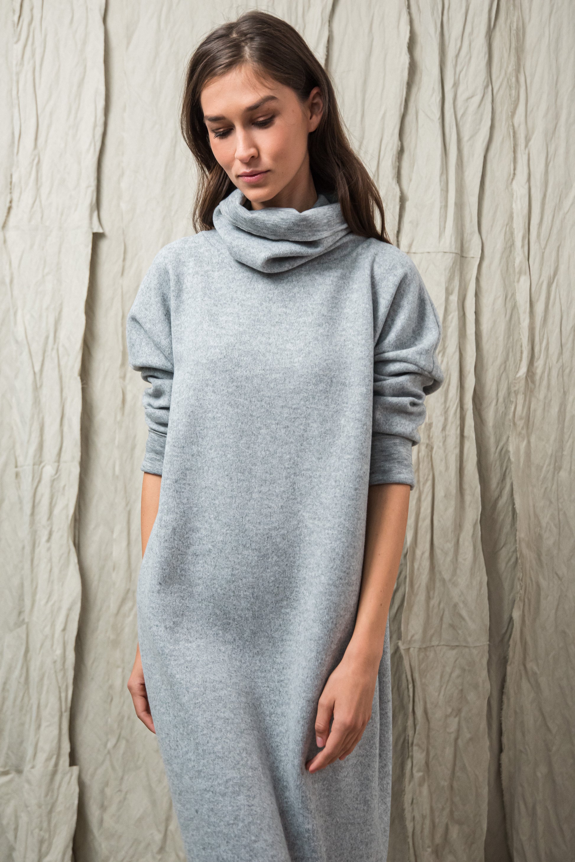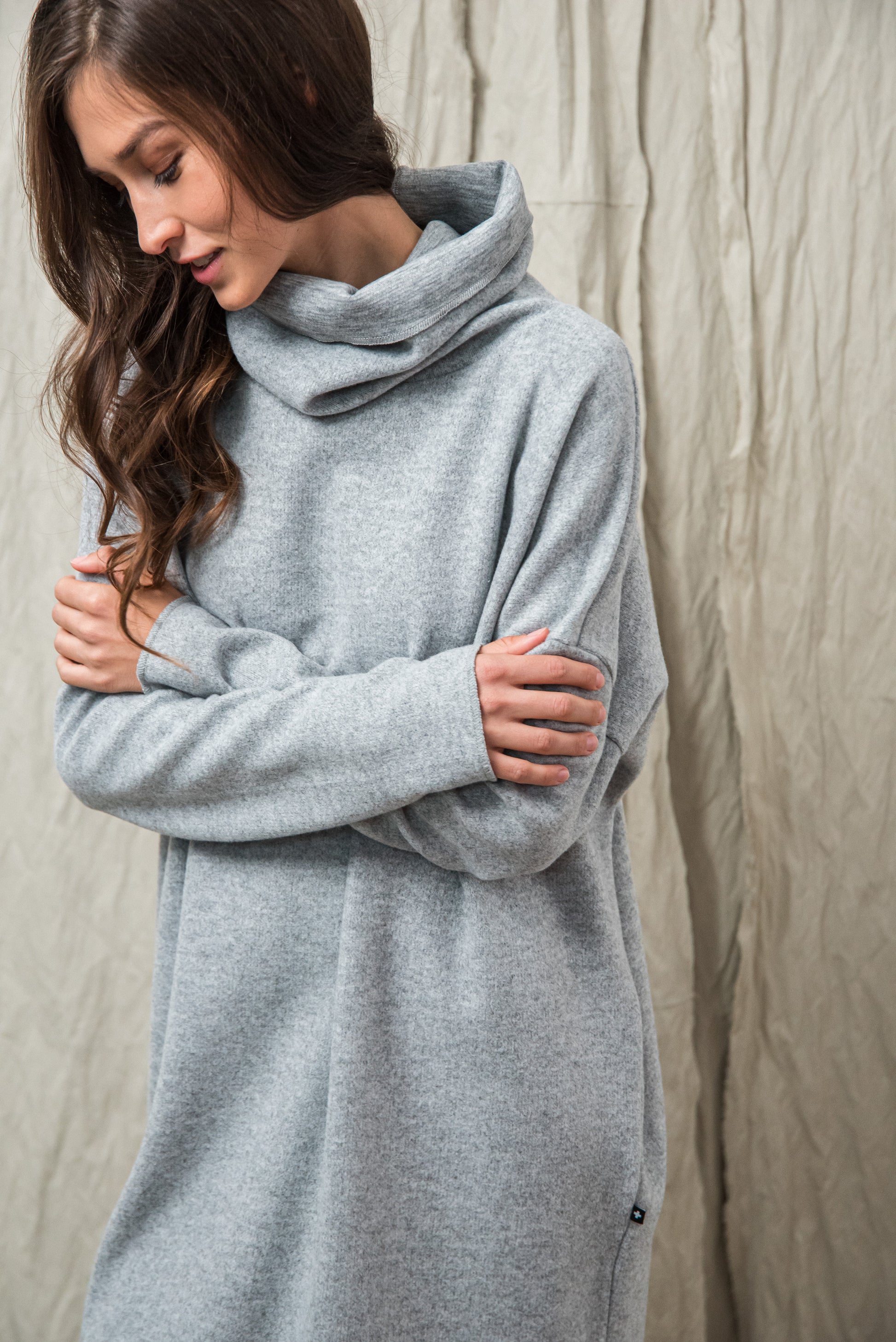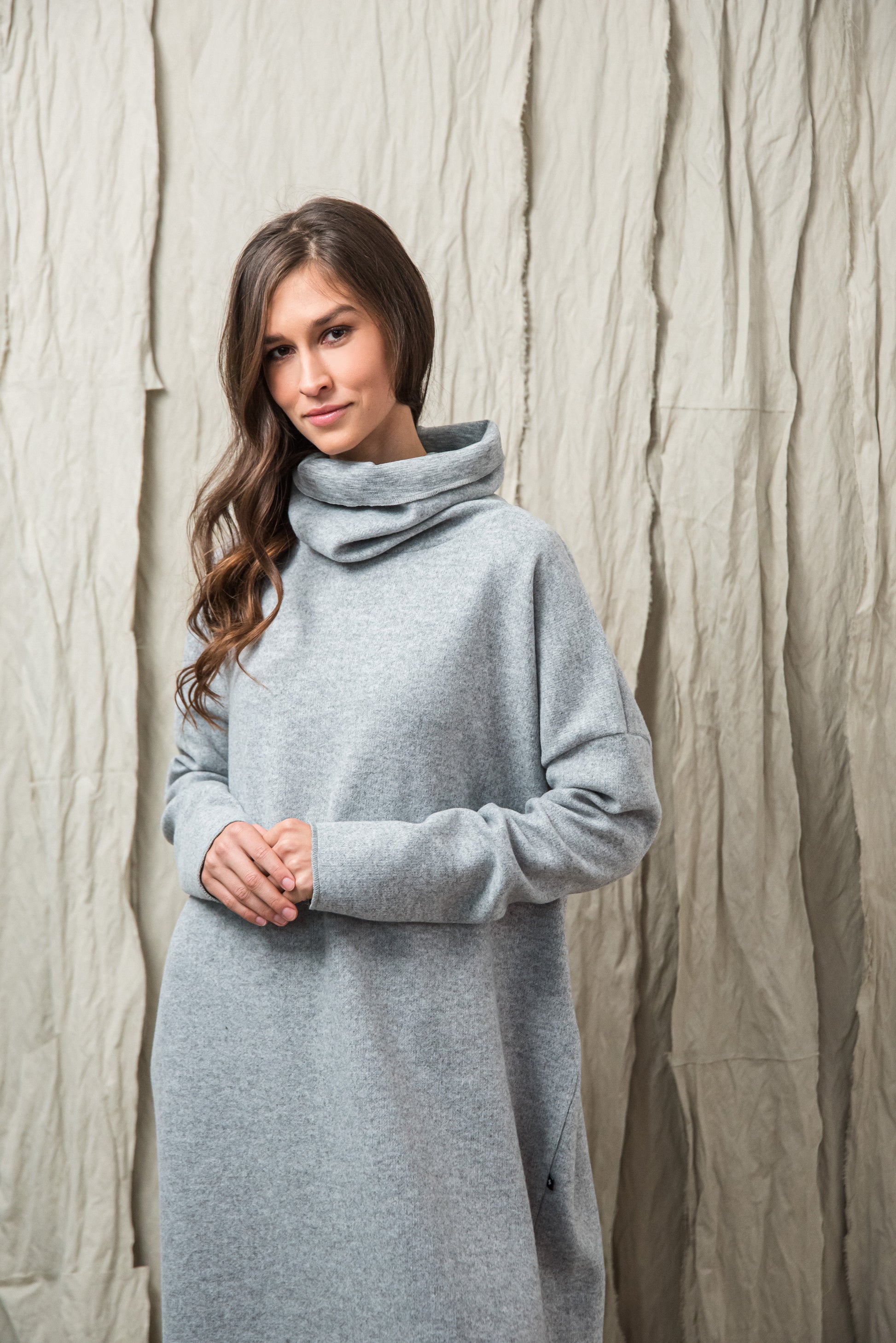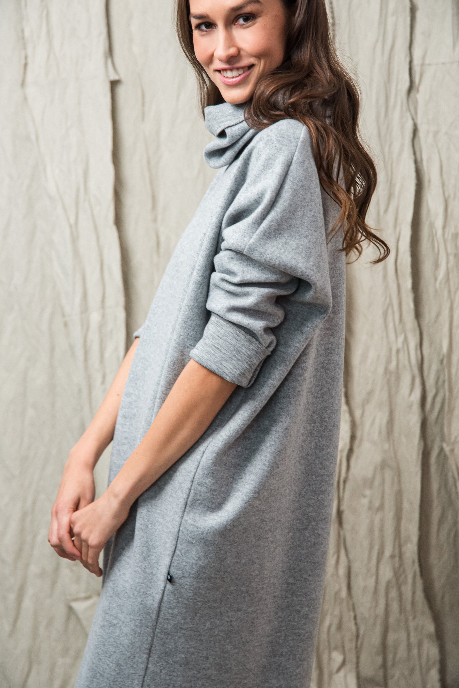 > Az AINA pulóverruha lágy esésével és kámzsás kialakításával úgy simul rád, mintha mindig is a ruhatárad része lett volna. Letisztult vonalait mikrolock eldolgozás teszi még természetesebbé, míg a puha, kötött alapanyag finom tartást ad a megjelenésednek. Egy igazi jolly joker, amit újra és újra örömmel viselsz majd – ez a ruha garantáltan megbízható és kényelmes választás, ami gyorsan a kedvenceddé válik.
