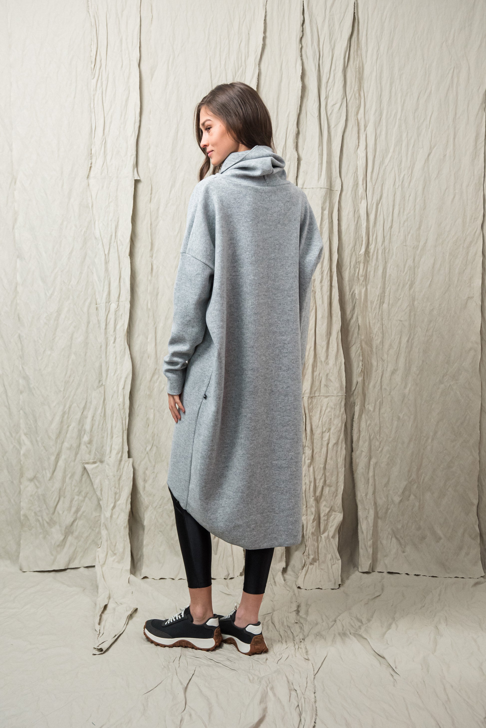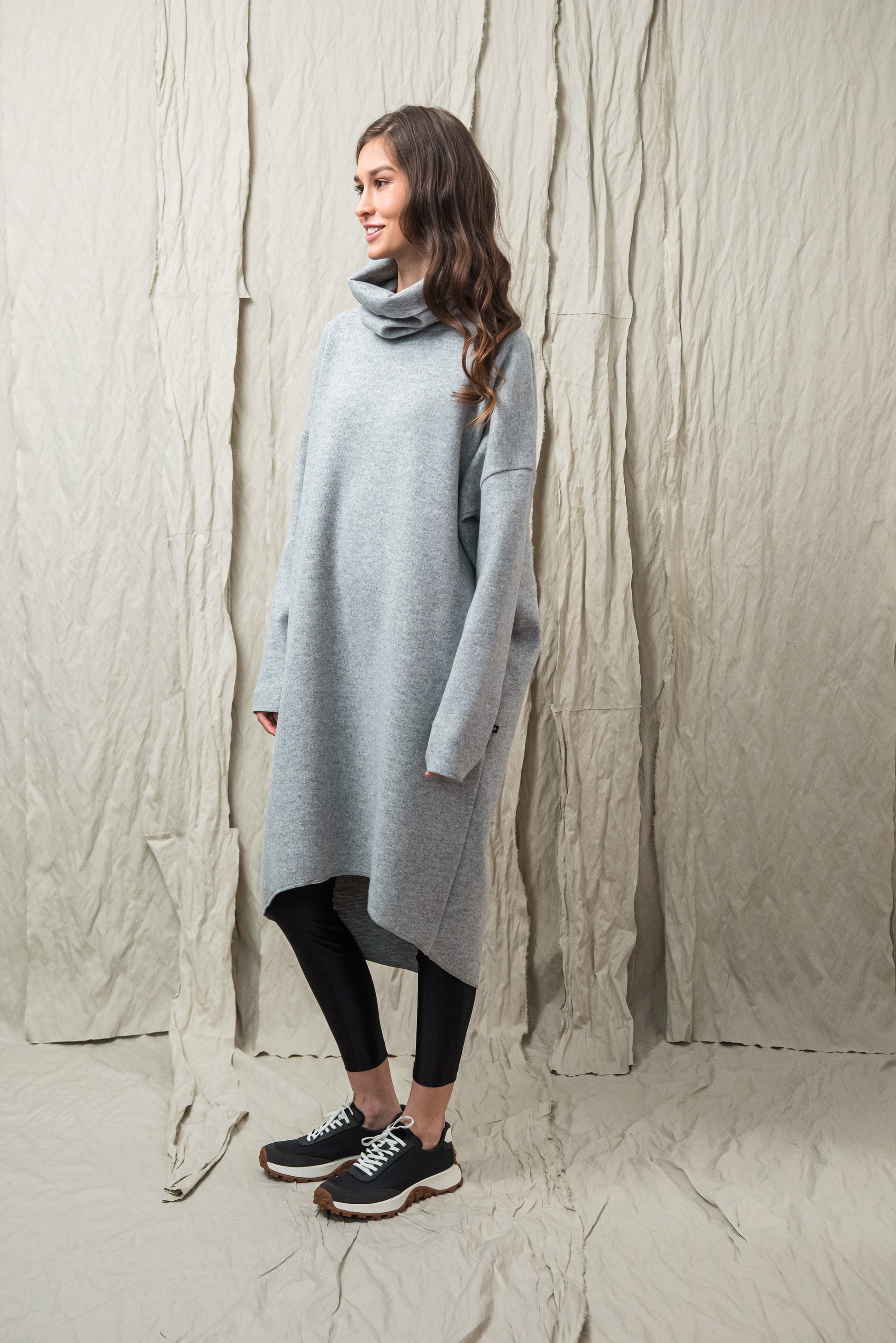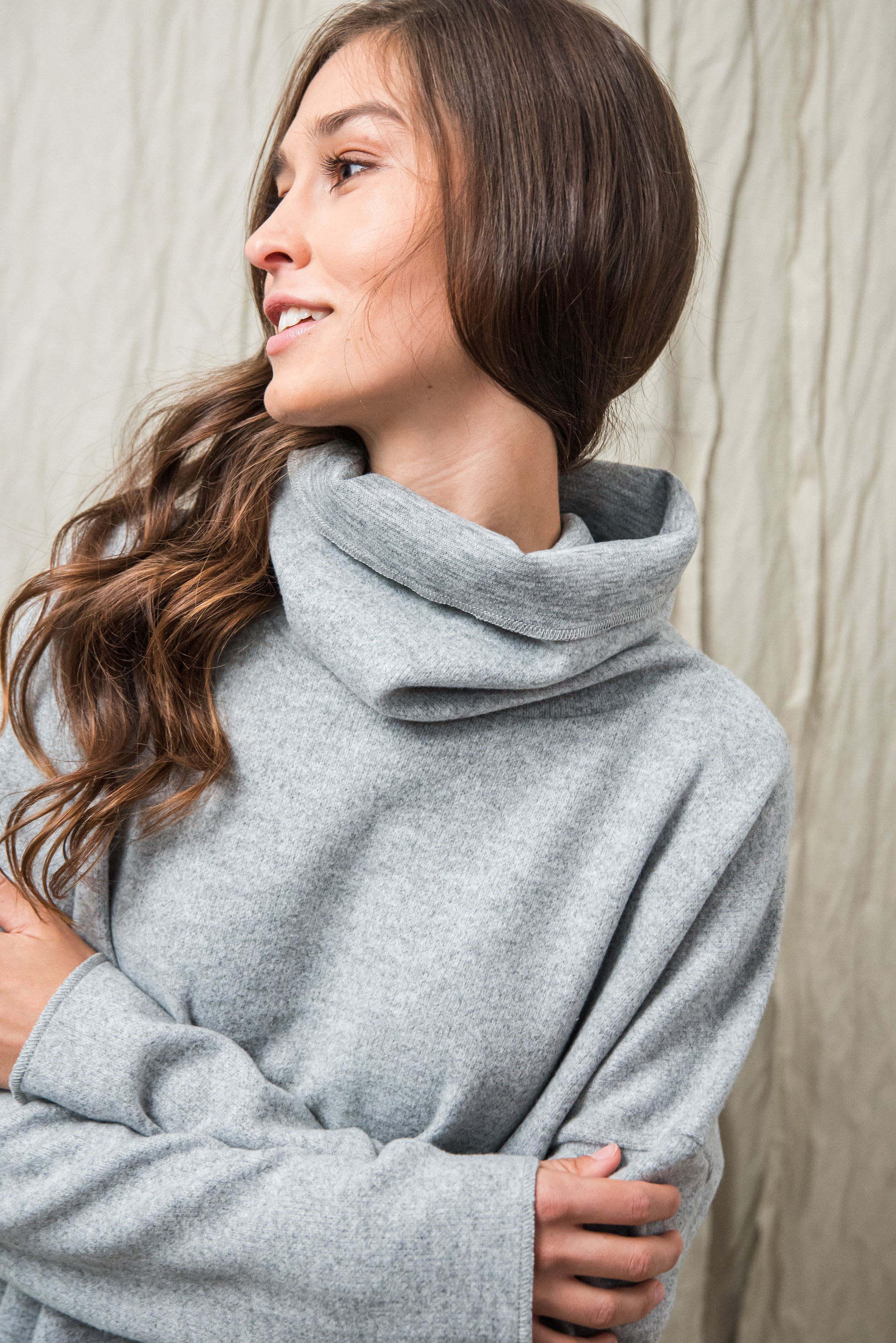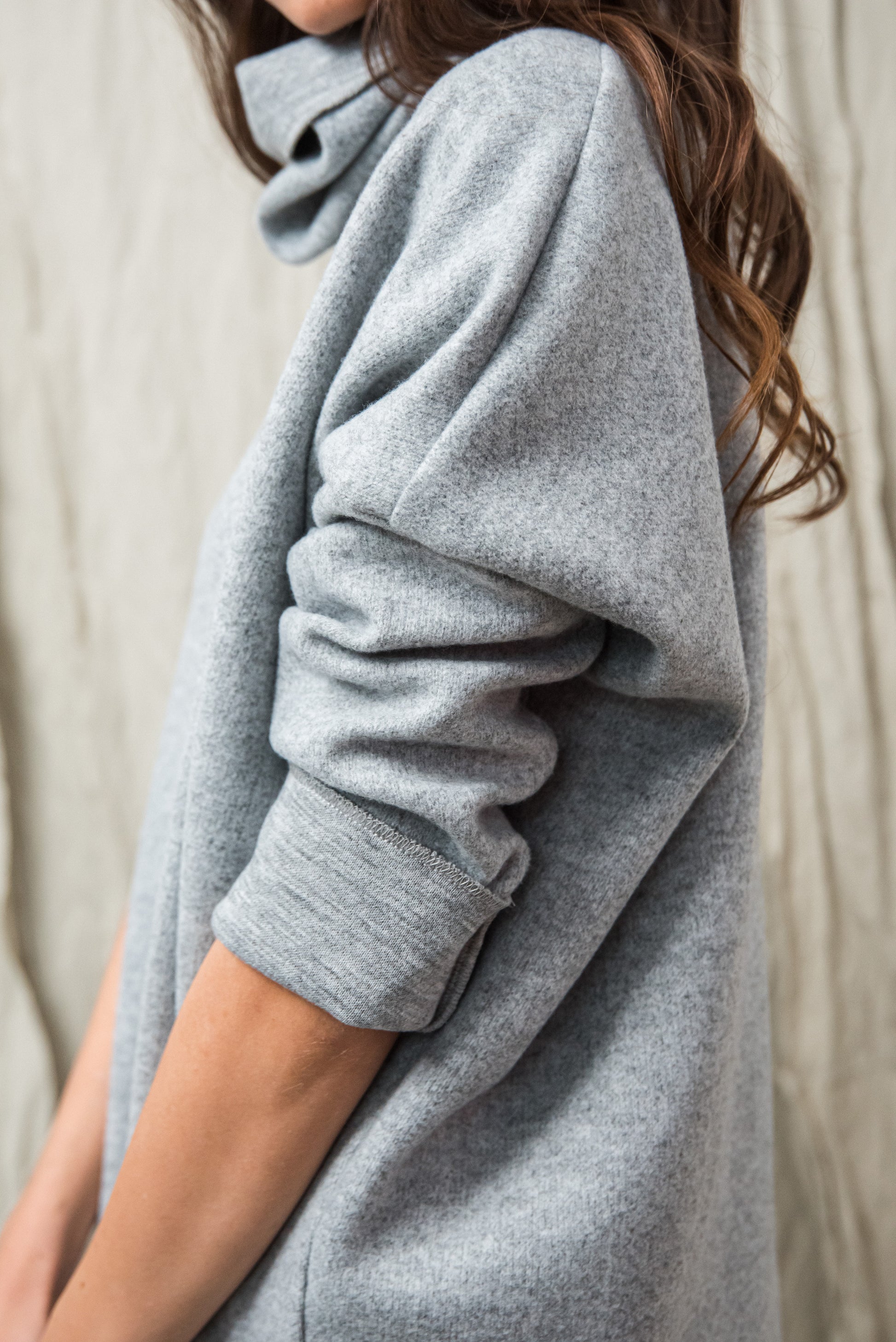 > Az AINA pulóverruha lágy esésével és kámzsás kialakításával úgy simul rád, mintha mindig is a ruhatárad része lett volna. Letisztult vonalait mikrolock eldolgozás teszi még természetesebbé, míg a puha, kötött alapanyag finom tartást ad a megjelenésednek. Egy igazi jolly joker, amit újra és újra örömmel viselsz majd – ez a ruha garantáltan megbízható és kényelmes választás, ami gyorsan a kedvenceddé válik.