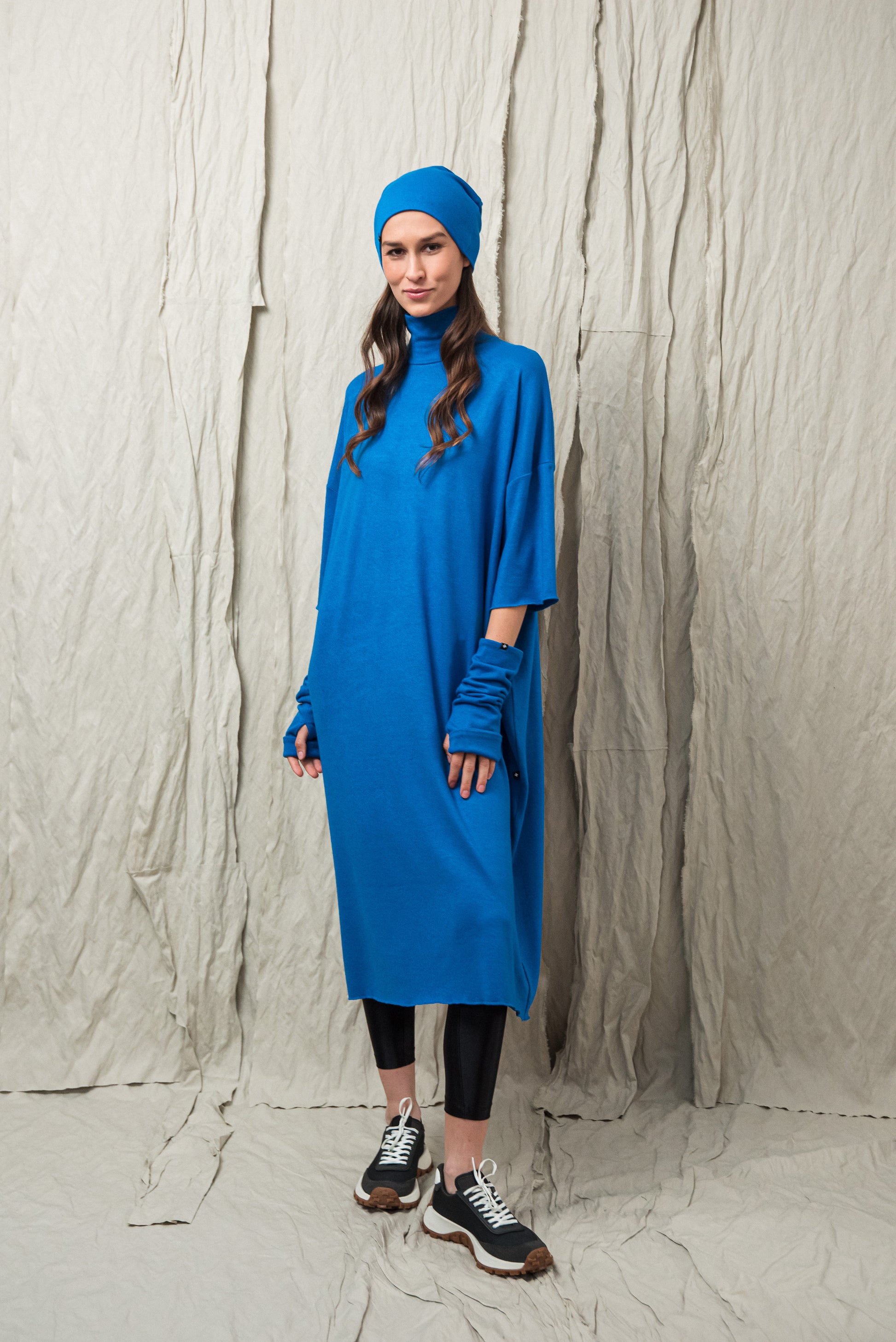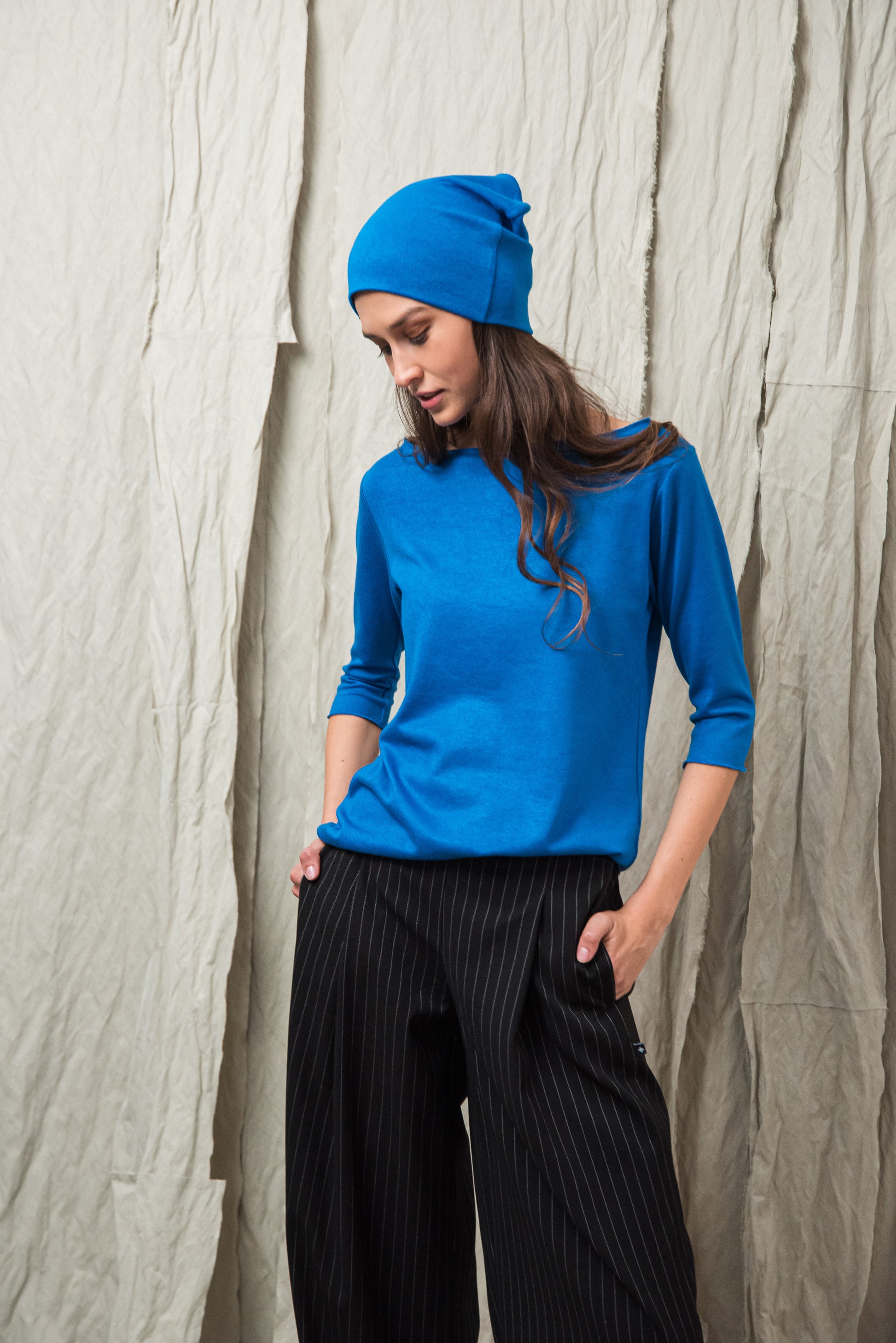 Puha, kötött rayon keverék alapanyagunk selymes tapintásával gyengéden simul a bőrhöz. Közepesen vékony, mégis van tartása - az anyag szerkezete szépen engedi érvényesülni a fazonok vonalait, miközben a kötött anyag természetes rugalmassága extra komfortot ad. Légáteresztő textúrája miatt egész napos viselésre is kényelmes, így minden darabunk könnyed érzetet és letisztult eleganciát kínál. Ennek a gondosan válogatott alapanyagnak köszönhetően az ebből készült modellek egyszerre praktikusak, kényelmesek és esztétikailag kifinomultak.