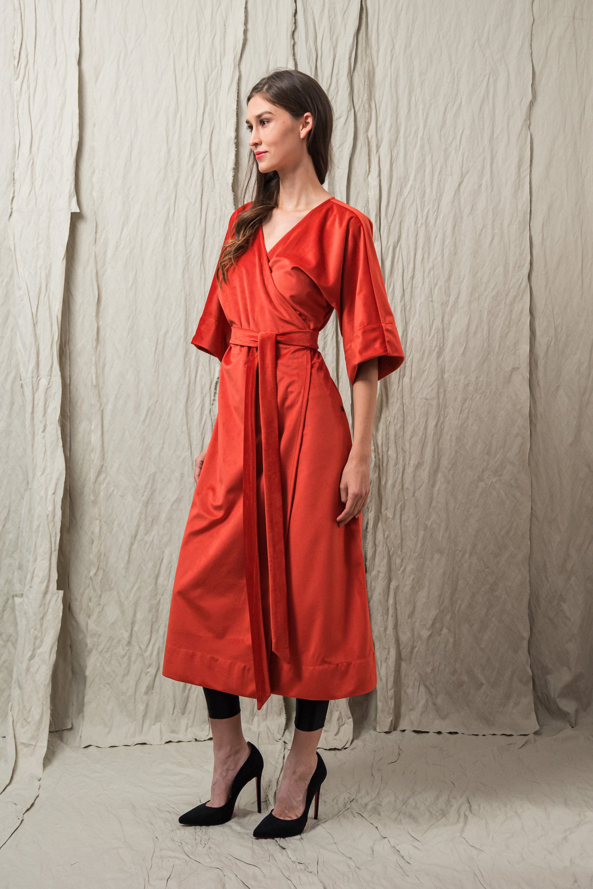 > ANAU átlapolós ruhánk a letisztult elegancia megtestesítője — különleges, bársony anyaga minden mozdulatban életre kel - a fekete szín időtlen klasszikus, mely a közelgő ünnepi időszakban különösen elegáns választás: legyen szó karácsonyi vacsoráról, meghitt családi összejövetelről vagy ünnepi eseményről.