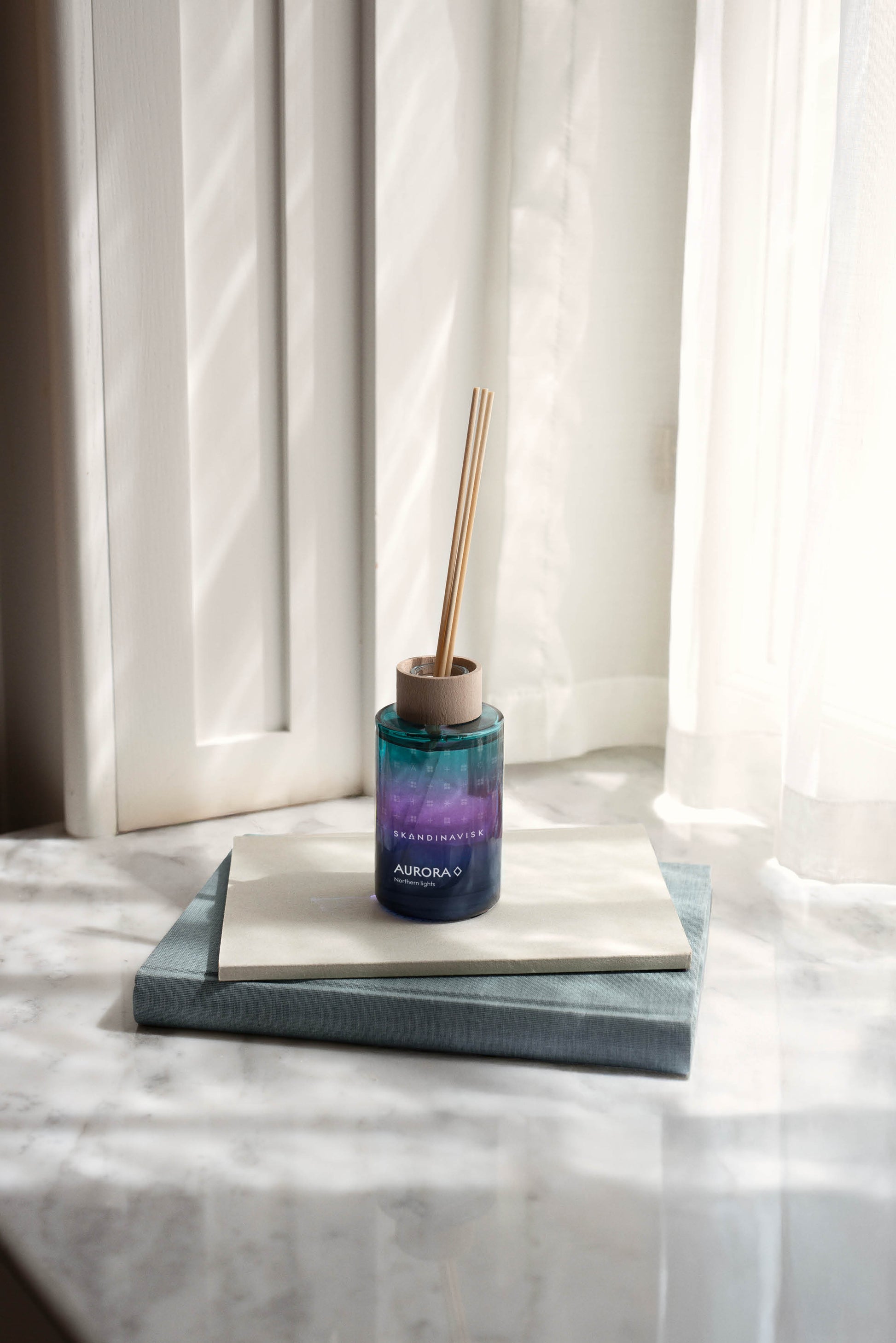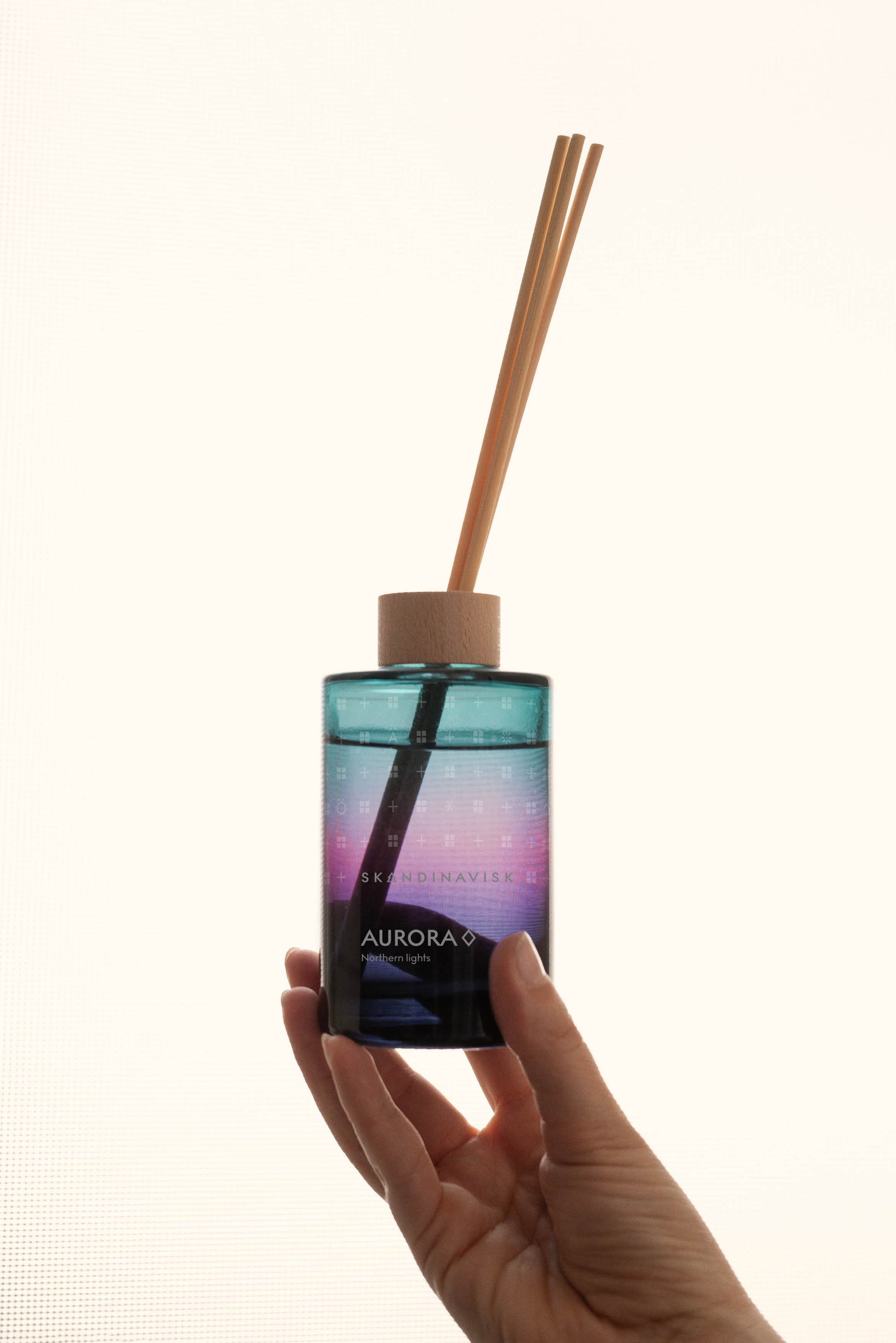 > Az AURORA diffúzor skandináv illattörténeteket és megújuló gazdálkodásból származó növényi olajokat ötvöz egy festett üveg vázában, dekoratív FSC tanúsítvánnyal rendelkező bükkfa gyűrűvel és nyolc nagy teljesítményű pálcikával, amelyekkel akár 3 hónapig tartó gyengéd és felelősségteljes szobaillatosítást biztosítanak. Alkoholmentes. Nem veszélyes. Vegán. Az FSC tanúsítvánnyal rendelkező csomagolólap természetes színezékekkel van nyomtatva és újrahasznosítható.