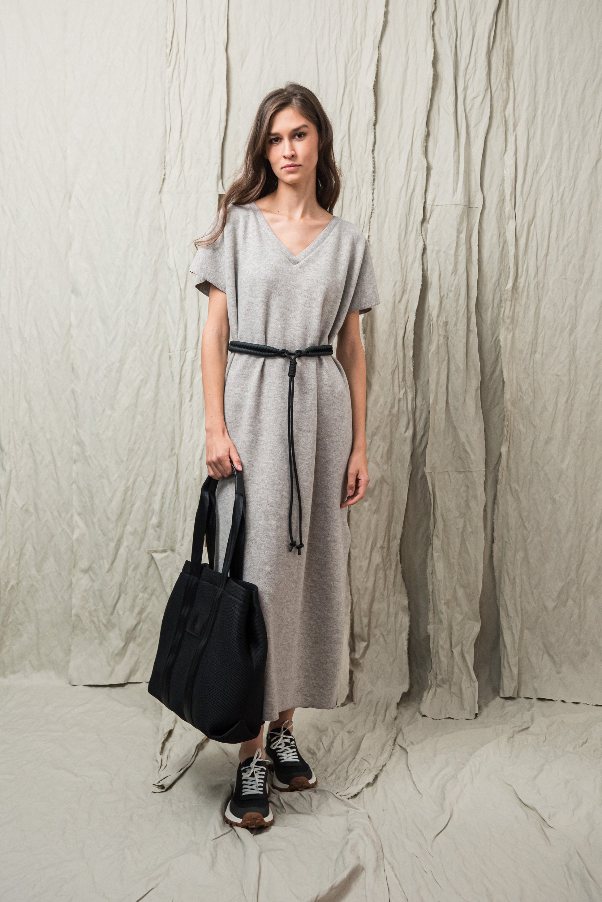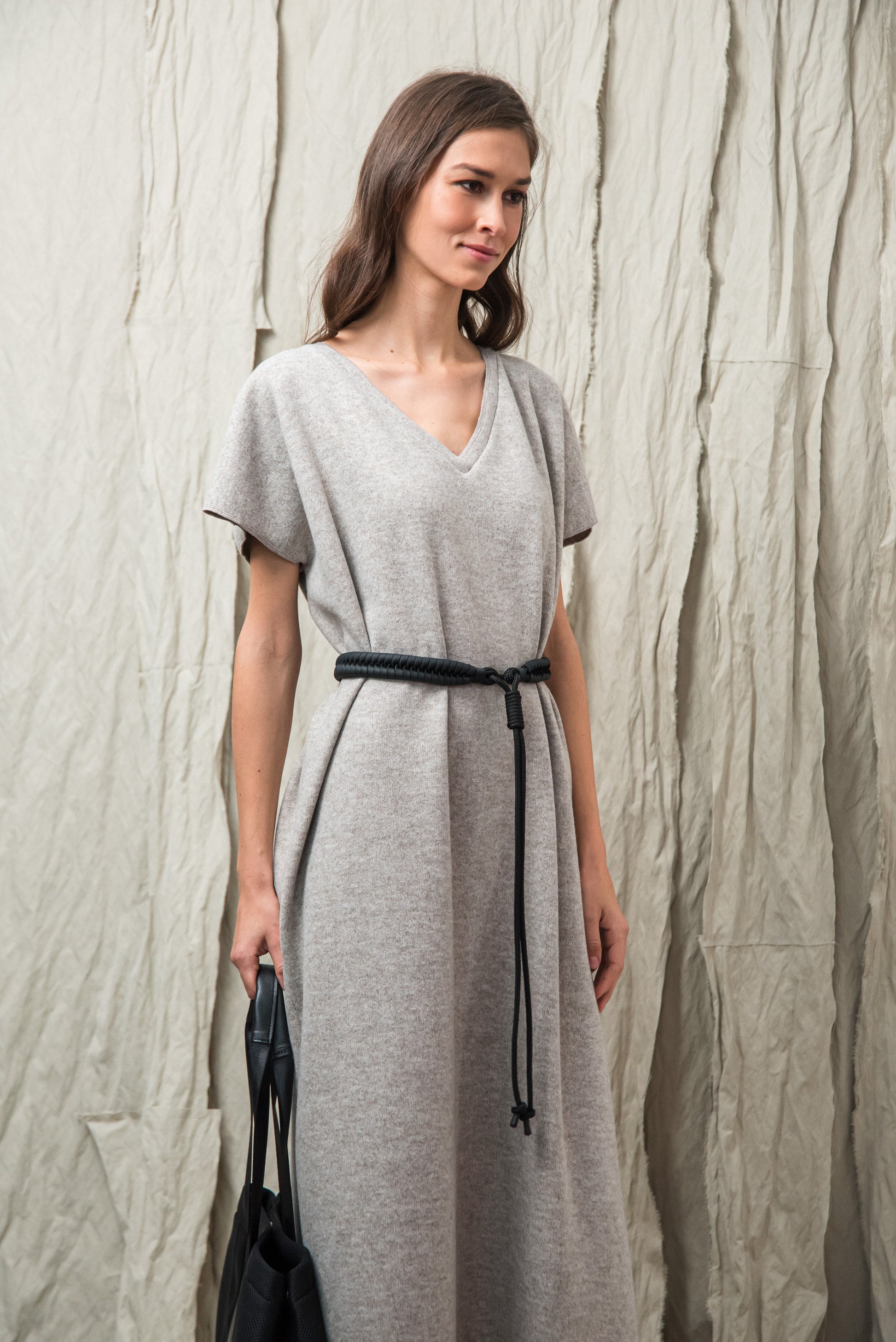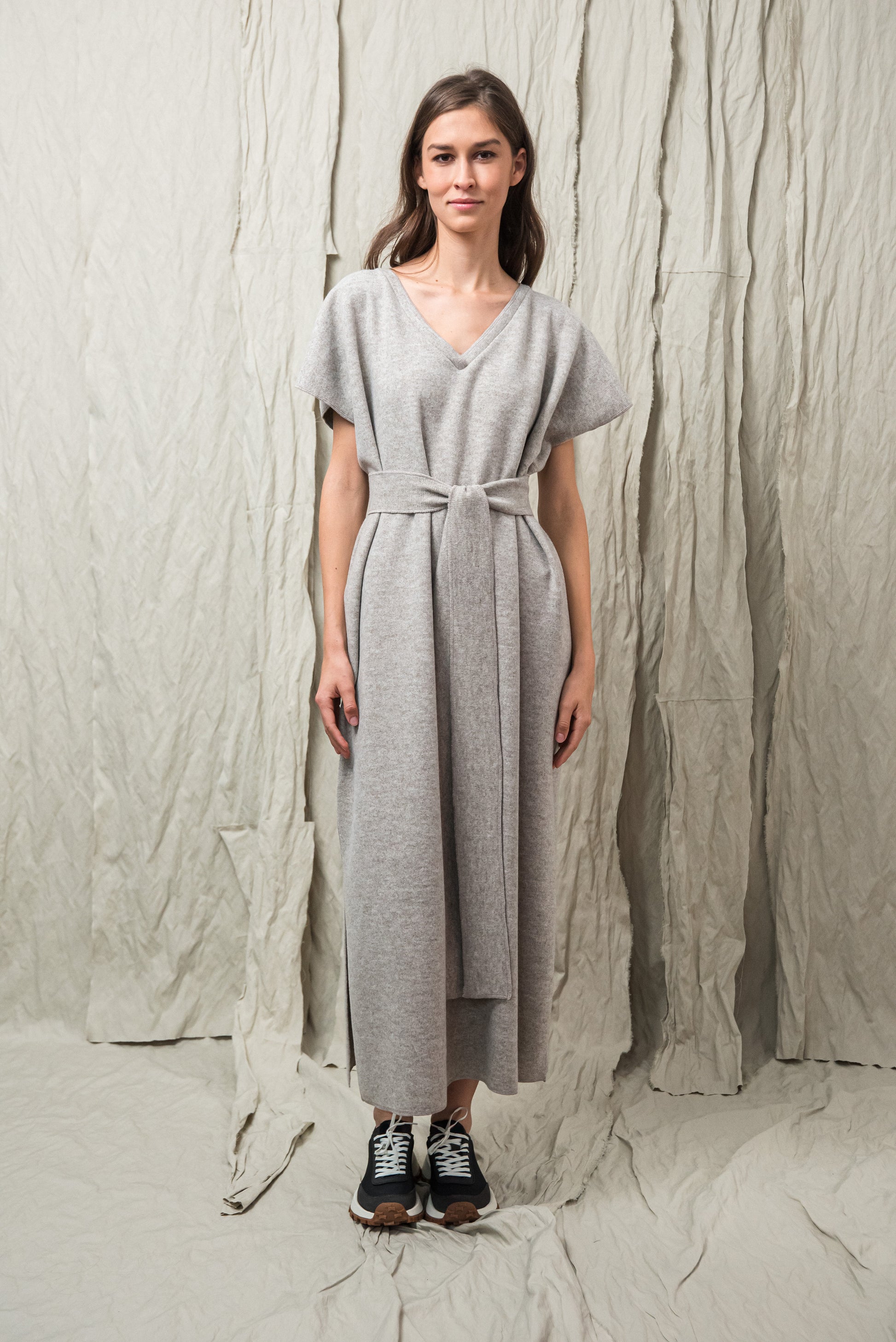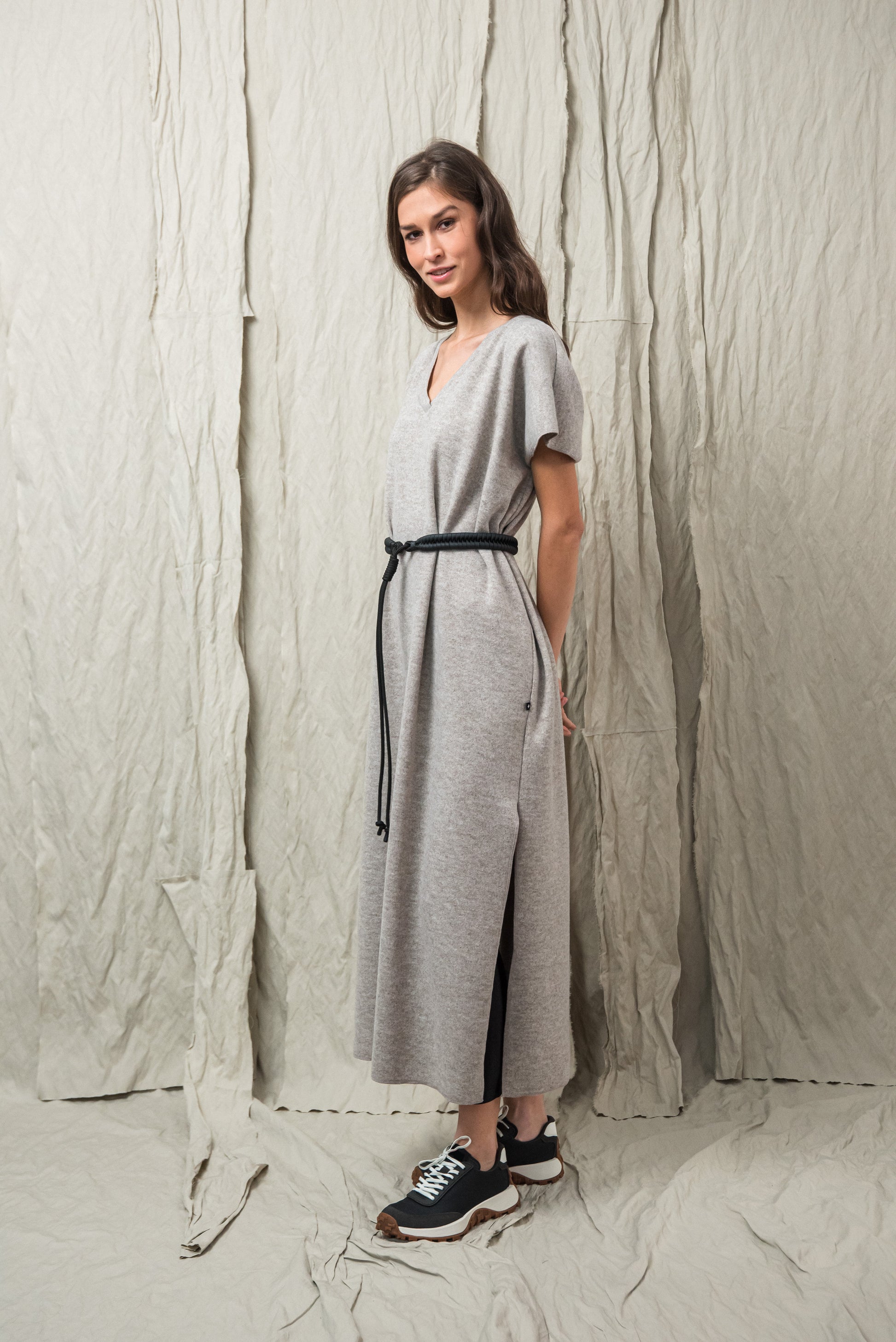 > AWA ruhánk tökéletes viselet, ami egyszerre egyszerű és karakteres. Laza, V‑nyakú fazonját oldalsó sliccek dobják fel, amelyek finom mozgásteret adnak a mindennapokhoz. Anyagából készült övvel a testkontúr rögtön kirajzolódik - de öv nélkül is viselhető. Anyaga puha, kényelmes - fazonja pedig időtlen eleganciát kölcsönöz. A mikrolock eldolgozás szép, letisztult vonalakat eredményez, így a ruhadarab egyszerre hat sportosan könnyednek és finoman nőiesnek. A NONPLUS filozófiáját tükrözve: ez a ruhadarab egyszerre természetes, fenntartható és hosszú távon hordható – a letisztult, mégis figyelemfelkeltő design jegyében.