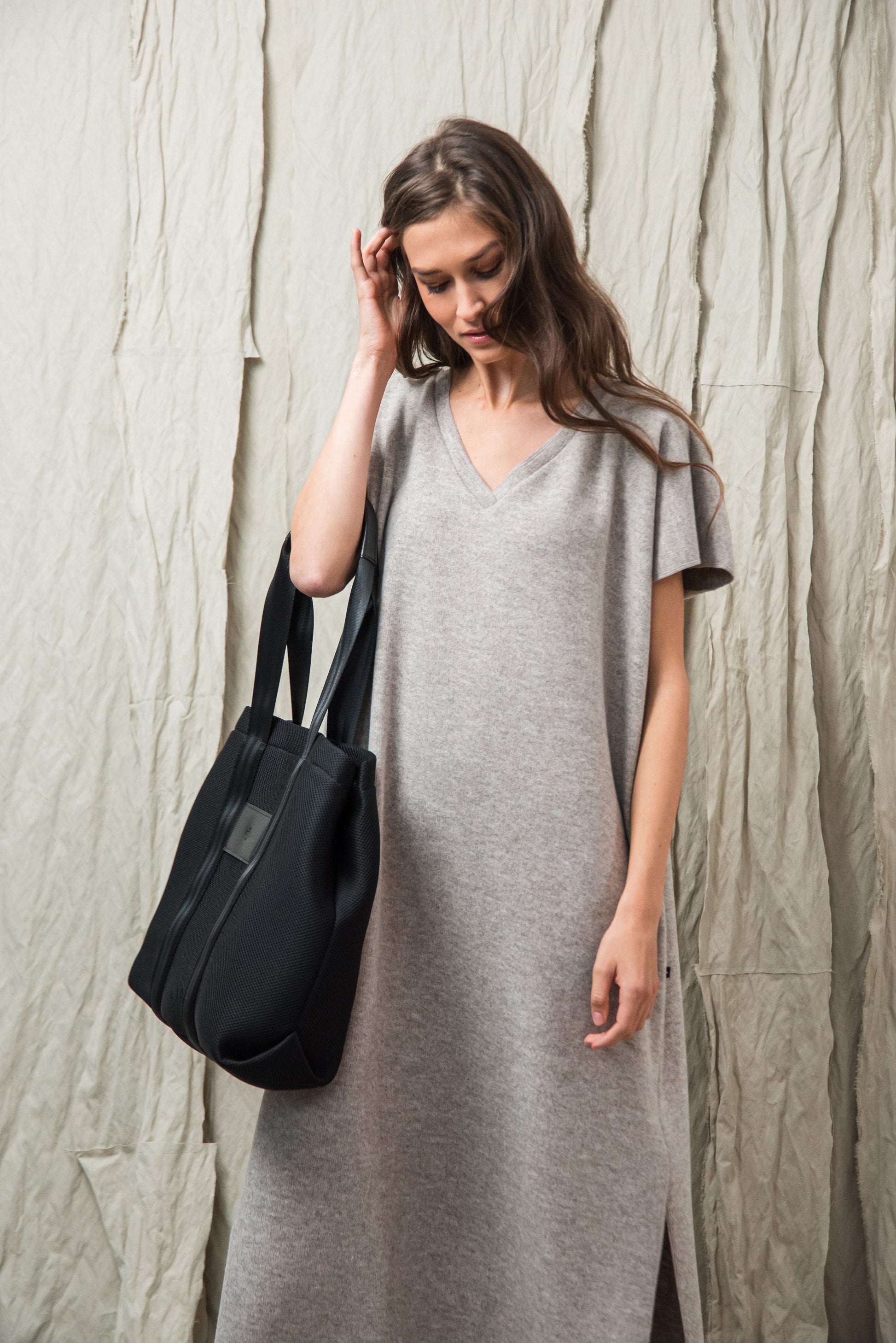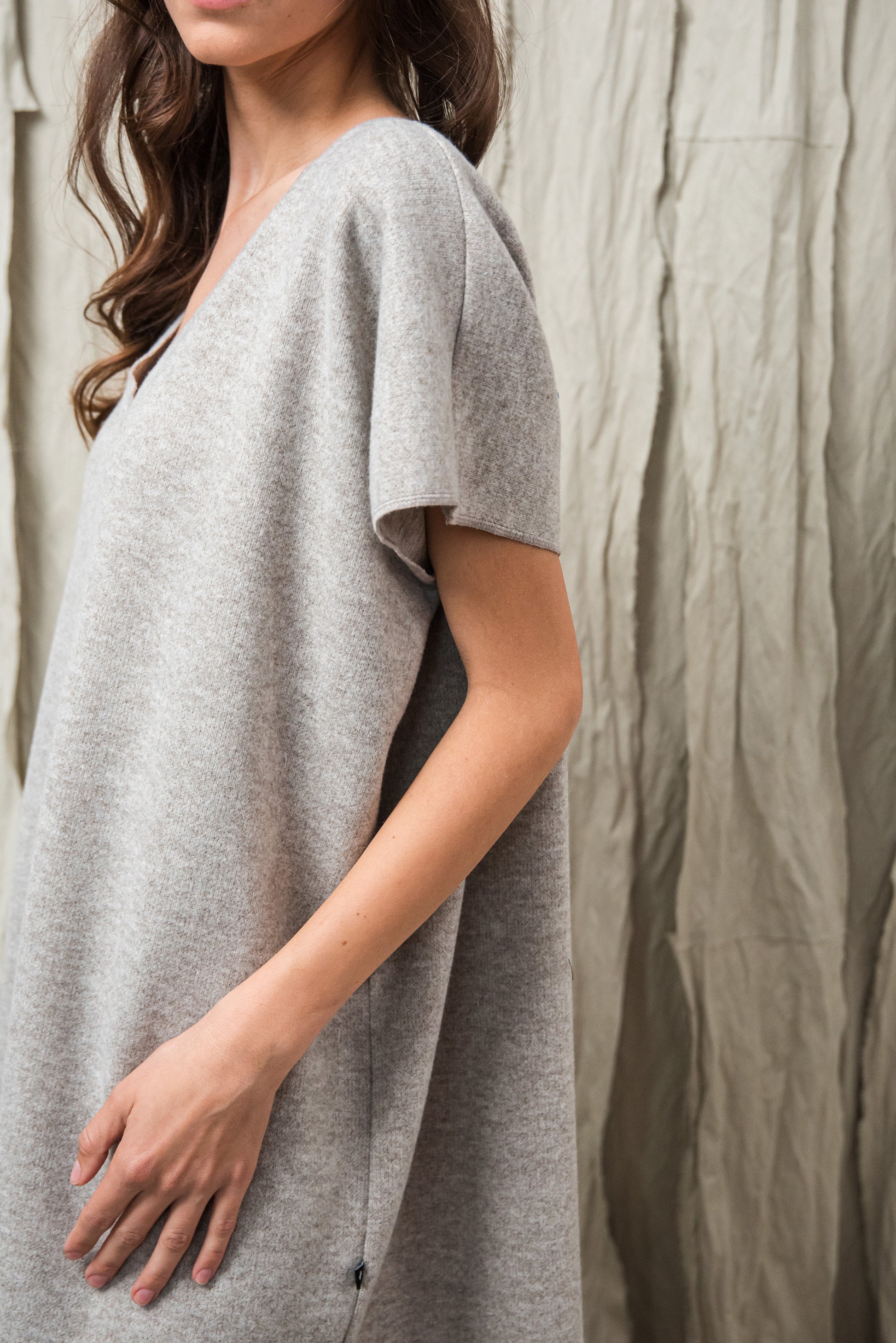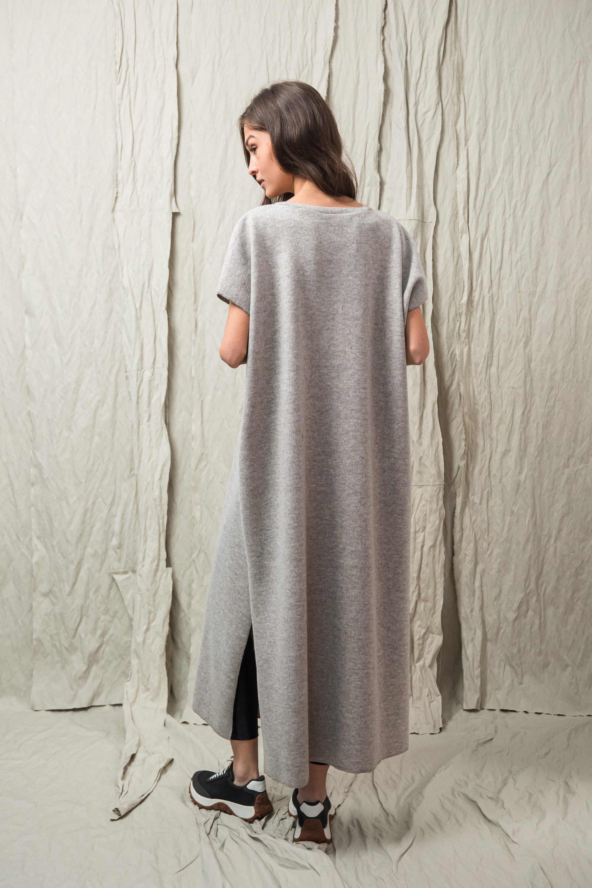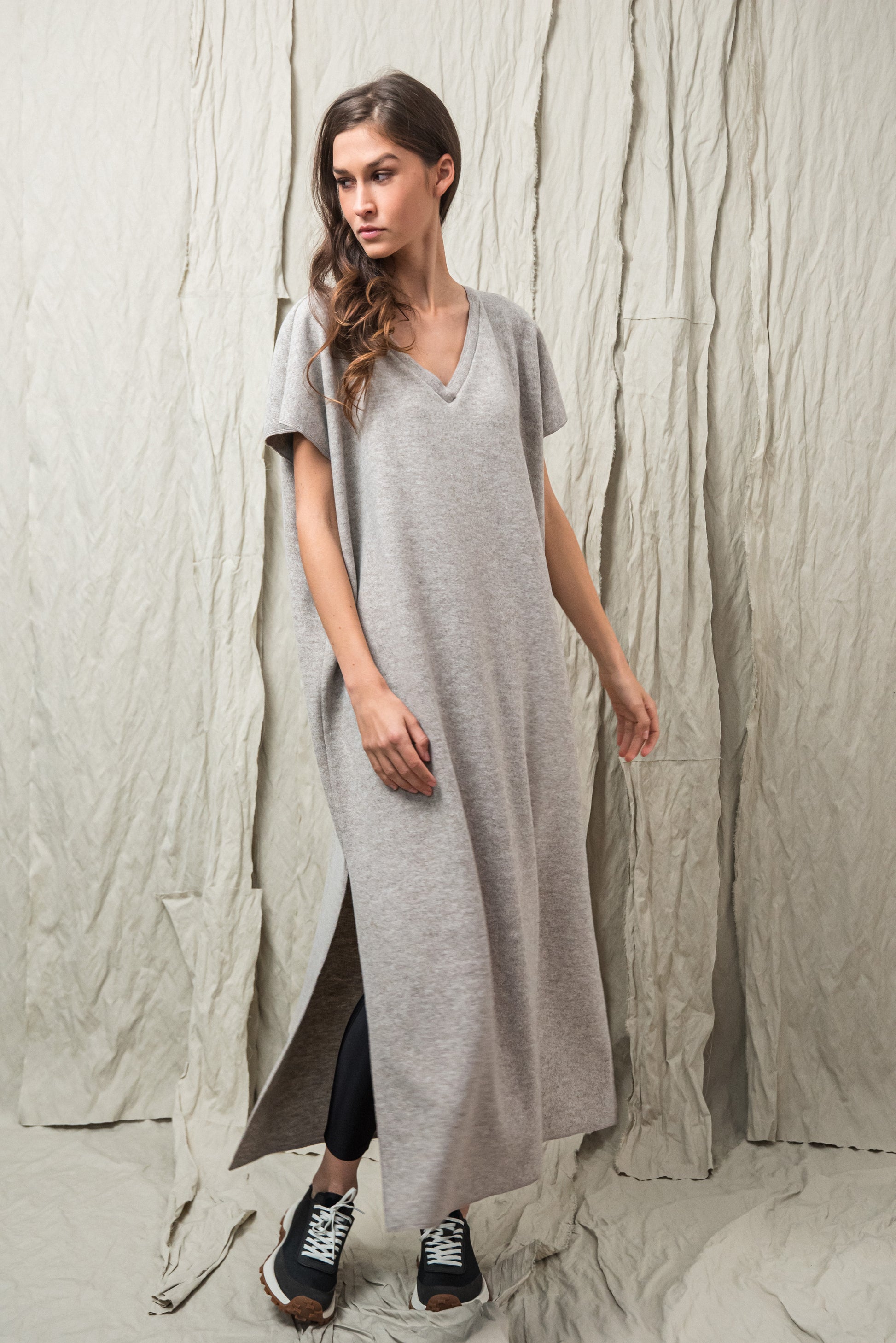 > AWA ruhánk tökéletes viselet, ami egyszerre egyszerű és karakteres. Laza, V‑nyakú fazonját oldalsó sliccek dobják fel, amelyek finom mozgásteret adnak a mindennapokhoz. Anyagából készült övvel a testkontúr rögtön kirajzolódik - de öv nélkül is viselhető. Anyaga puha, kényelmes - fazonja pedig időtlen eleganciát kölcsönöz. A mikrolock eldolgozás szép, letisztult vonalakat eredményez, így a ruhadarab egyszerre hat sportosan könnyednek és finoman nőiesnek. A NONPLUS filozófiáját tükrözve: ez a ruhadarab egyszerre természetes, fenntartható és hosszú távon hordható – a letisztult, mégis figyelemfelkeltő design jegyében.