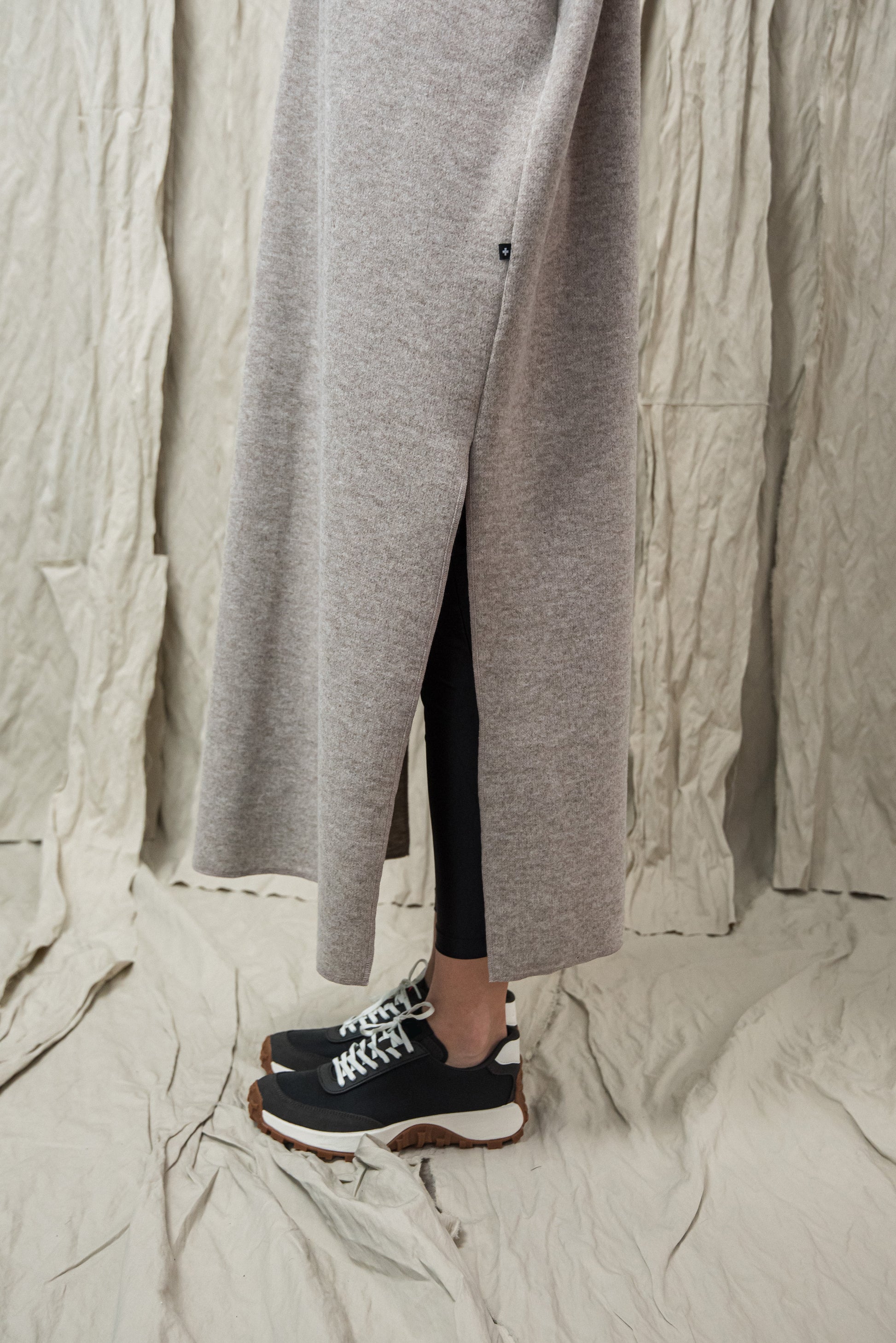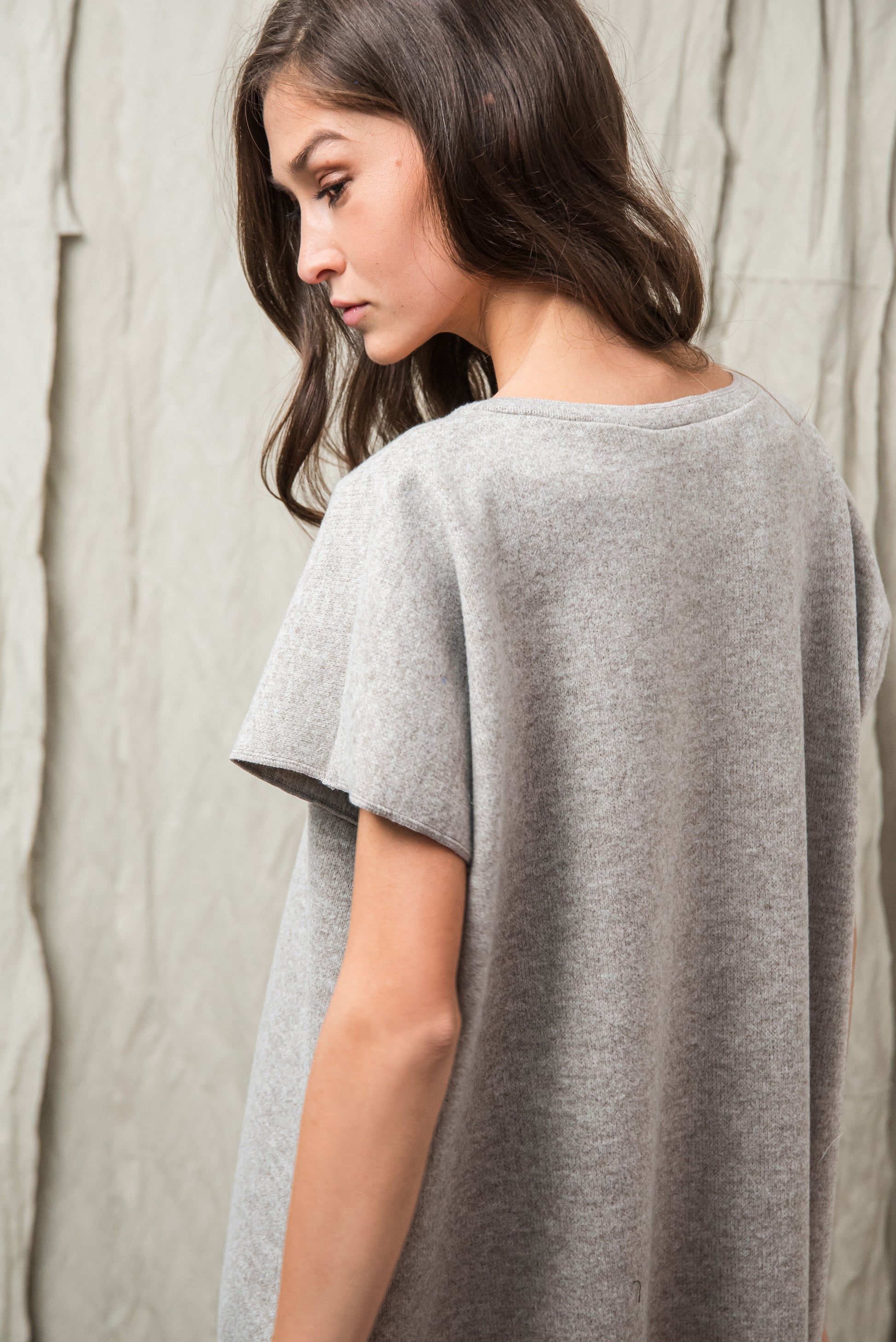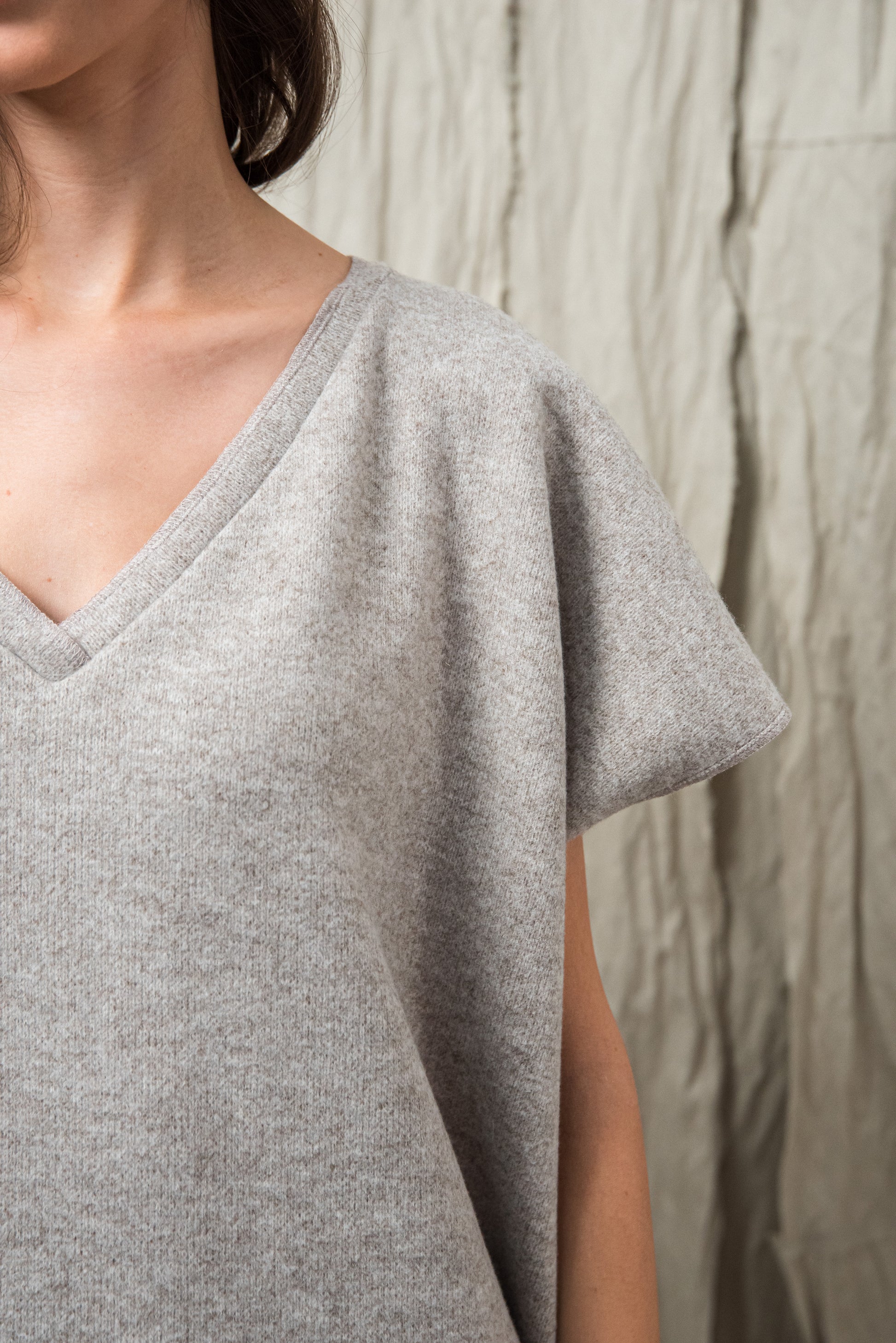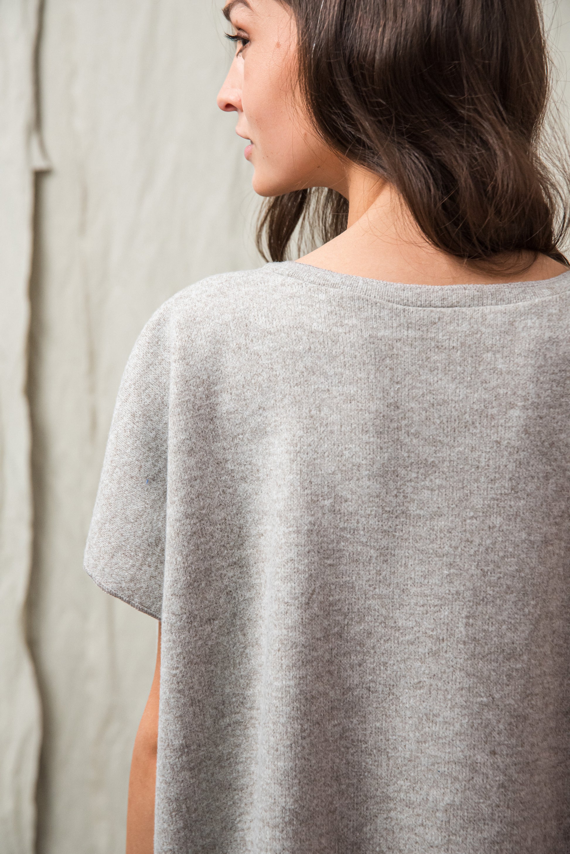 A közepesen vastag, puha kötött textúra természetes rugalmasságával finoman követi a mozdulatokat, miközben kellemes meleget ad. Felülete maximálisan puha, selymes tapintású, lágy esésű, és kíméletesen simul a bőrhöz — ez adja azt az azonnal érezhető komfortot, ami hidegebb napokon különösen jól esik. A szálak strukturált összefonódása stabilitást biztosít, mégis megtartja azt a bensőséges, otthonos puhaságot, amely a minőségi kötött anyagok sajátja. A természetes lágyságból adódóan a felület hordással finoman bolyhosodhat - ez a kötött kelmékre jellemző, teljesen normális folyamat, amely a mindennapi használat során alakul ki. Ha ilyet tapasztalsz, a kisebb göbök kézzel vagy kímélő bolyhosodás-eltávolítóval óvatosan eltávolíthatók, így az anyag sokáig megőrzi harmonikus, puha megjelenését és szépségét. A textúra melege, rugalmassága és puhasága együtt egy olyan anyagot eredményez, amely egyszerre megbízható, kényelmet adó és finoman ölelő érzetű — egy igazán kellemes társ a hűvösebb évszakok mindennapjaiban.