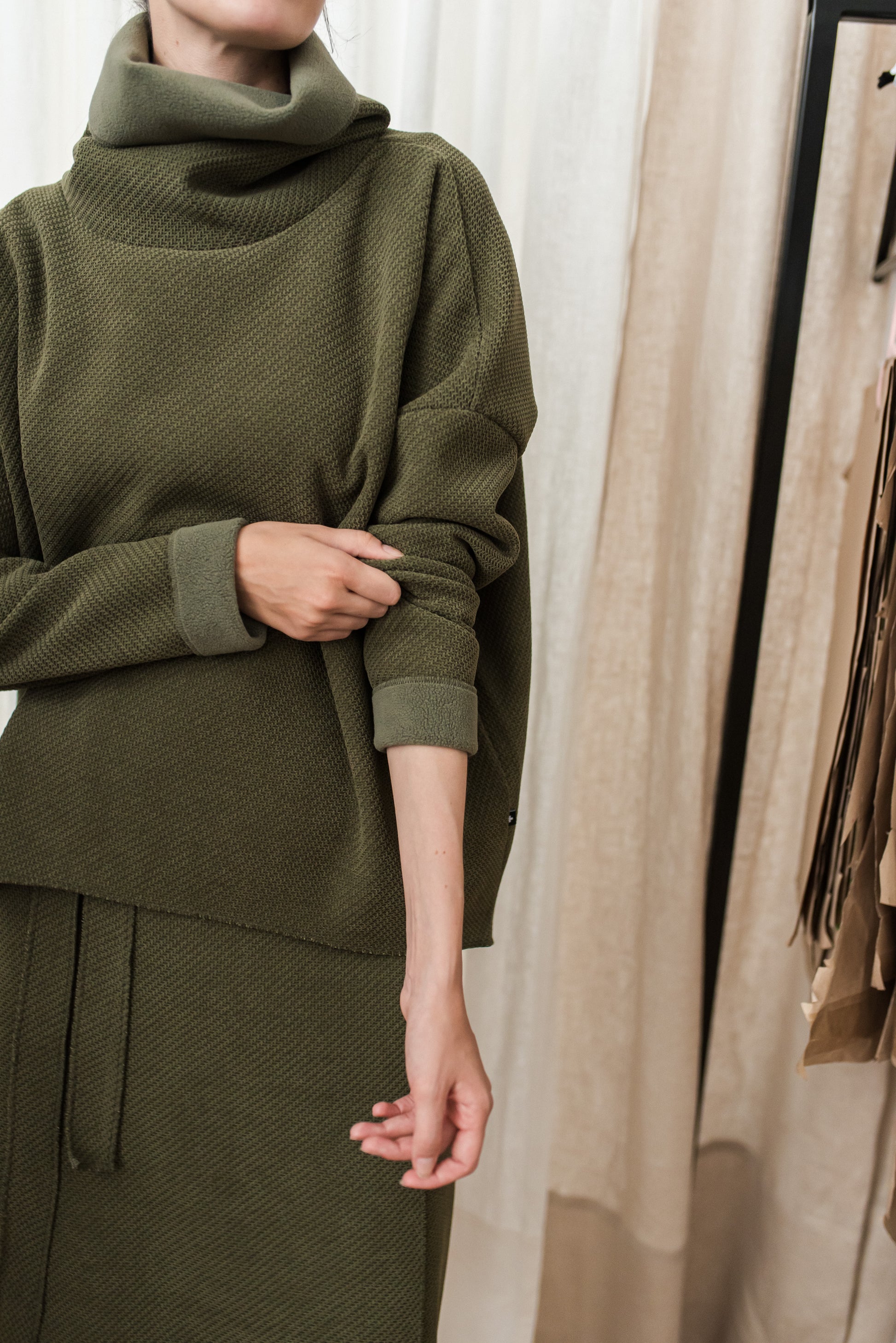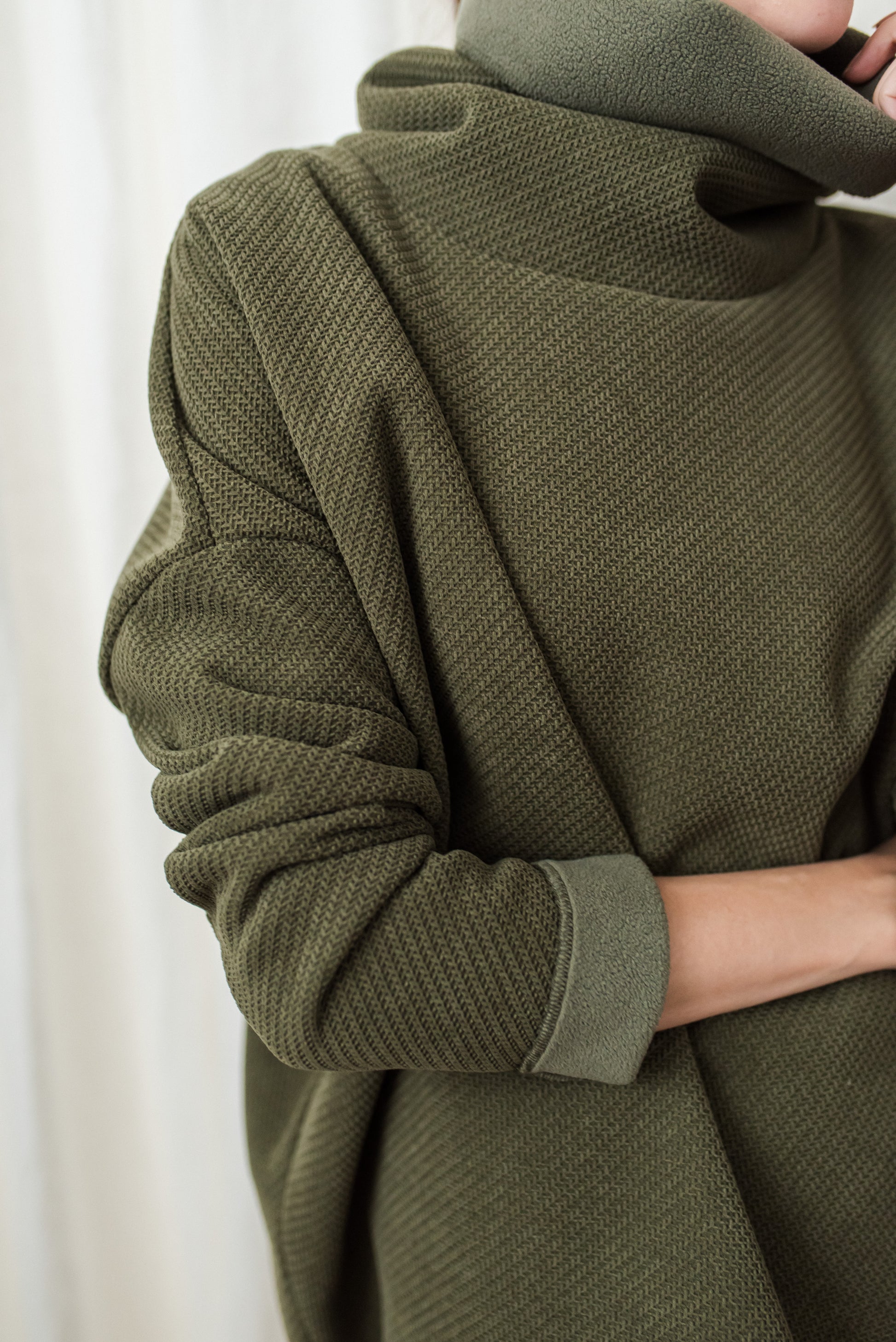 > Az AYA pulóver olyan, mintha mindig is a ruhatárad része lett volna – puha melegségével és kámzsás kialakításával azonnal otthonos érzést ad, bárhová is veszed fel. Letisztult vonalait a finom mikrolock eldolgozás teszi még természetesebbé, míg a prémium minőségű anyag – kívül elegáns, kötött hatású, belül pedig puha, meleg polar – egyszerre biztosít kényelmet és tartást a megjelenésednek. Kellően vastag ahhoz, hogy az őszi időszakban kabát helyett is melegen tartson, így még több helyzetben válhat kedvenceddé. Egy igazi jolly joker darab, amelyhez mindig jó érzés lesz visszanyúlni a hűvösebb napokon. Mert vannak ruhák, amelyek nemcsak divatosak, hanem hosszú éveken át a szívedhez nőnek.
