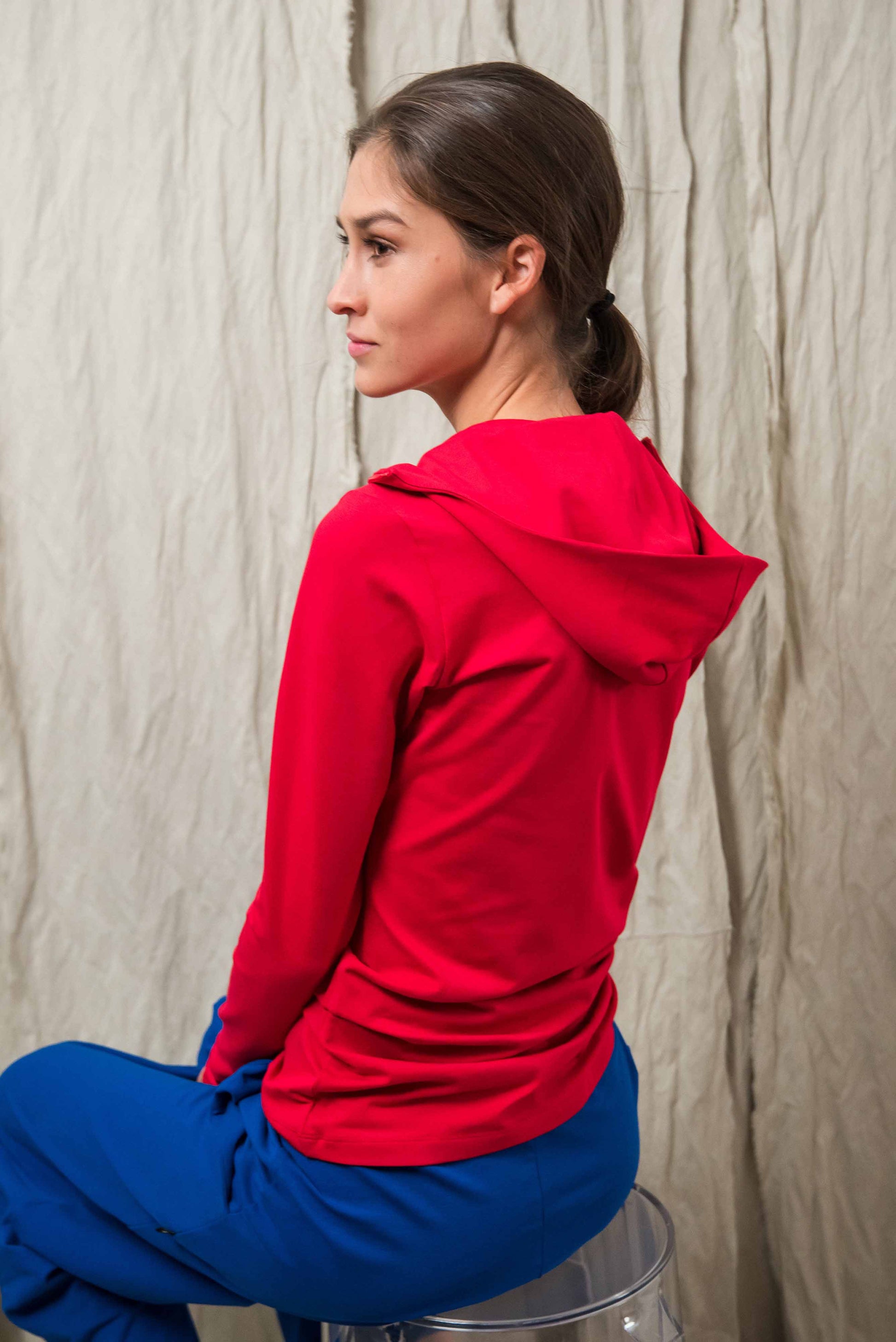 > A DORI felső akkor működik igazán, amikor egyszerre van szükséged biztonságérzetre, szabadságra és letisztultságra. Mellközépig rejtett zipzárja finoman szabályozza a nyitottságot, így könnyen alkalmazkodik a nap ritmusához és a hőérzetedhez. Kis méretű, dupla rétegű kapucnija nem dísz, hanem funkció: jelen van, amikor kell, mégsem nehezíti el az összképet. Testkövető szűk szabású, de nem szorít, ezért ideális választás aktívabb napokra vagy hosszú, mozgásban töltött órákra. A NONPLUS szemléletének megfelelően időtálló fazon és tudatos anyaghasználat találkozik benne, hogy ne kelljen szezononként újragondolnod a ruhatárad. Ez a felső megoldást ad arra a helyzetre, amikor kényelmes, mégis rendezett megjelenést szeretnél. A DORI felső egy csendes alapdarab, ami nem akar több lenni és pont ettől válik igazán szerethető darabbá.