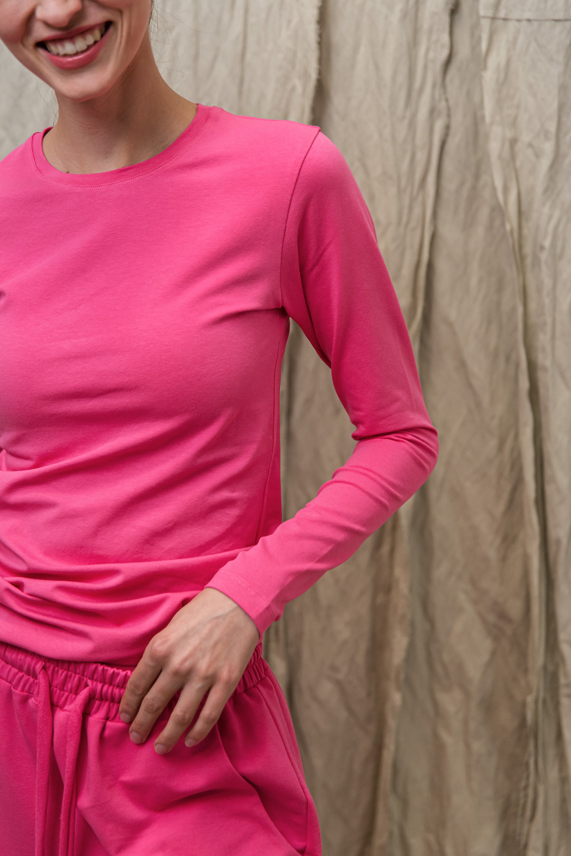 > GOSU póló - a tudatos ruhatár alapja egy tökéletesen szabott, fenntartható alapdarab – ez a hosszú ujjú felső pontosan ezt adja meg. Letisztult, testhez simuló fazonja finoman követi az alakot, miközben puha, rugalmas anyaga egész napos komfortot biztosít, akár aktív programokhoz, akár nyugodtabb pillanatokhoz választod. A kerek nyakkivágás és az időtálló sziluett sokoldalúan kombinálhatóvá teszi: önállóan viselve karakteres, rétegezve pedig stabil alapja a tudatosan felépített gardróbnak. Légáteresztő, bőrbarát textíliája felelős döntés, amely a minőségi kivitelezésnek köszönhetően hosszú távon is megőrzi formáját és élénk színét. Ez a darab megoldást kínál a „nincs mit felvennem” helyzetekre: egyszerre sportos, nőies és minimalista. A friss pink árnyalat energiát és önbizalmat sugároz, miközben harmonikusan illeszkedik a NONPLUS letisztult szemléletéhez. Ha számodra a funkcionalitás és a fenntarthatóság nem kompromisszum, hanem alapérték, ez a felső méltó helyet kap a gardróbodban. Válaszd azt a minőséget, amely nemcsak öltöztet, hanem hosszú távon is kísér.