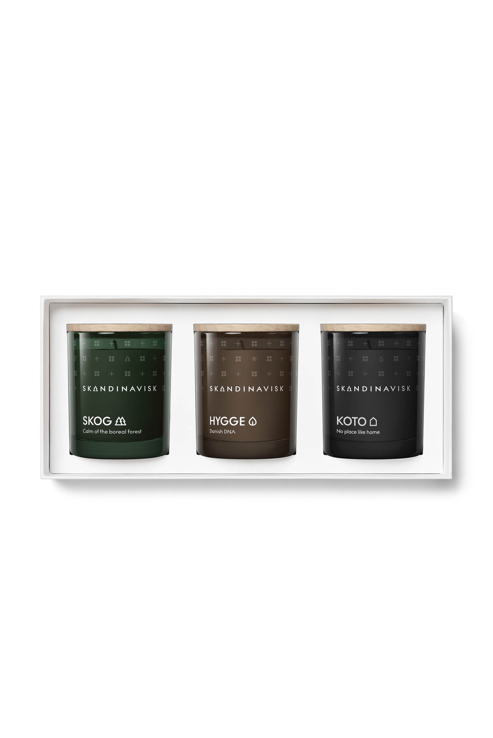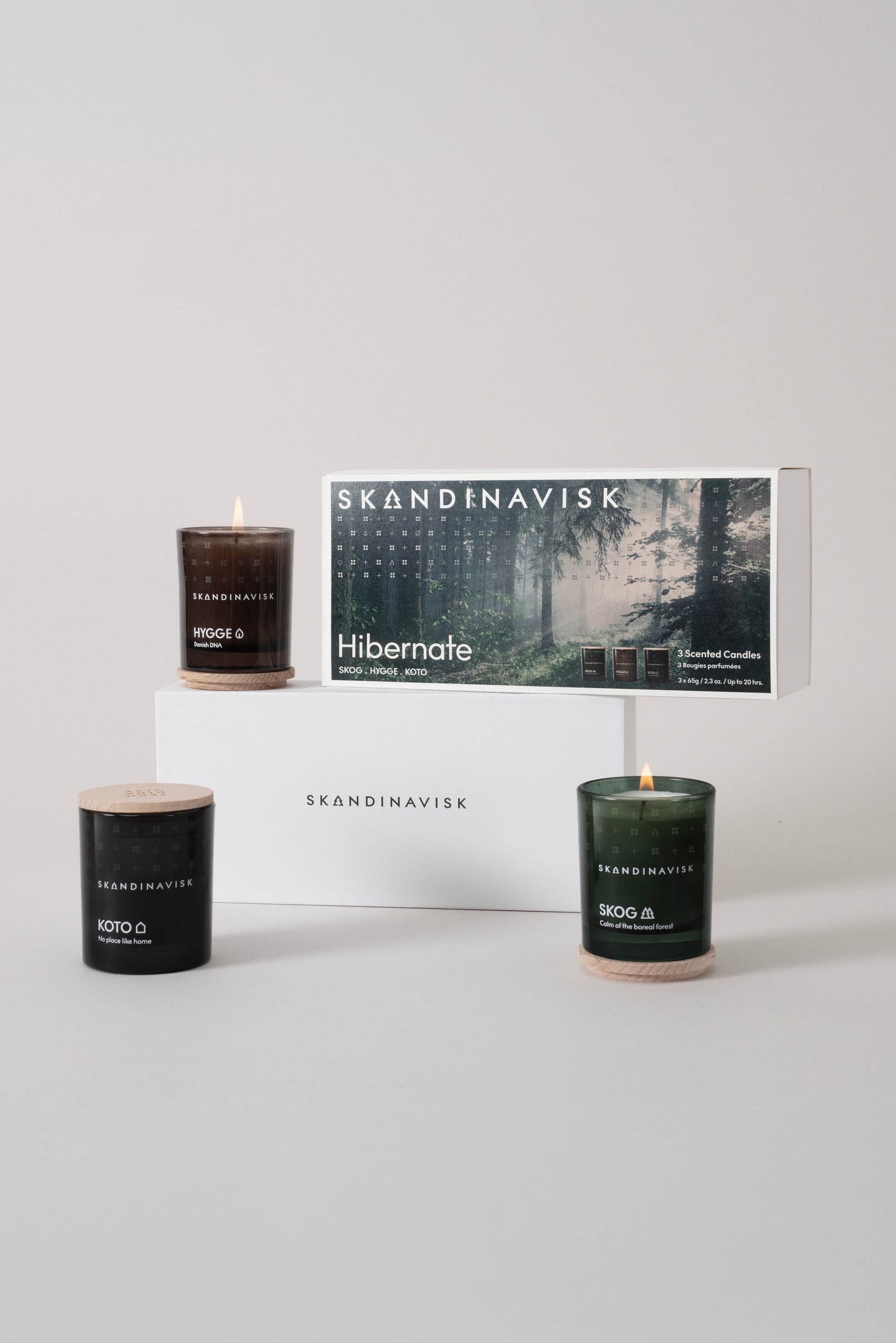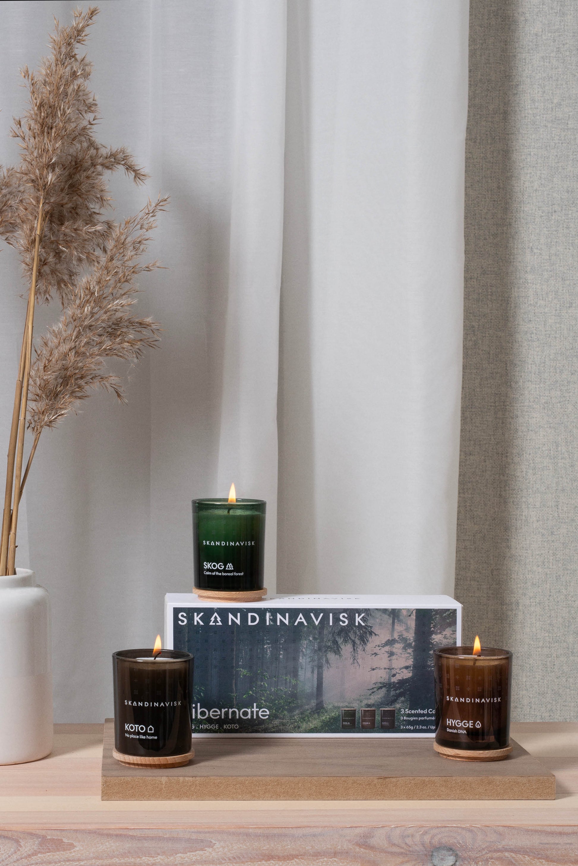 Téli álomra hívunk – az erdőbe, az otthonodba, a meghitt nyugalomba. Ez az ajándékszett három miniatűr illatgyertyát tartalmaz, melyek svéd repceviaszból készültek, FSC-tanúsítvánnyal rendelkező bükkfa tetővel. Az új, továbbfejlesztett díszdoboz szintén FSC-minősítésű, és úgy tervezték, hogy a gyertyák elhasználása után újra felhasználható legyen.