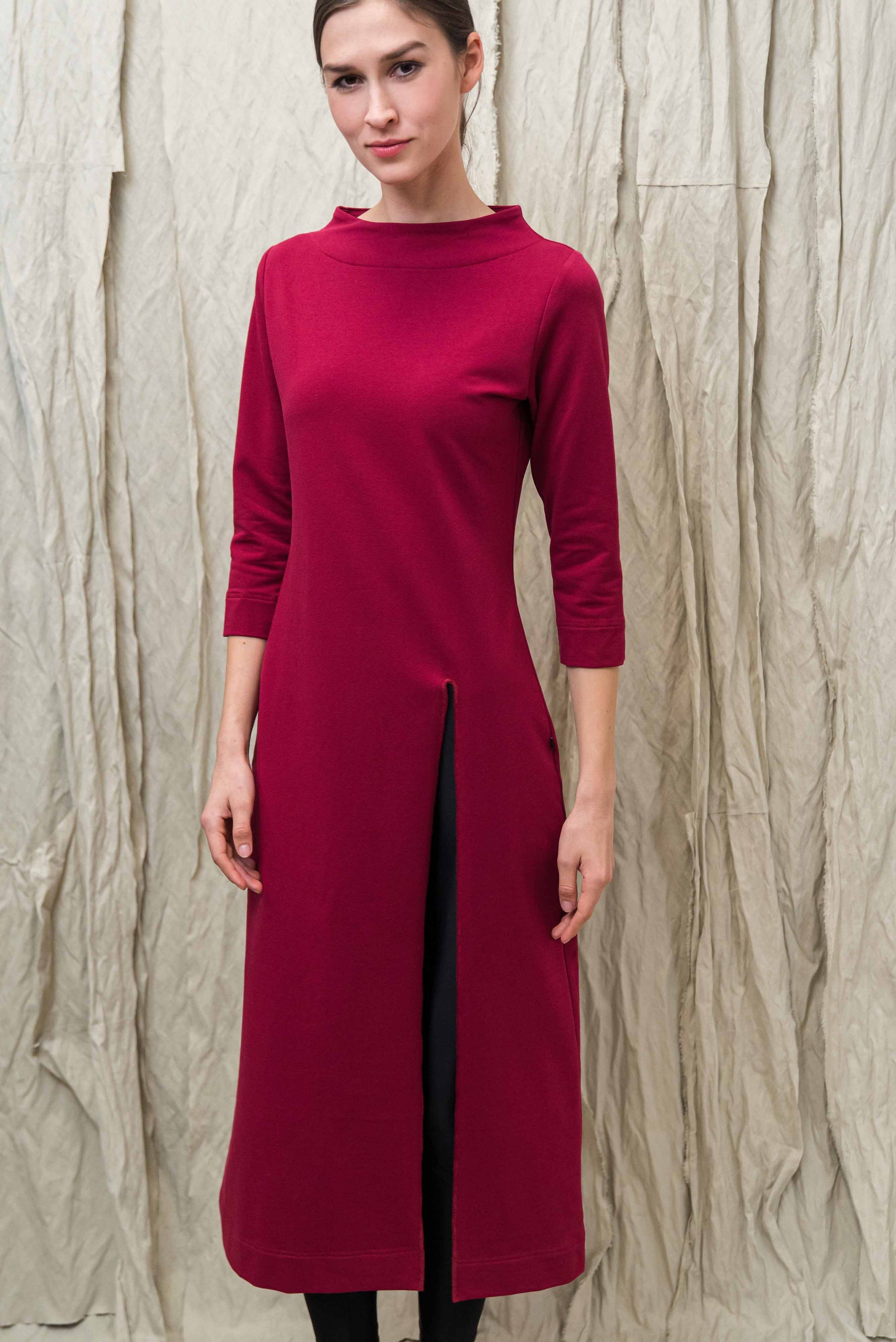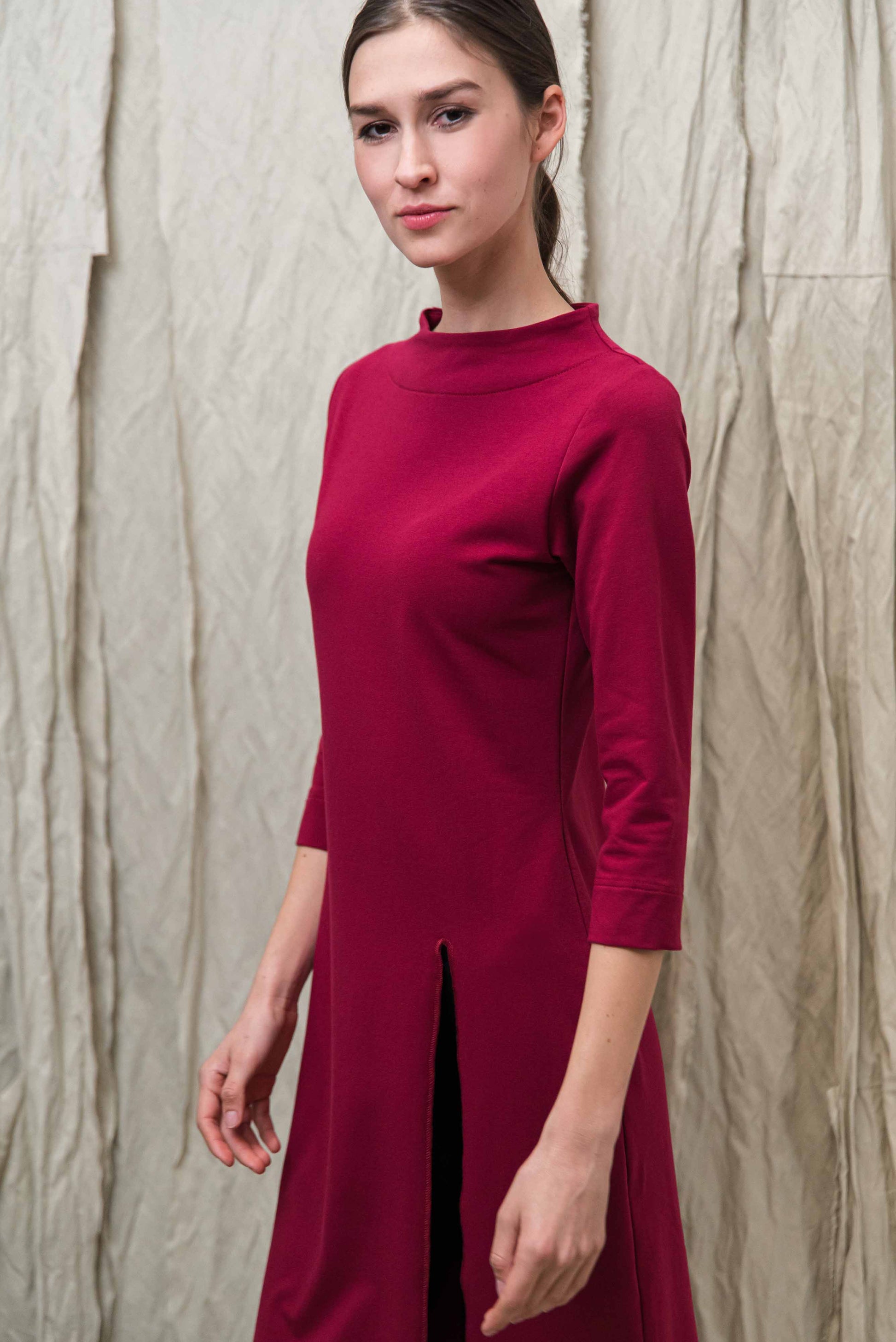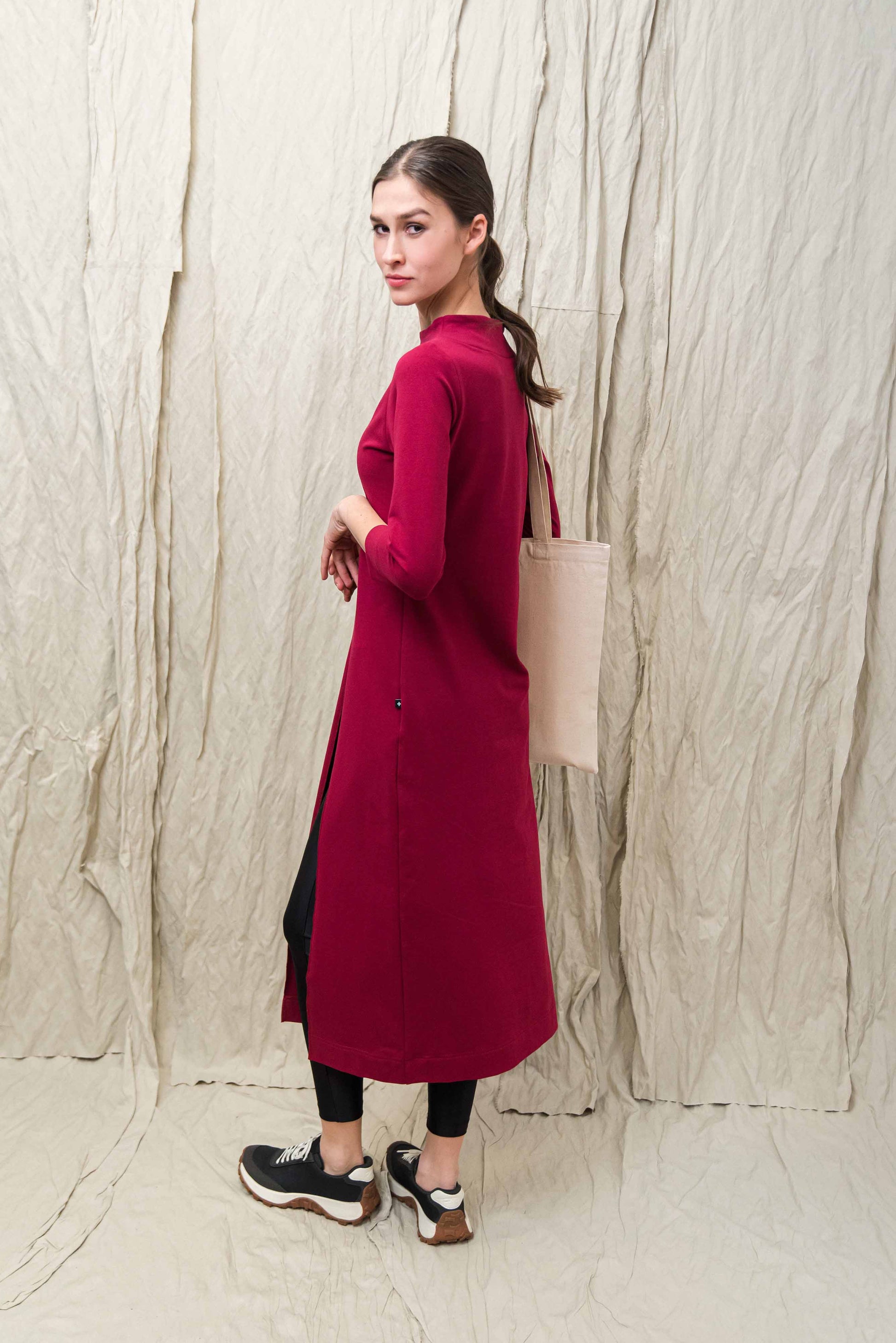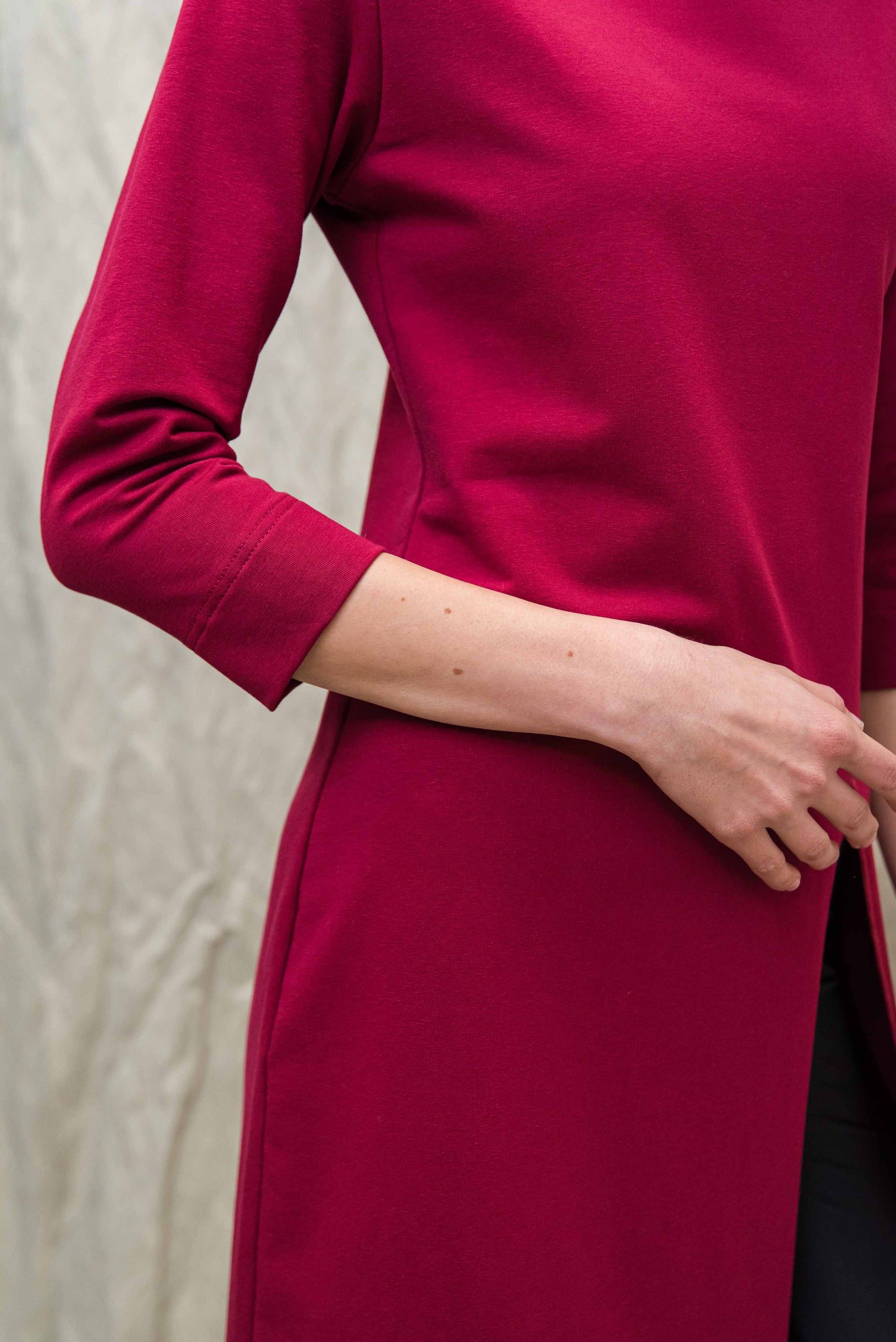 > A MIE ruha a tudatos nő gardróbjának karakteres alapdarabja: letisztult forma, erőteljes szín és funkcionális részletek tökéletes egyensúlya. A 3/4-es ujj és a finoman álló nyakrész időtálló eleganciát sugall, miközben a lefelé bővülő szabás szabad mozgást és egész napos komfortot biztosít. Az elöl, bal oldalon elhelyezett hasíték nemcsak vizuálisan nyújtja az alakot, hanem könnyedséget és dinamikát ad a megjelenésnek – rétegezve nadrággal vagy leggingsszel is harmonikusan működik. Puha, minőségi alapanyaga kellemes tapintású, bőrbarát és tartós, így a fenntartható gardrób megbízható darabja lehet. Ez a fazon megoldást kínál a „mit vegyek fel, hogy egyszerre legyek kényelmes és stílusos?” dilemmára, hiszen egyetlen mozdulattal komplett, modern szettet teremt. Sportcipővel lazább, letisztult kiegészítőkkel elegánsabb irányba formálható – alkalmazkodik a napirendedhez. Ha olyan ruhát keresel, amely minimalista eszközökkel is határozott jelenlétet ad, a MIE ruha benned teljesedik ki igazán.