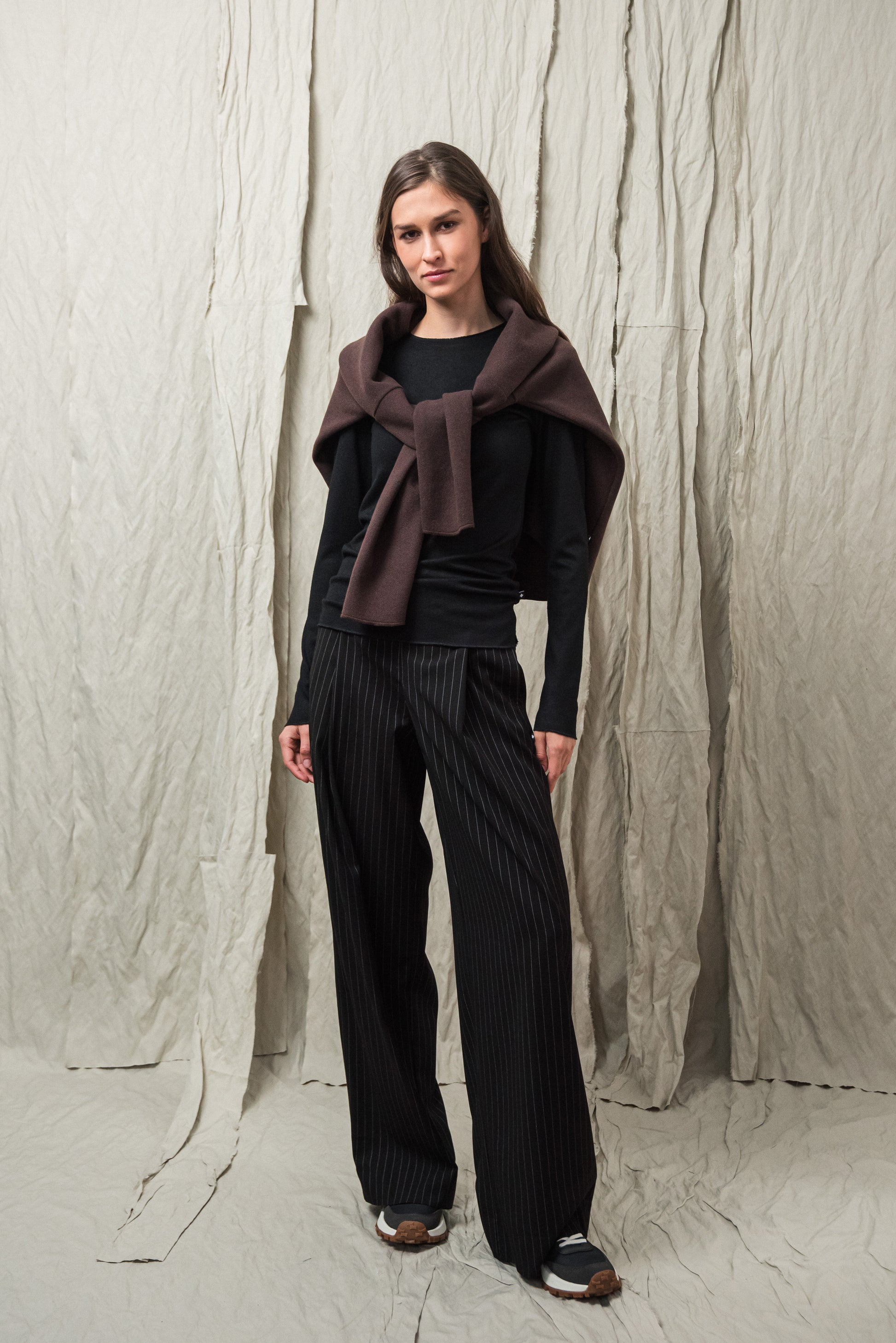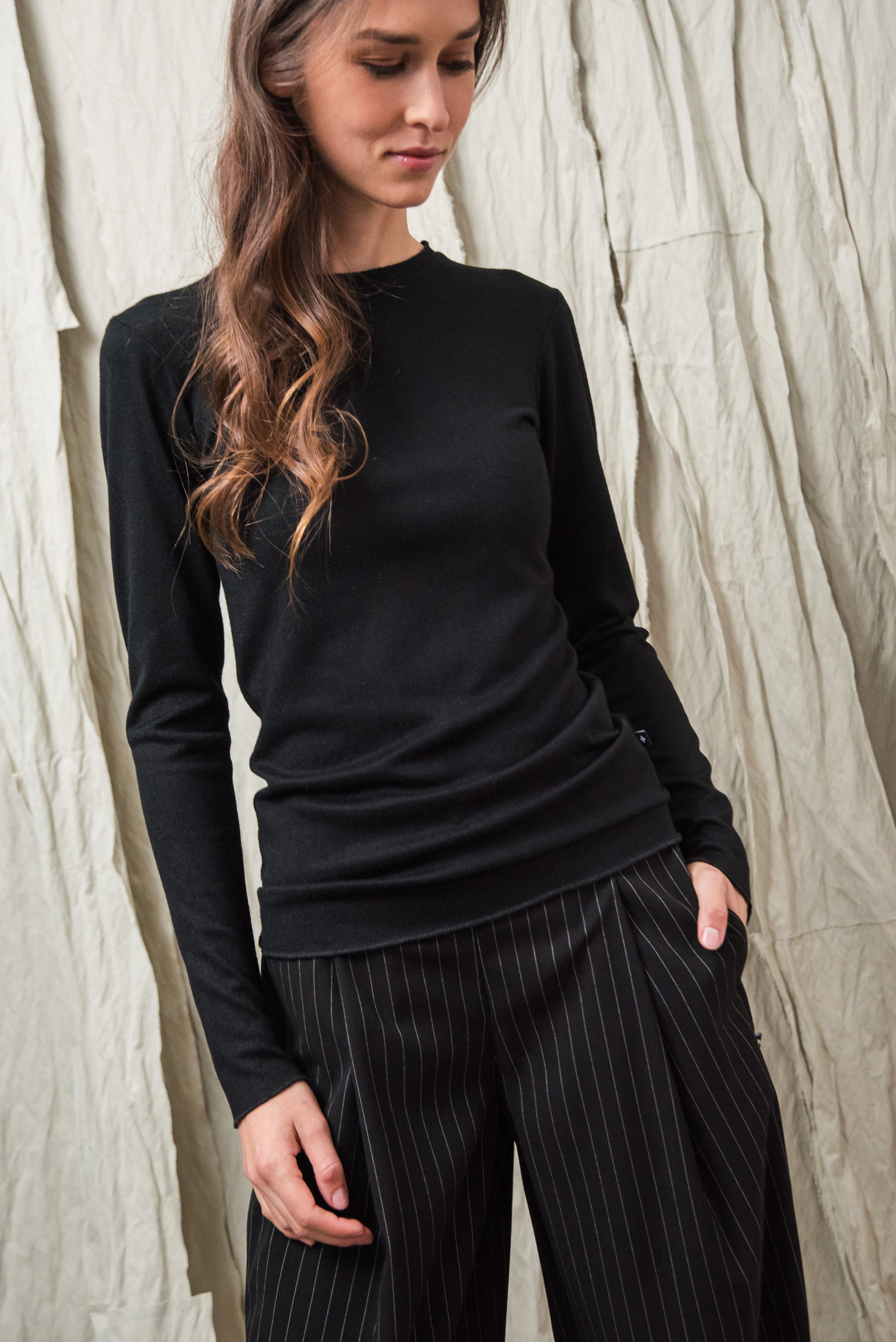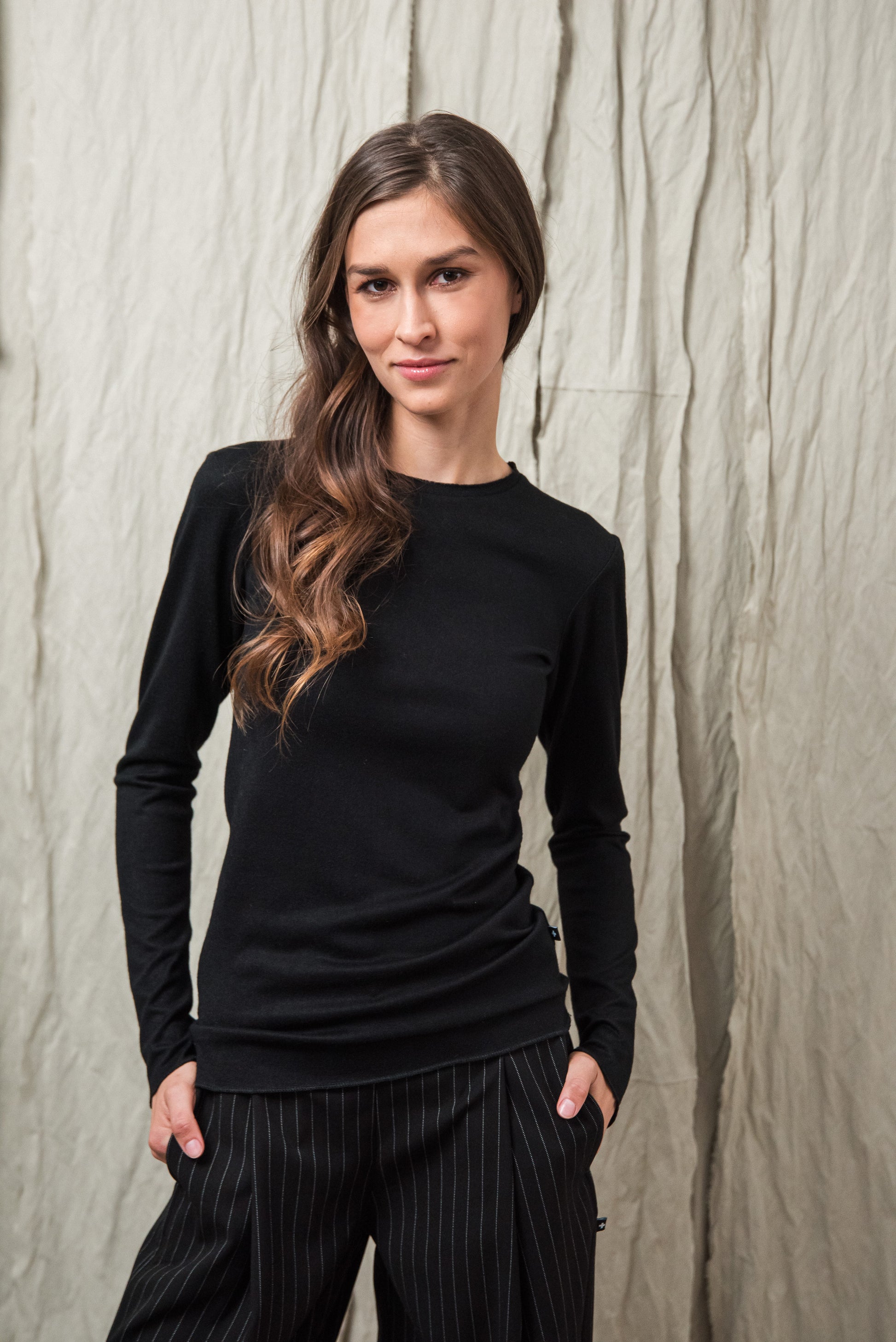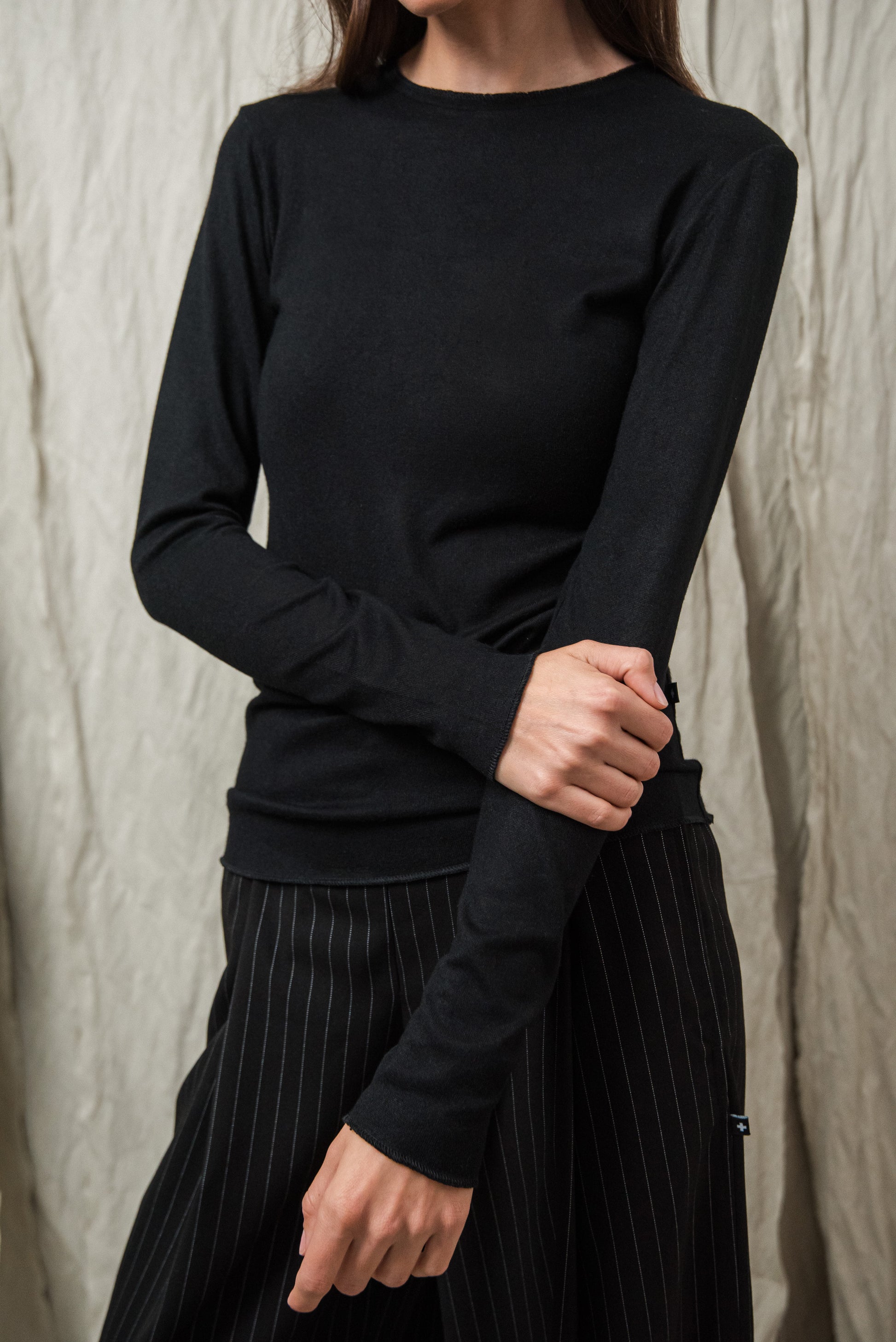 Puha, kötött rayon keverék alapanyagunk selymes tapintásával gyengéden simul a bőrhöz. Közepesen vékony, mégis van tartása - az anyag szerkezete szépen engedi érvényesülni a fazonok vonalait, miközben a kötött anyag természetes rugalmassága extra komfortot ad. Légáteresztő textúrája miatt egész napos viselésre is kényelmes, így minden darabunk könnyed érzetet és letisztult eleganciát kínál. Ennek a gondosan válogatott alapanyagnak köszönhetően az ebből készült modellek egyszerre praktikusak, kényelmesek és esztétikailag kifinomultak.