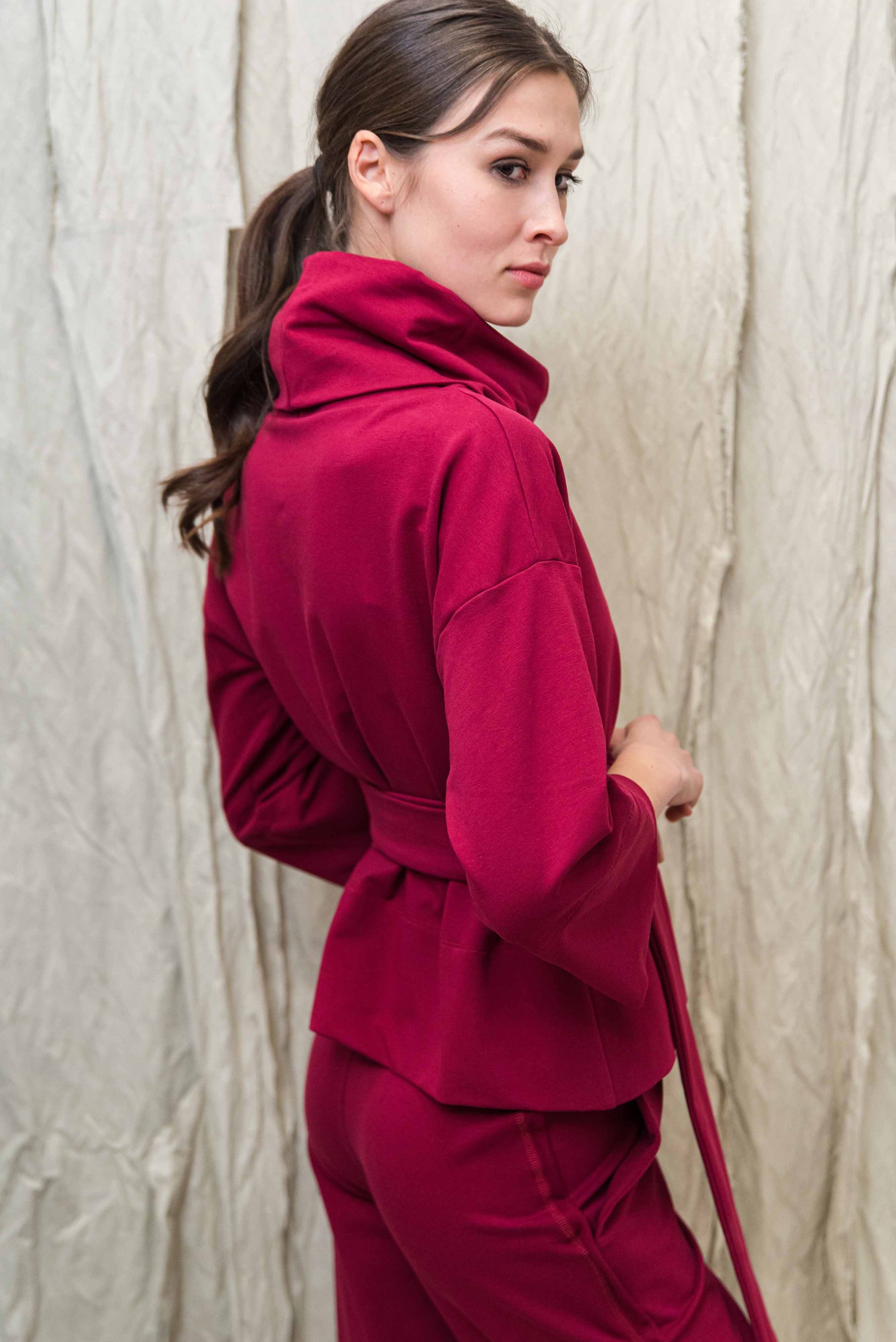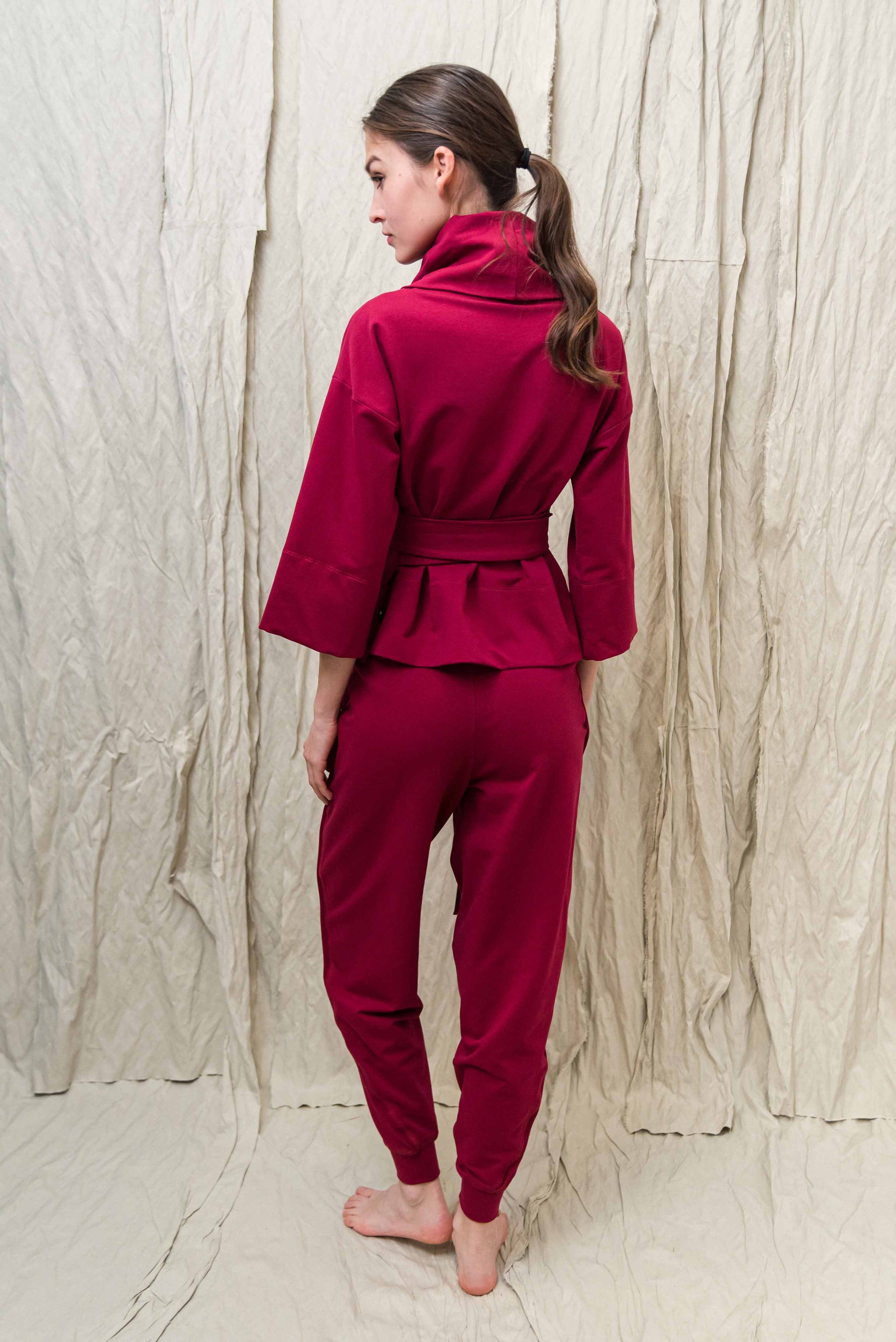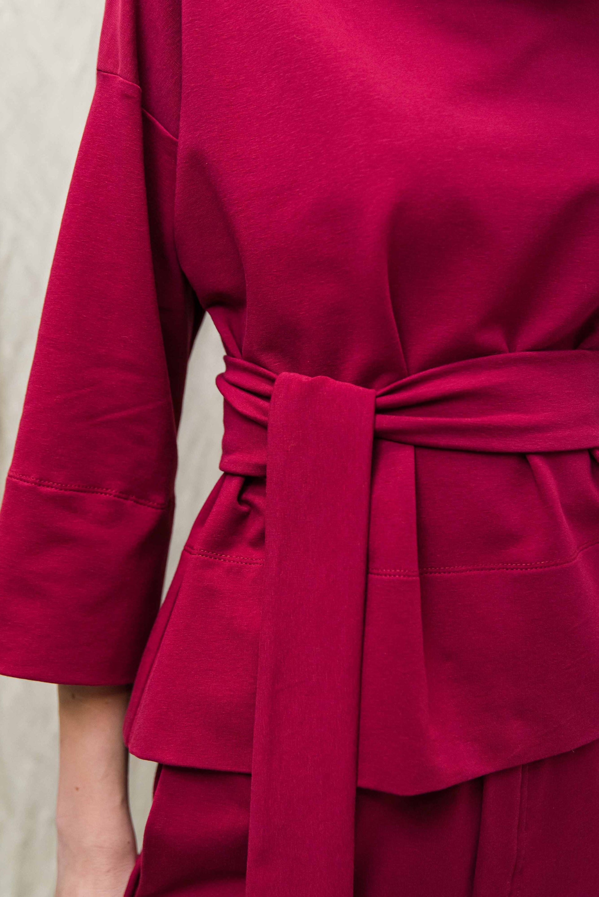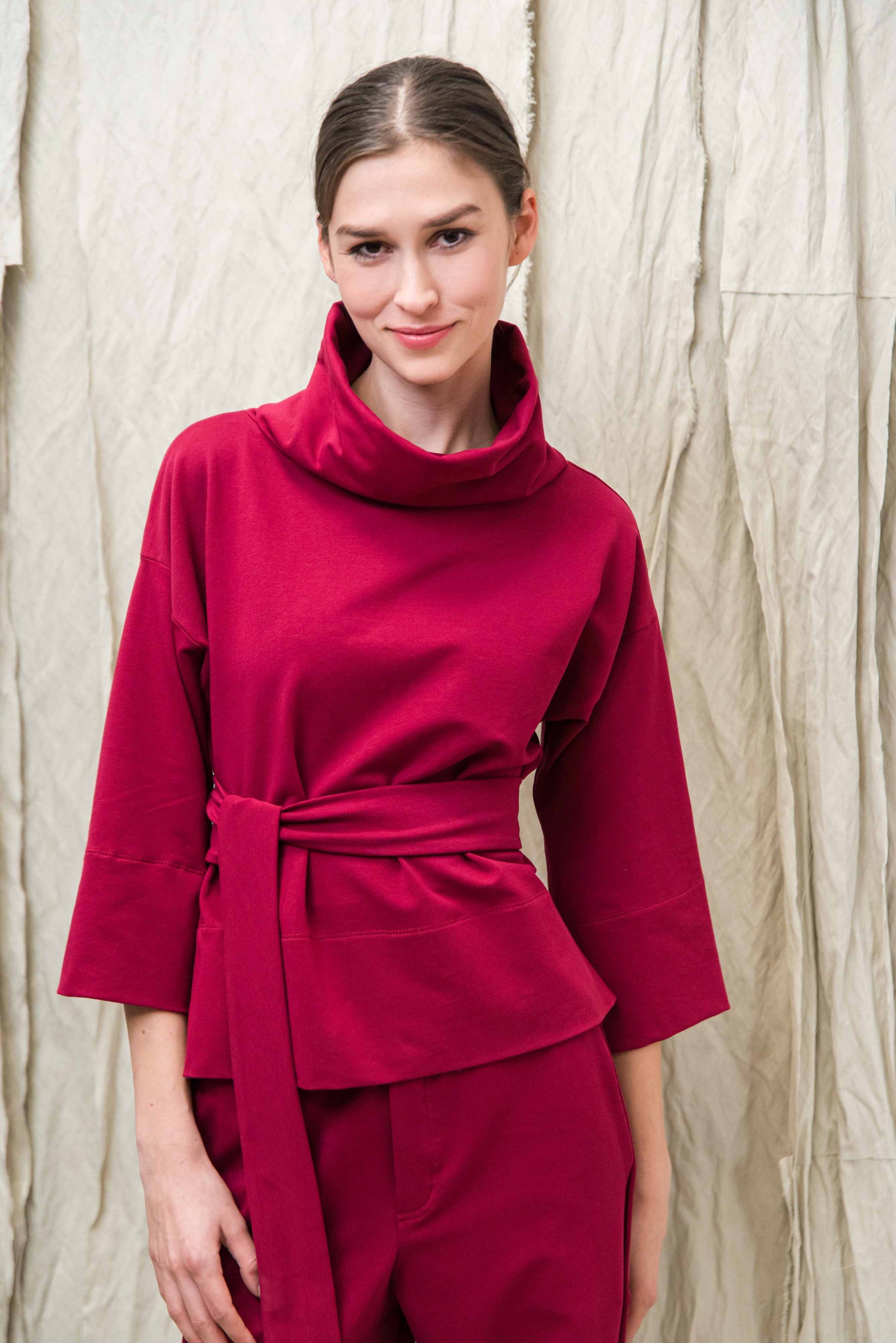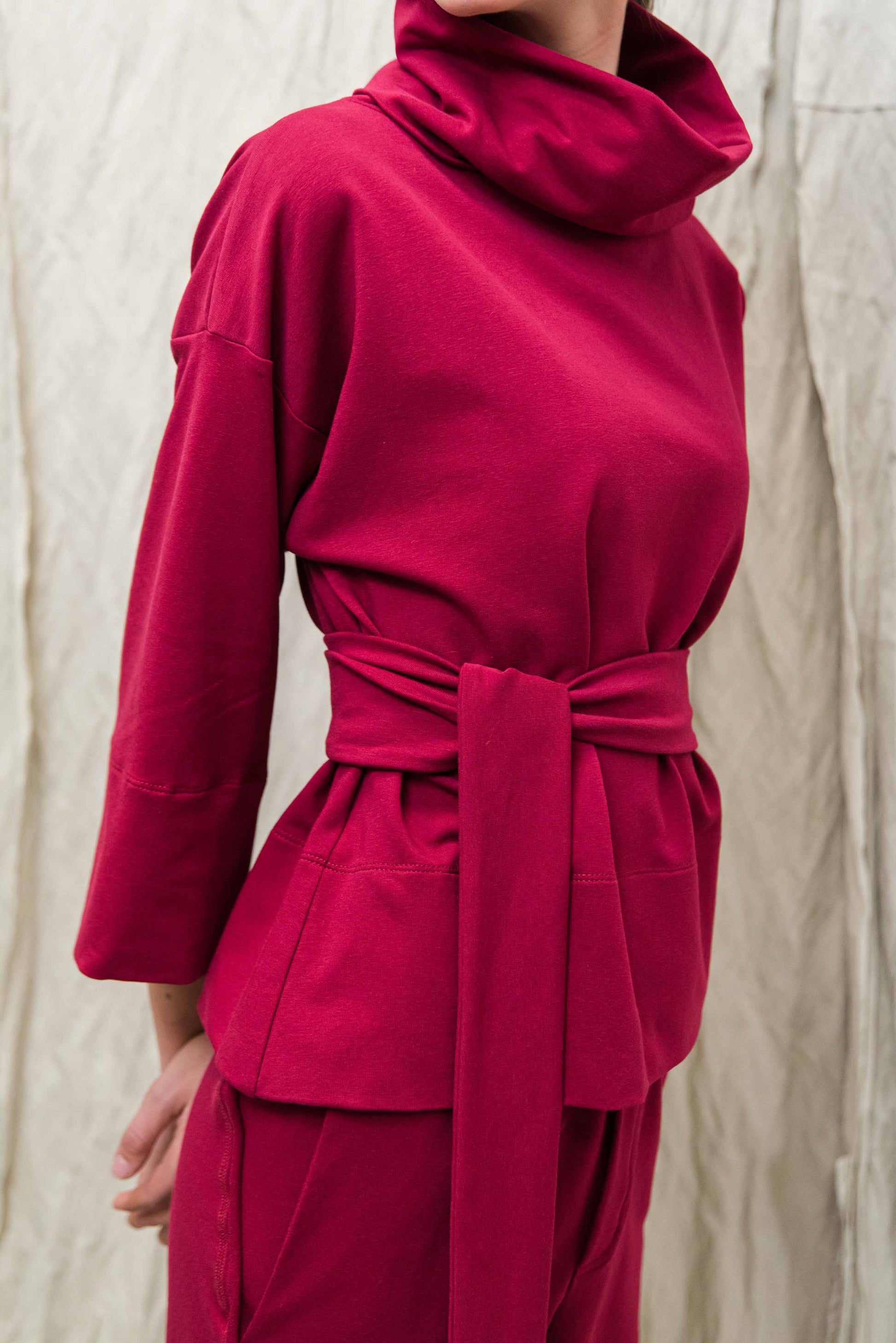 > MONA felsőnk kámzsás, 3/4-es ujjú, lefelé enyhén bővülő fazon. Megkötője egy oldalról indul, melyek magunkon körbe tekerve és az egyik oldalon magán az övön átkötve rögzíthetünk. Sportosan elegáns fazon, puha pamut anyagának köszönhetően egész nap kényelmes viseletet biztosít. TAMA ruhánk rövidített, felső változata, mely az egyik legkedveltebb fazonunk évek óta.