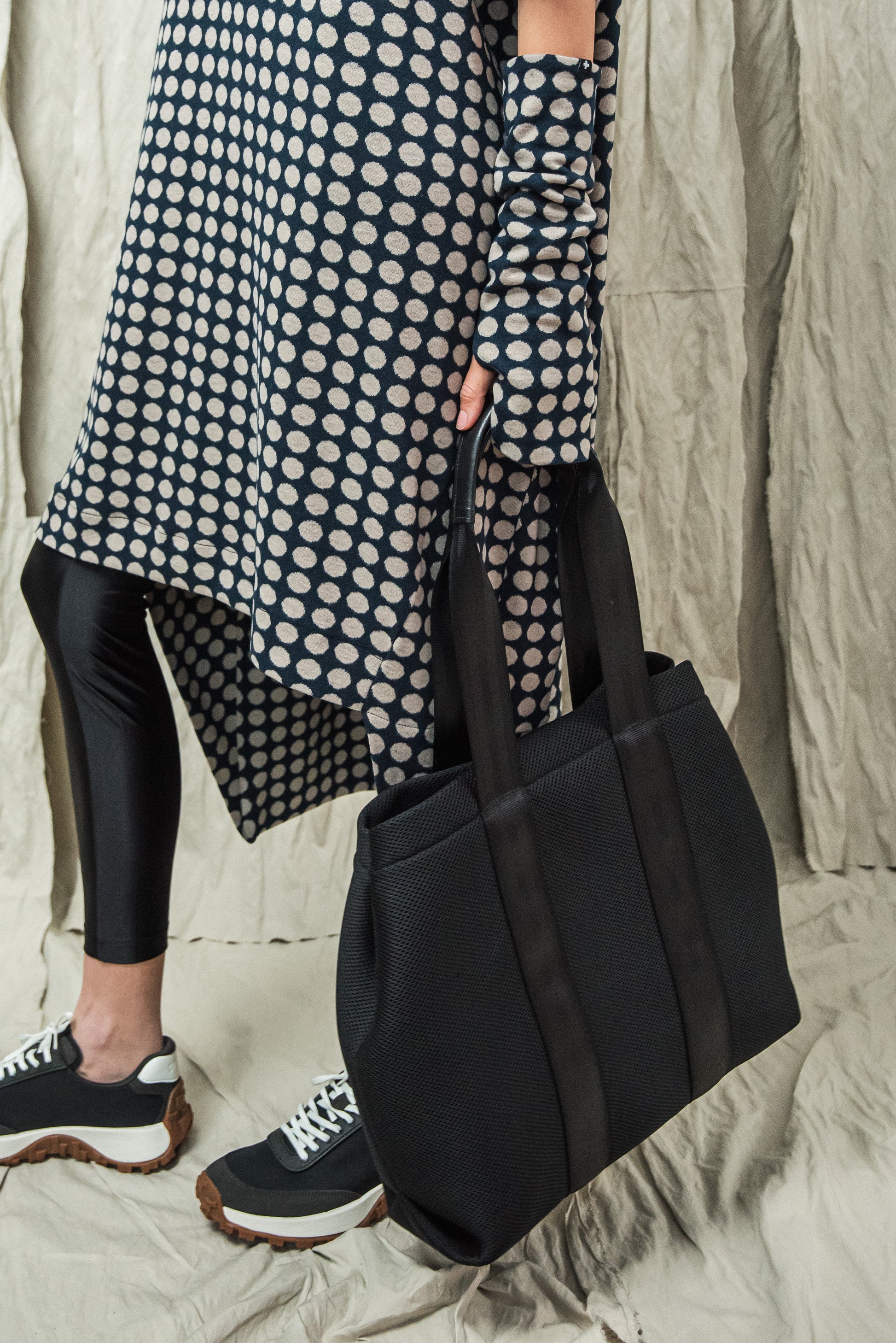 > NAAL nagyméretű shopper táska - amely tökéletes társad a hétköznapi rohanásban. Praktikus, rengeteg minden belefér, viheted edzésre, bevásárláshoz, vagy akár egy hétvégi kiruccanásra. Oldalsó patentokkal kisebb méretre alakítható. Belül található egy zippzáros zseb, melynek mérete: 22x22cm.