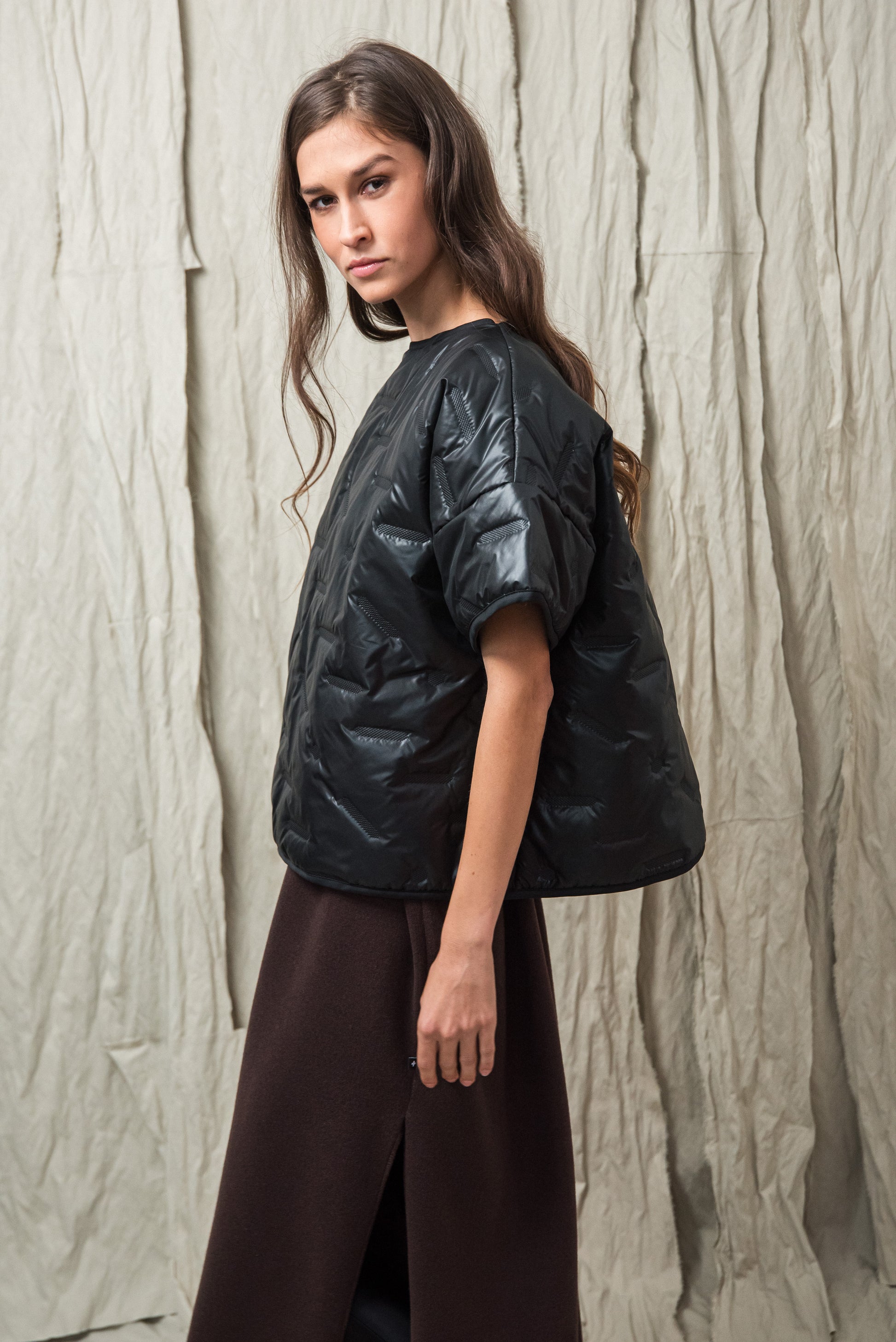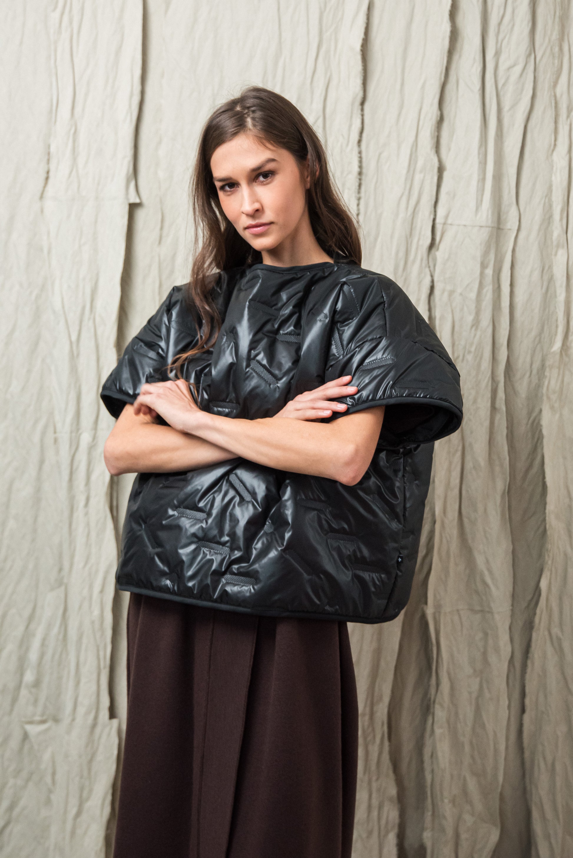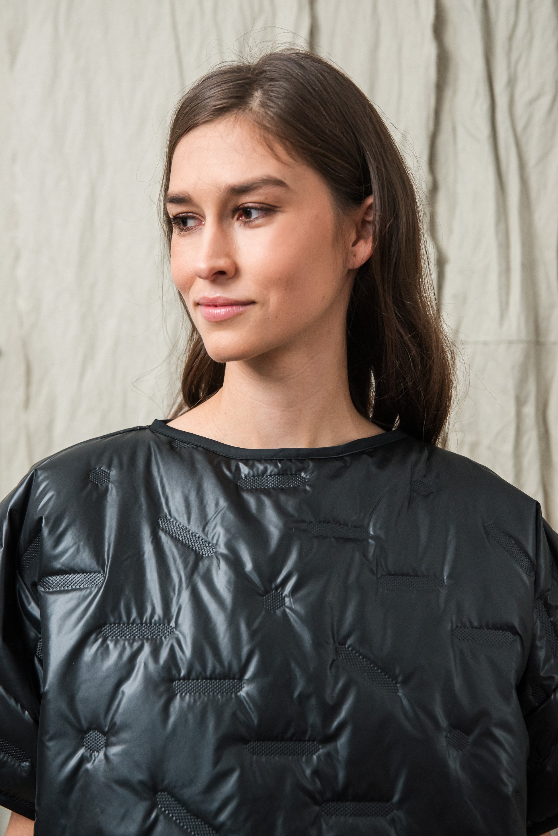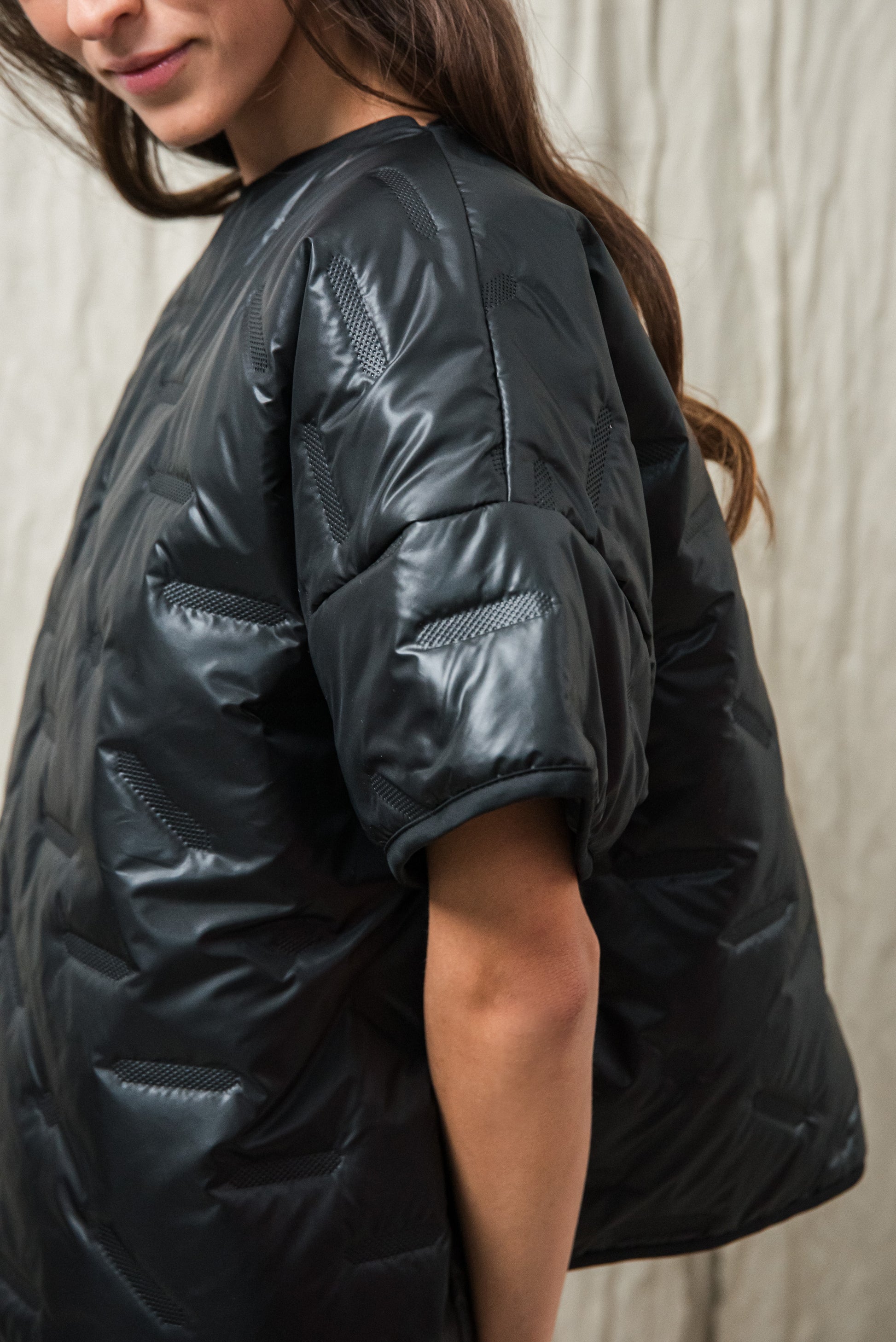 > A NAT dzseki a minimalizmus lényegét ragadja meg: egyszerű szabása és kerek nyakkivágása könnyed, funkcionális rétegként helyezkedik el a ruhatárban. Kiváló választás az átmeneti időszakokra vagy olyan alkalmakra, amikor gyorsan felvehető, praktikus viseletre van szükség – például autózás közben vagy hűvösebb beltéri terekben. Az anyag finoman csillanó, steppelt felülete egyedi karaktert ad a darabnak, miközben megőrzi a letisztult, időtálló formanyelvet. Így a NAT dzseki a tudatos, fenntartható öltözködés elegáns megtestesítője.