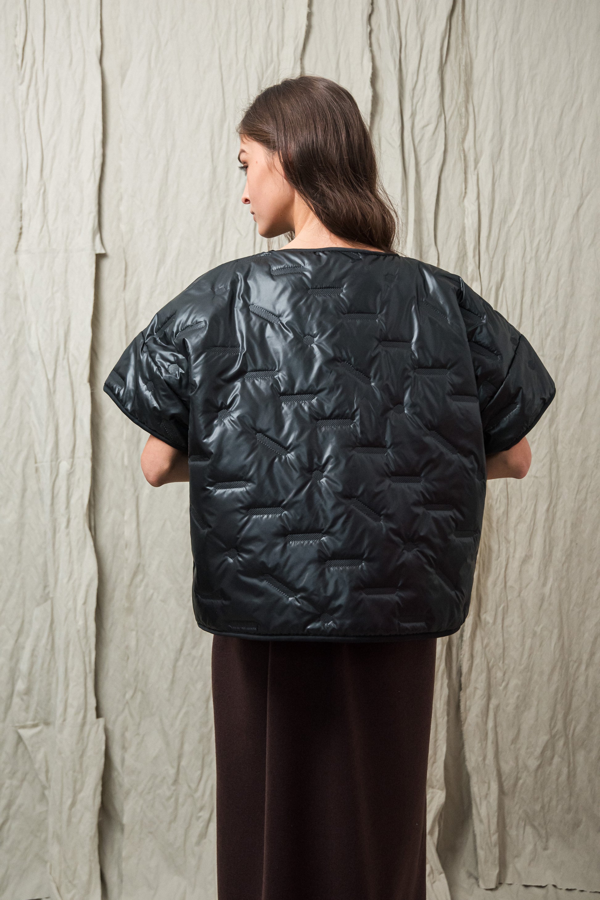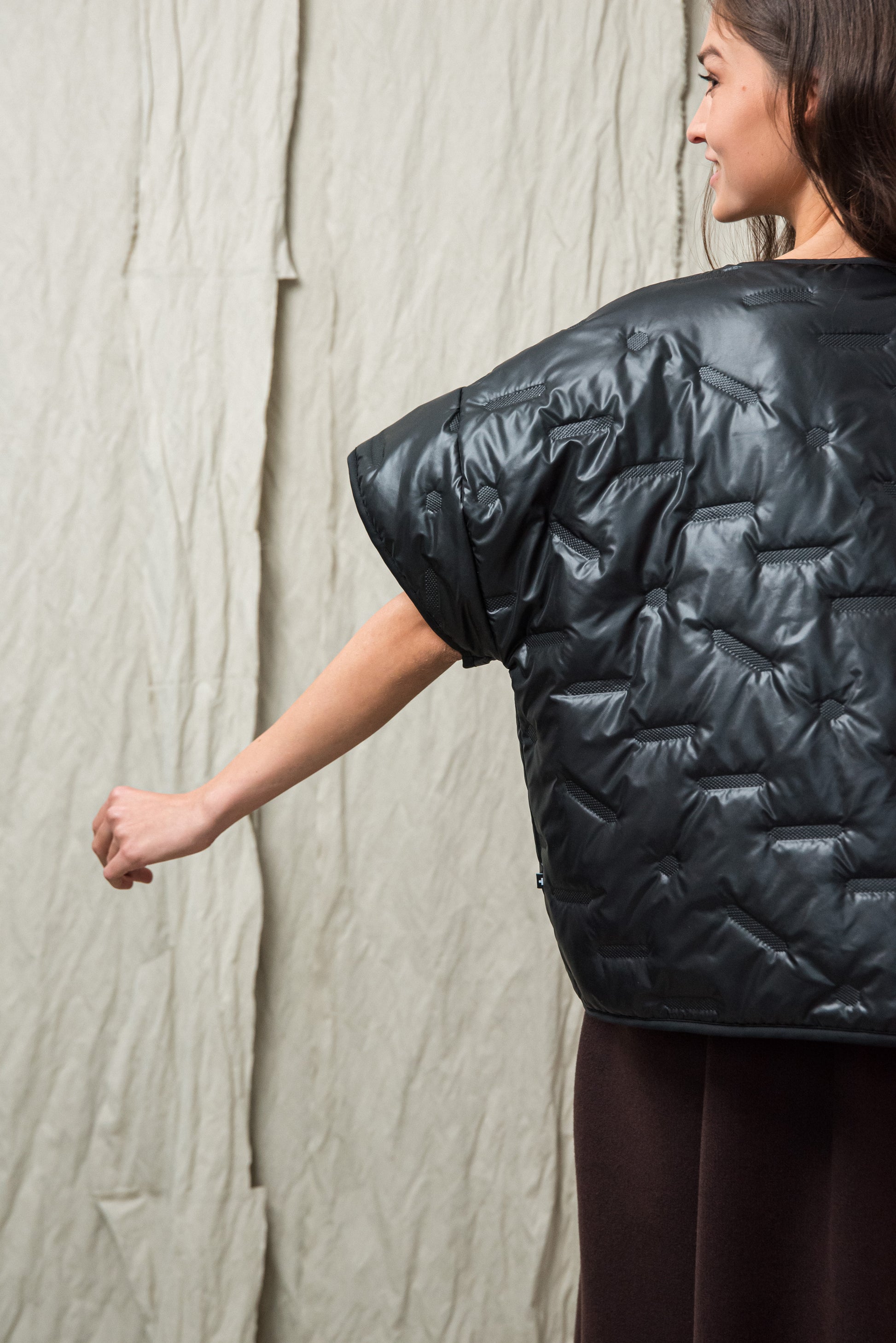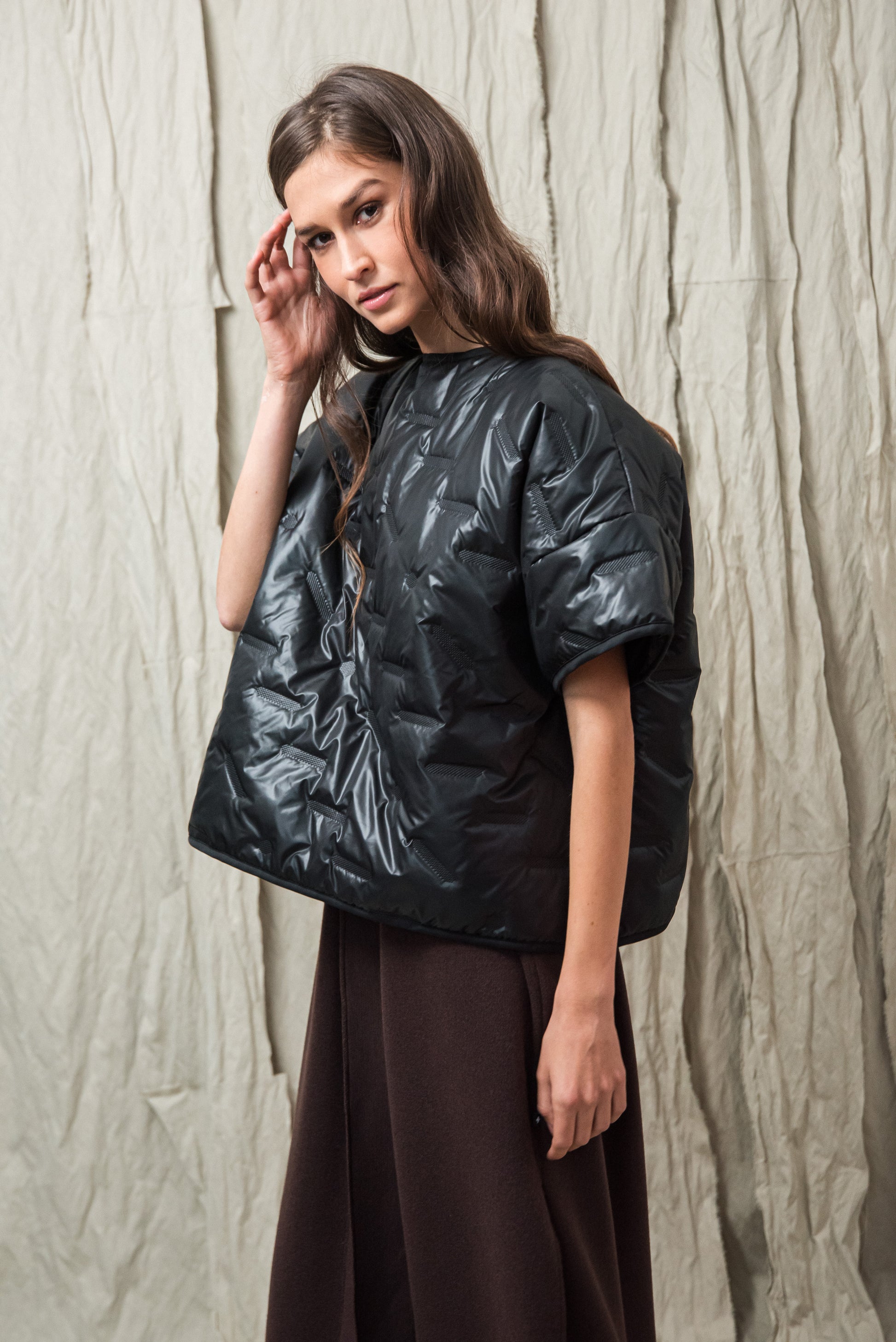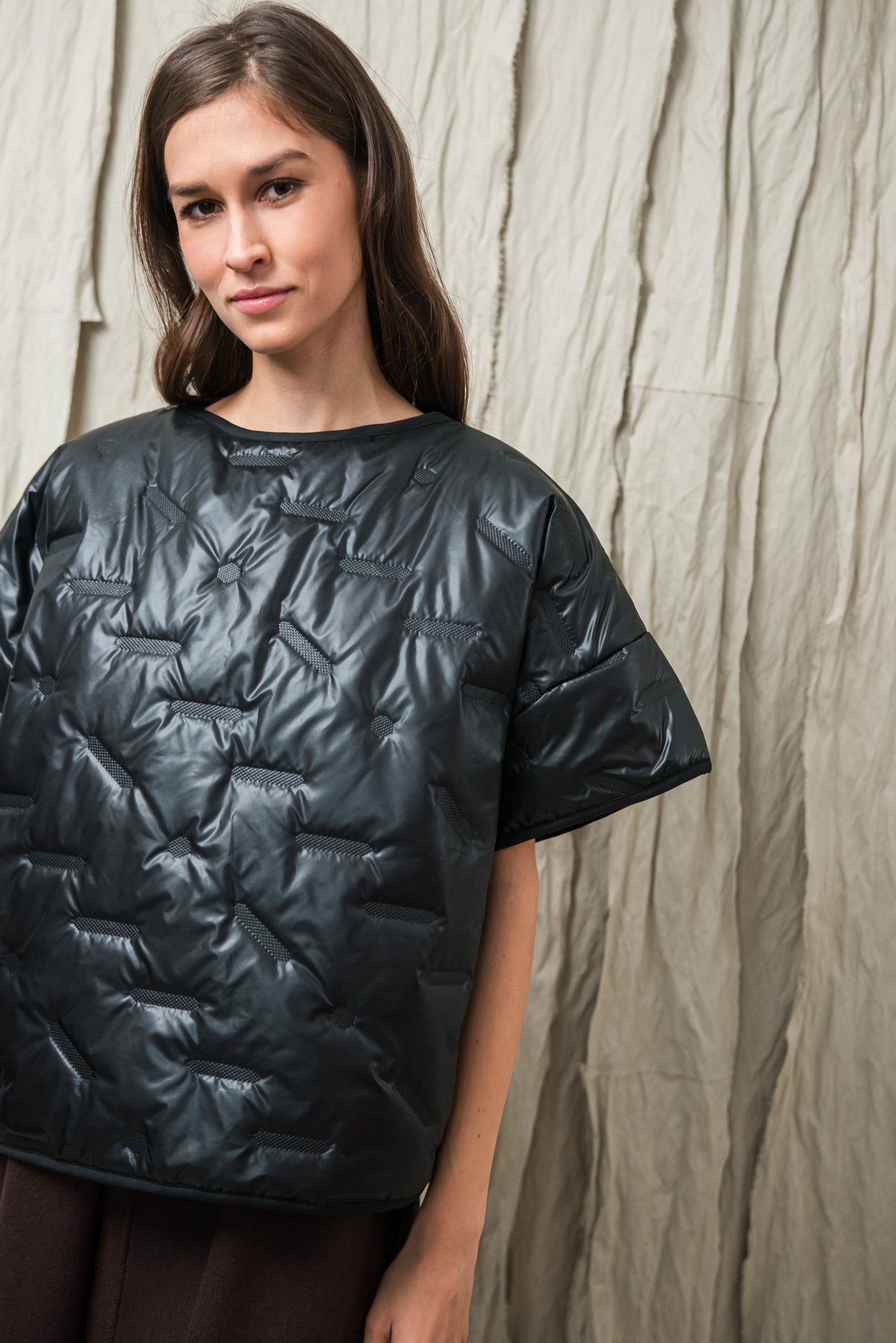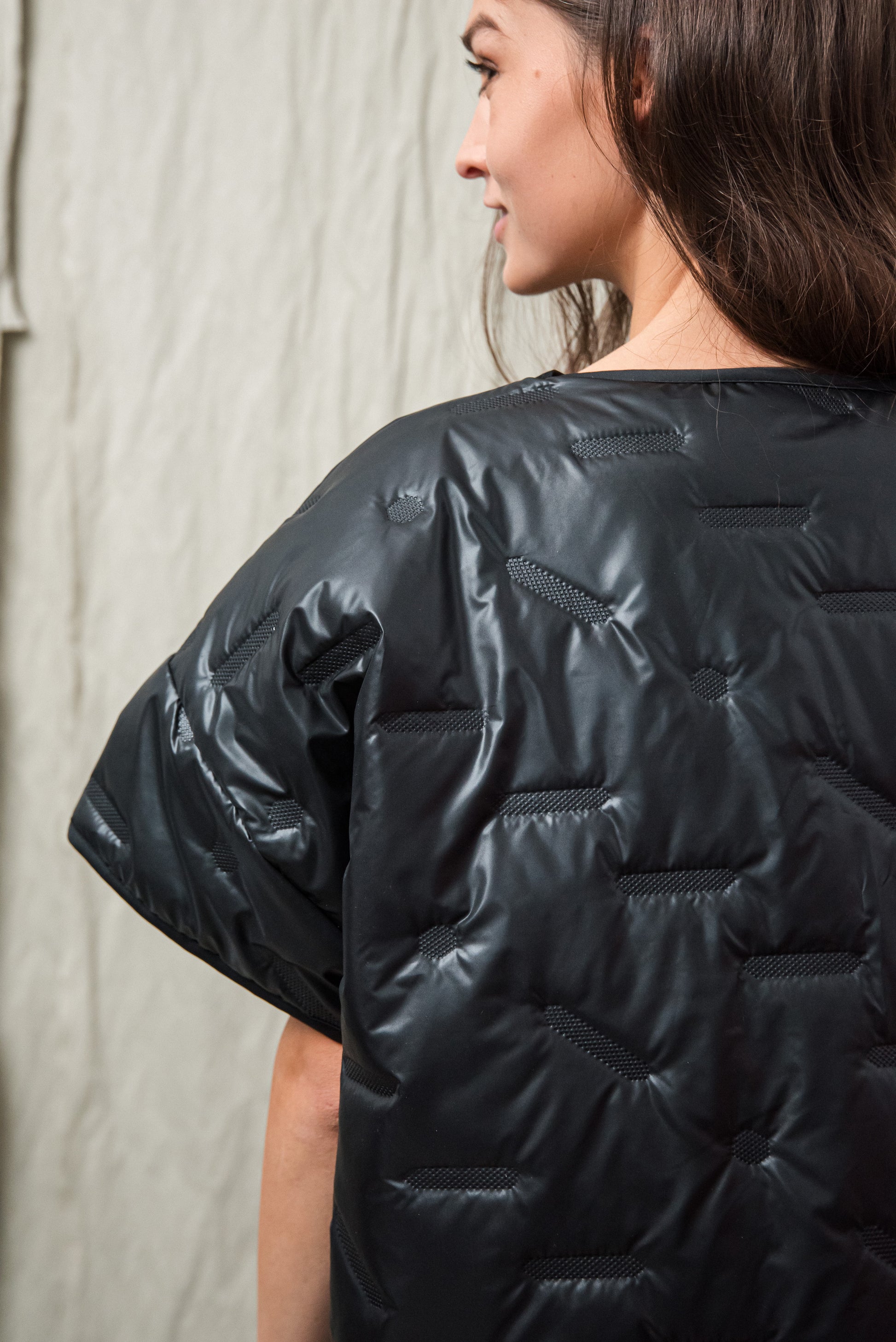 > A NAT dzseki a minimalizmus lényegét ragadja meg: egyszerű szabása és kerek nyakkivágása könnyed, funkcionális rétegként helyezkedik el a ruhatárban. Kiváló választás az átmeneti időszakokra vagy olyan alkalmakra, amikor gyorsan felvehető, praktikus viseletre van szükség – például autózás közben vagy hűvösebb beltéri terekben. Az anyag finoman csillanó, steppelt felülete egyedi karaktert ad a darabnak, miközben megőrzi a letisztult, időtálló formanyelvet. Így a NAT dzseki a tudatos, fenntartható öltözködés elegáns megtestesítője.