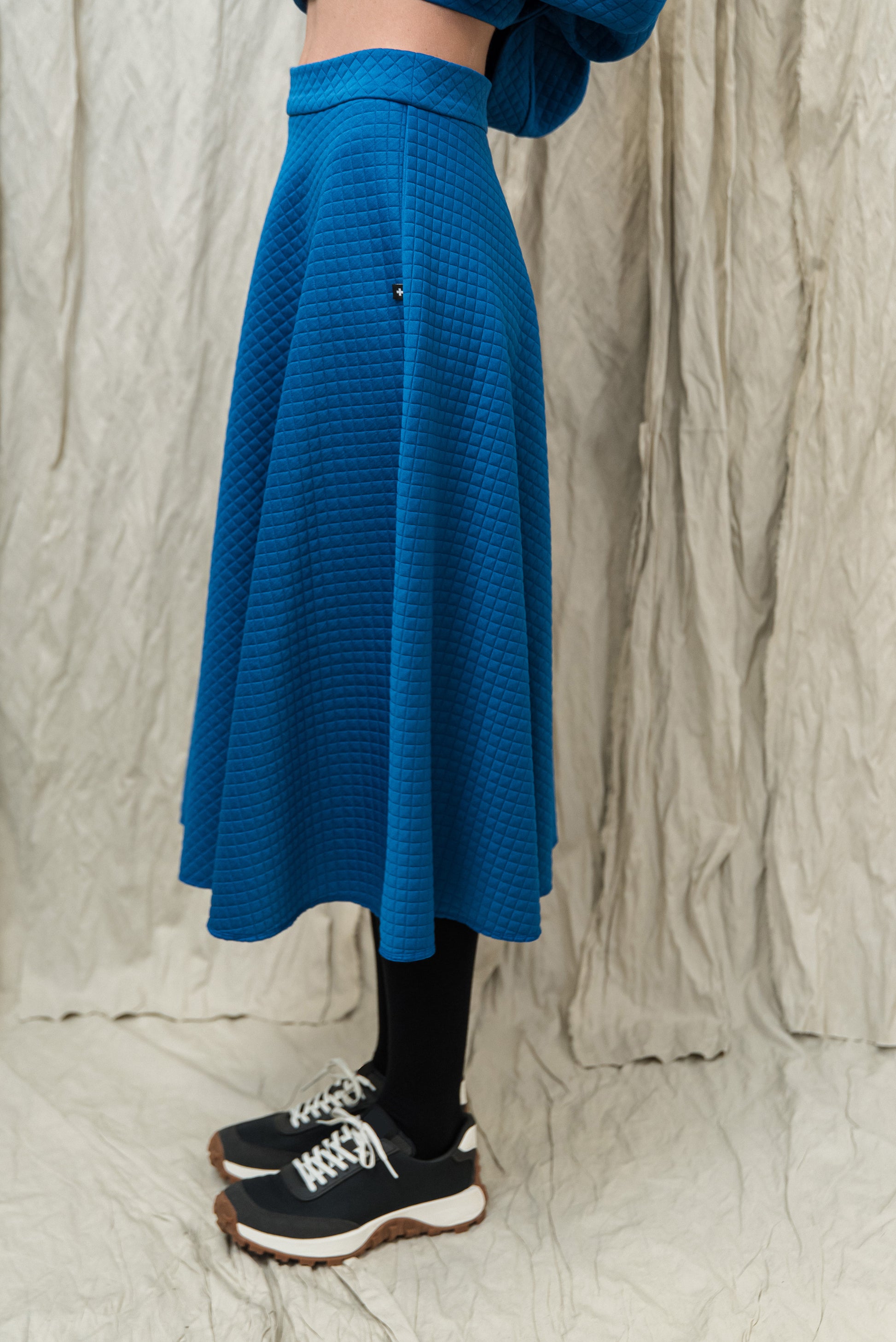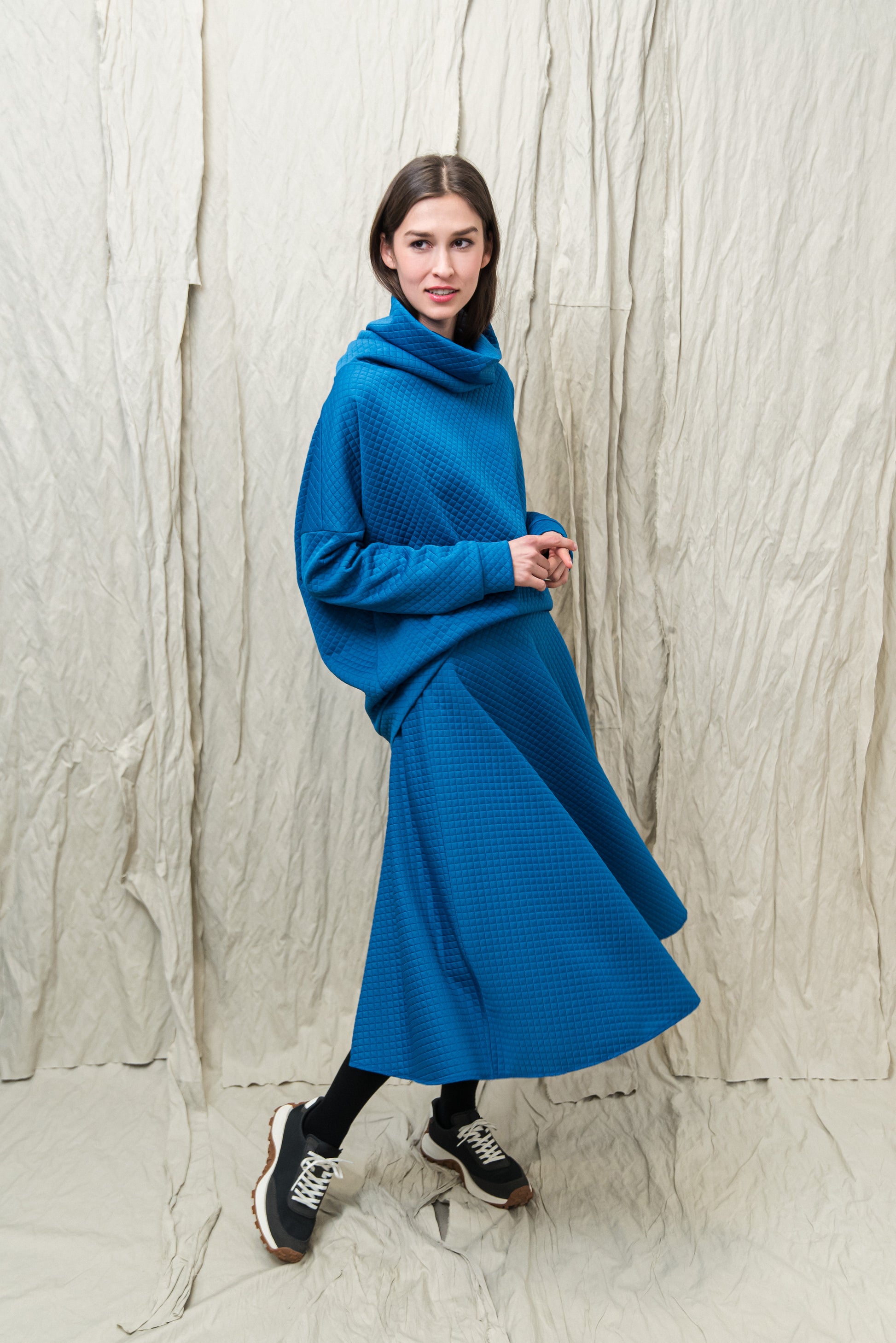 > A NUI szoknya azoknak készült, akik nem szeretnének választani kényelem és megjelenés között. Finoman bővülő szabása mozgás közben szabadon követi a testet, strukturált anyaga pedig tartást ad, miközben az összhatás letisztult marad. A térdig érő hossz és a hátsó, rejtett cipzár rendezett sziluettet teremt, az alsó lockolt eldolgozás pedig könnyedséget ad az esésnek és hosszú távon is megőrzi az anyag szépségét. Sportosan nőies karaktere lehetővé teszi, hogy egyetlen darabbal hidald át a hétköznapi és az igényesebb alkalmak közti határt. A NUI szoknya a NONPLUS szemléletében nem alkalmazkodást vár el, hanem teret ad: egy ruhadarab, amely együtt működik veled a mindennapokban.