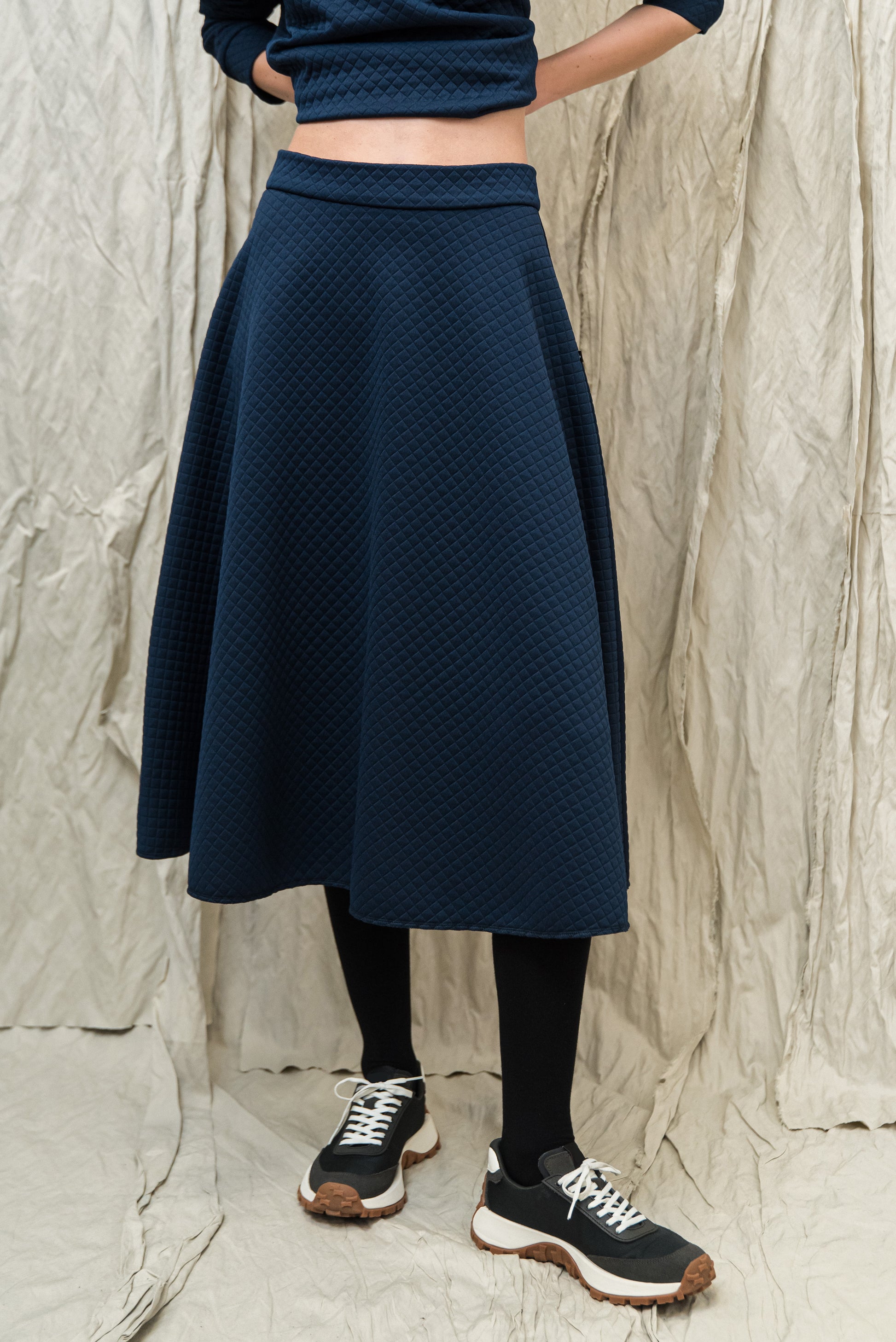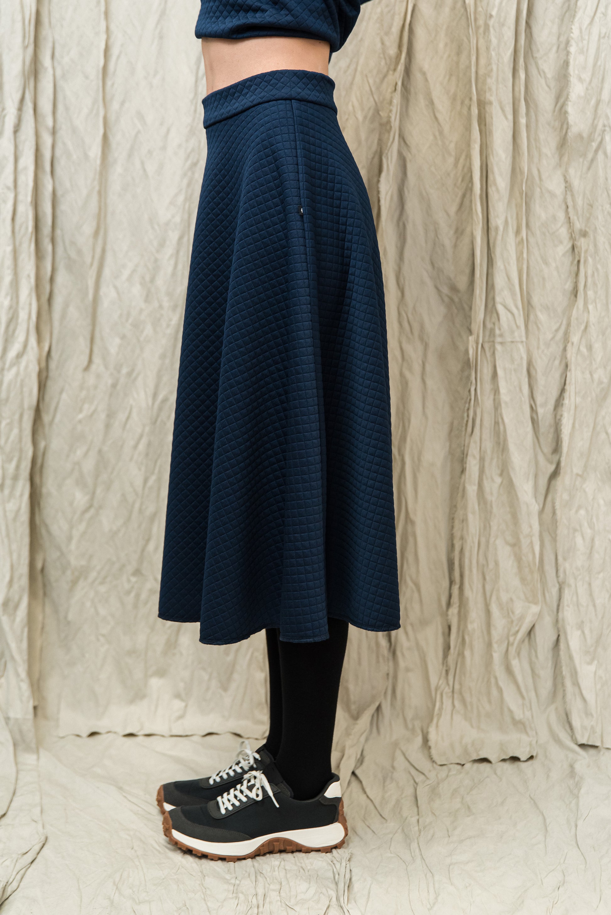 > A NUI szoknya azoknak készült, akik nem szeretnének választani kényelem és megjelenés között. Finoman bővülő szabása mozgás közben szabadon követi a testet, strukturált anyaga pedig tartást ad, miközben az összhatás letisztult marad. A térdig érő hossz és a hátsó, rejtett cipzár rendezett sziluettet teremt, az alsó lockolt eldolgozás pedig könnyedséget ad az esésnek és hosszú távon is megőrzi az anyag szépségét. Sportosan nőies karaktere lehetővé teszi, hogy egyetlen darabbal hidald át a hétköznapi és az igényesebb alkalmak közti határt. A NUI szoknya a NONPLUS szemléletében nem alkalmazkodást vár el, hanem teret ad: egy ruhadarab, amely együtt működik veled a mindennapokban.