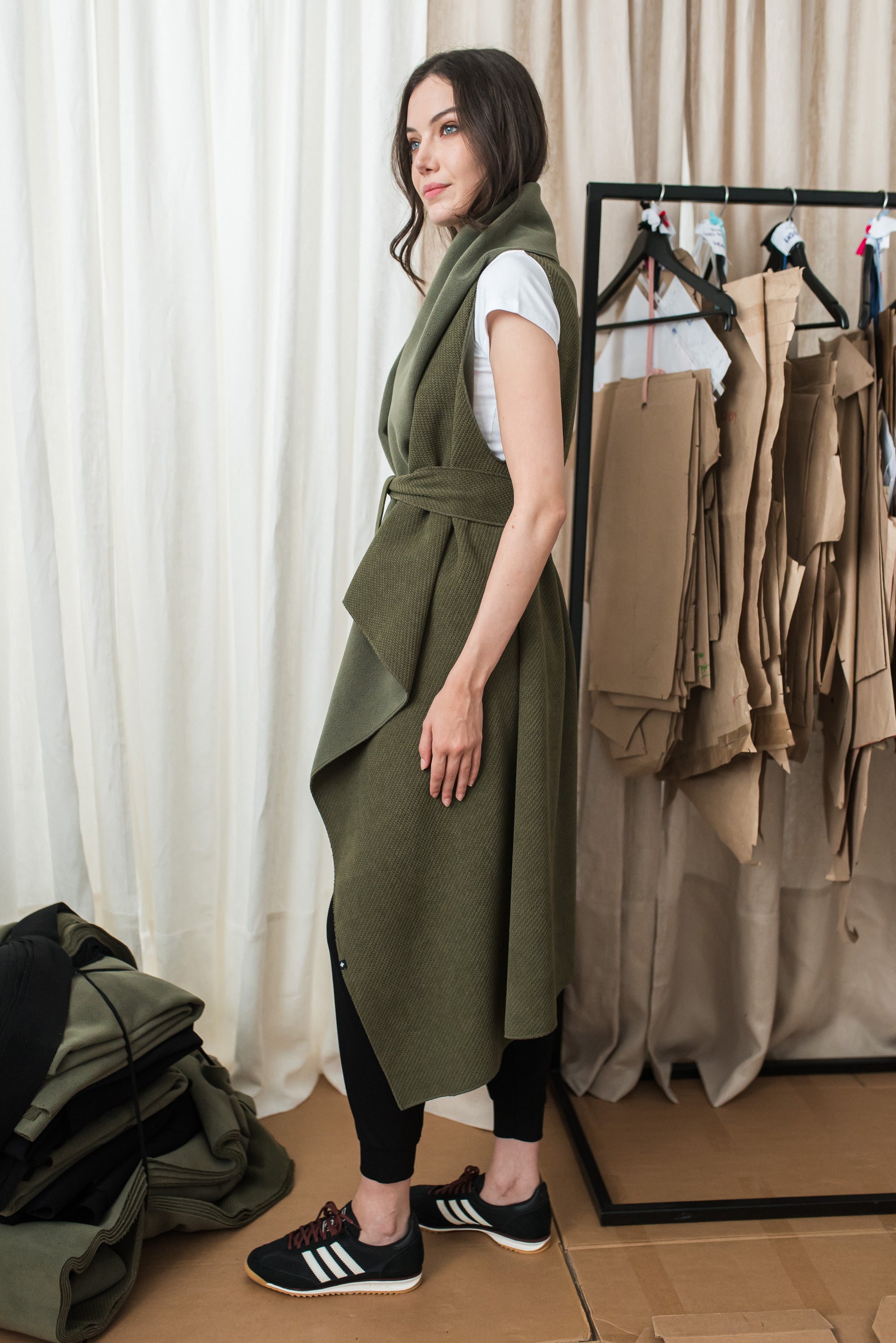 > A PAU hosszú mellény egy karakteres, sportosan elegáns darab, amely minden szettedet különlegessé teszi. Anyaga kívül kötött hatású, belül puha és meleg, így kellemes ölelő érzést nyújt a hűvösebb napokon. Letisztult vonalait a mikrolock eldolgozás hangsúlyozza, hosszú szabása pedig egyszerre lezser és látványos. Anyagából készült övével karcsúsítottan, öv nélkül pedig könnyed esésében is hordhatod. Tökéletes választás önmagában, mellényként viselve, de kiskabátra rétegezve is stílusos kiegészítő. Egy sokoldalú darab, amely egyszerre kényelmes, praktikus és igazán nőies – igazi szerelemdarab.