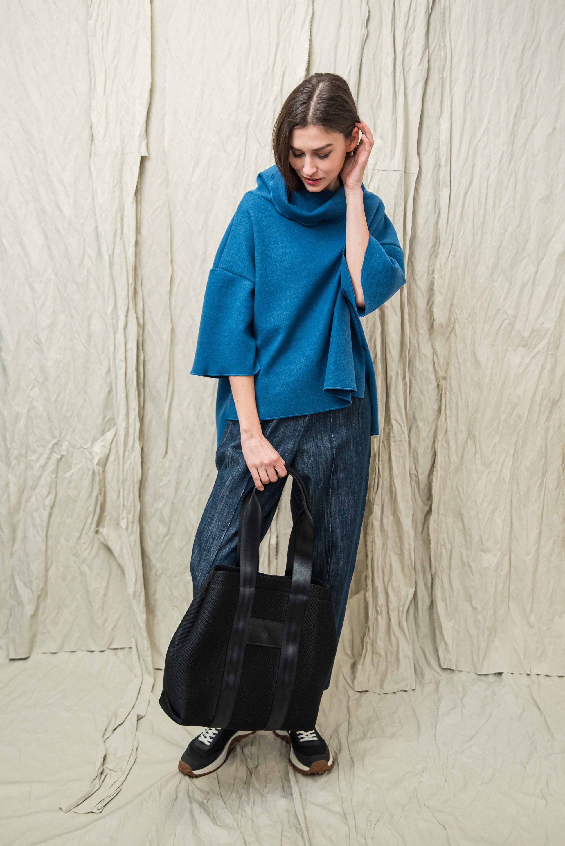 > A RAYA felső letisztult szabásával és tudatos részletmegoldásaival a nyugodt, átgondolt öltözködés alapdarabja. Kámzsás nyakkialakítása természetes eséssel simul a nyak vonalához, miközben keretet ad az arcnak és rétegezve is kényelmes viselet marad. Elöl rövidebb, hátul hosszabb fazonja finoman követi a test mozgását, megoldást kínálva a hétköznapi arányproblémákra. Az anyagszélek lockolt eldolgozása nemcsak tartósságot biztosít, hanem a funkcionális esztétika jegyében látható részletté válik. Strukturált, mégis puha anyaga egész napos komfortot ad, anélkül hogy elveszítené formáját. Könnyen kombinálható darab, amely kevesebb ruhával is sokféle megjelenést tesz lehetővé. A RAYA felső azoknak szól, akik hosszú távra választanak, és értékelik a minőséget, az időtállóságot és a fenntartható szemléletet.