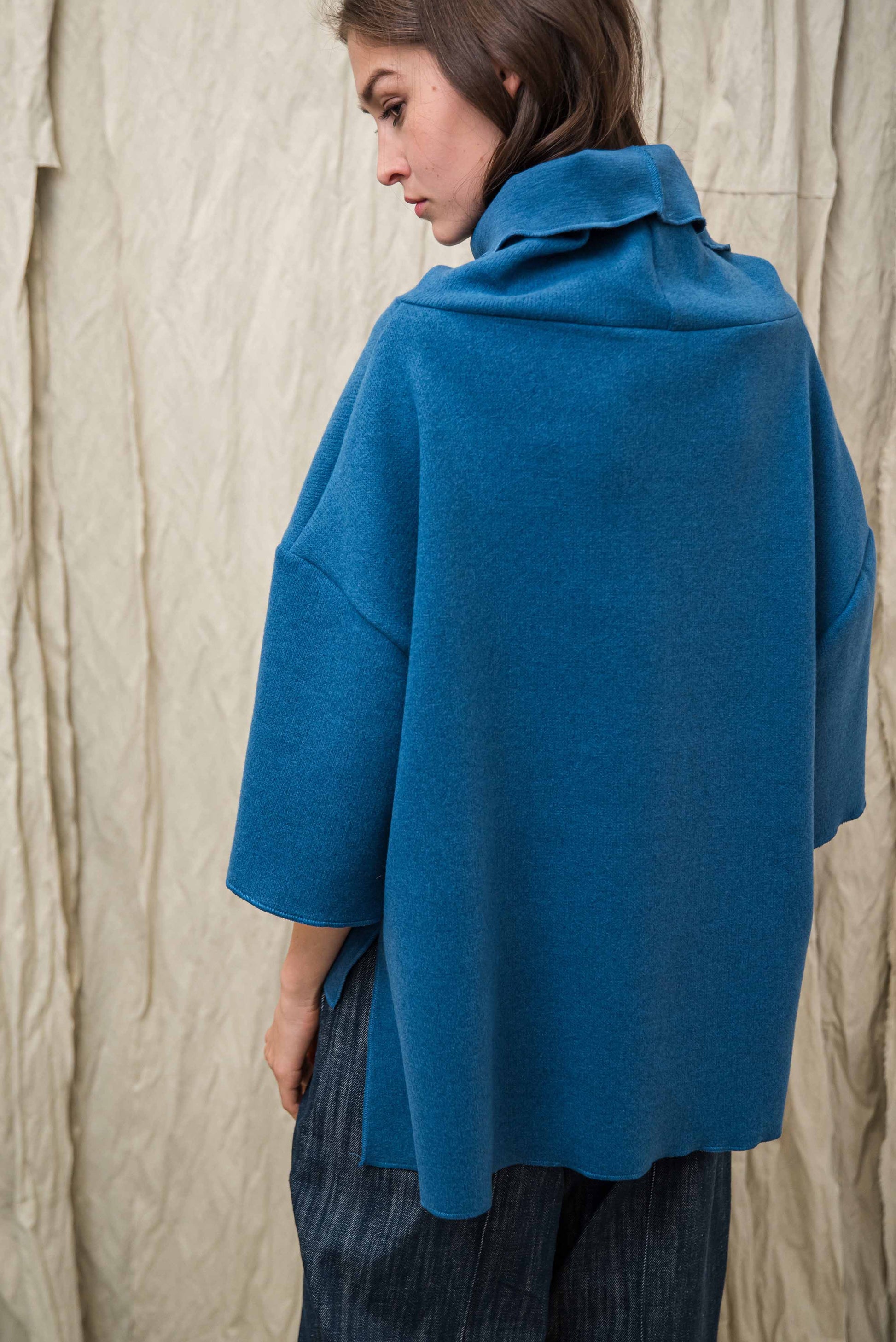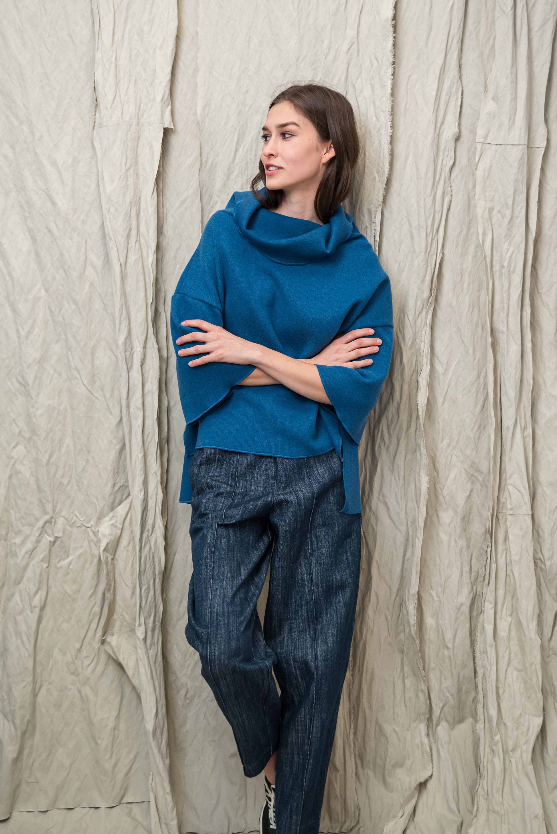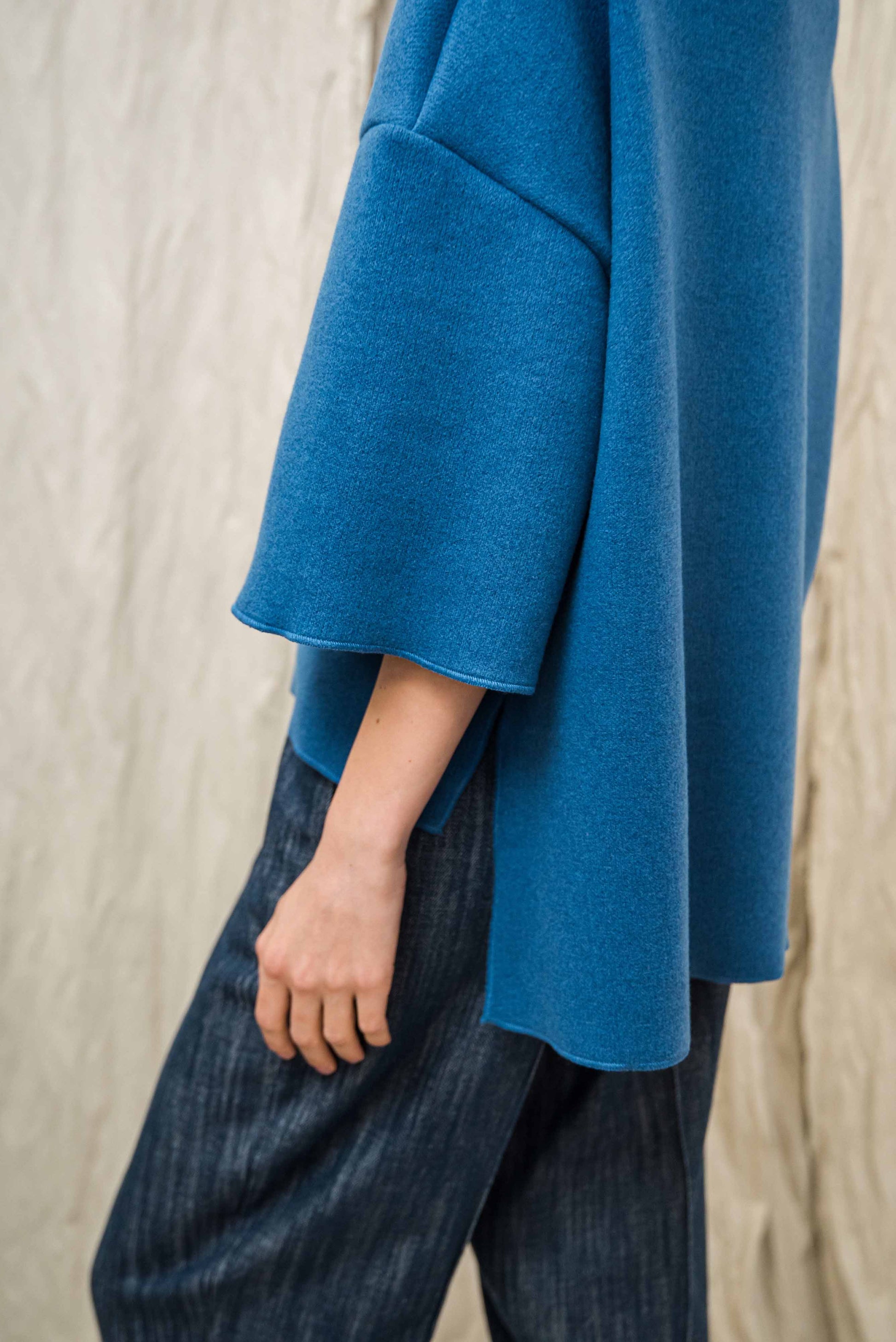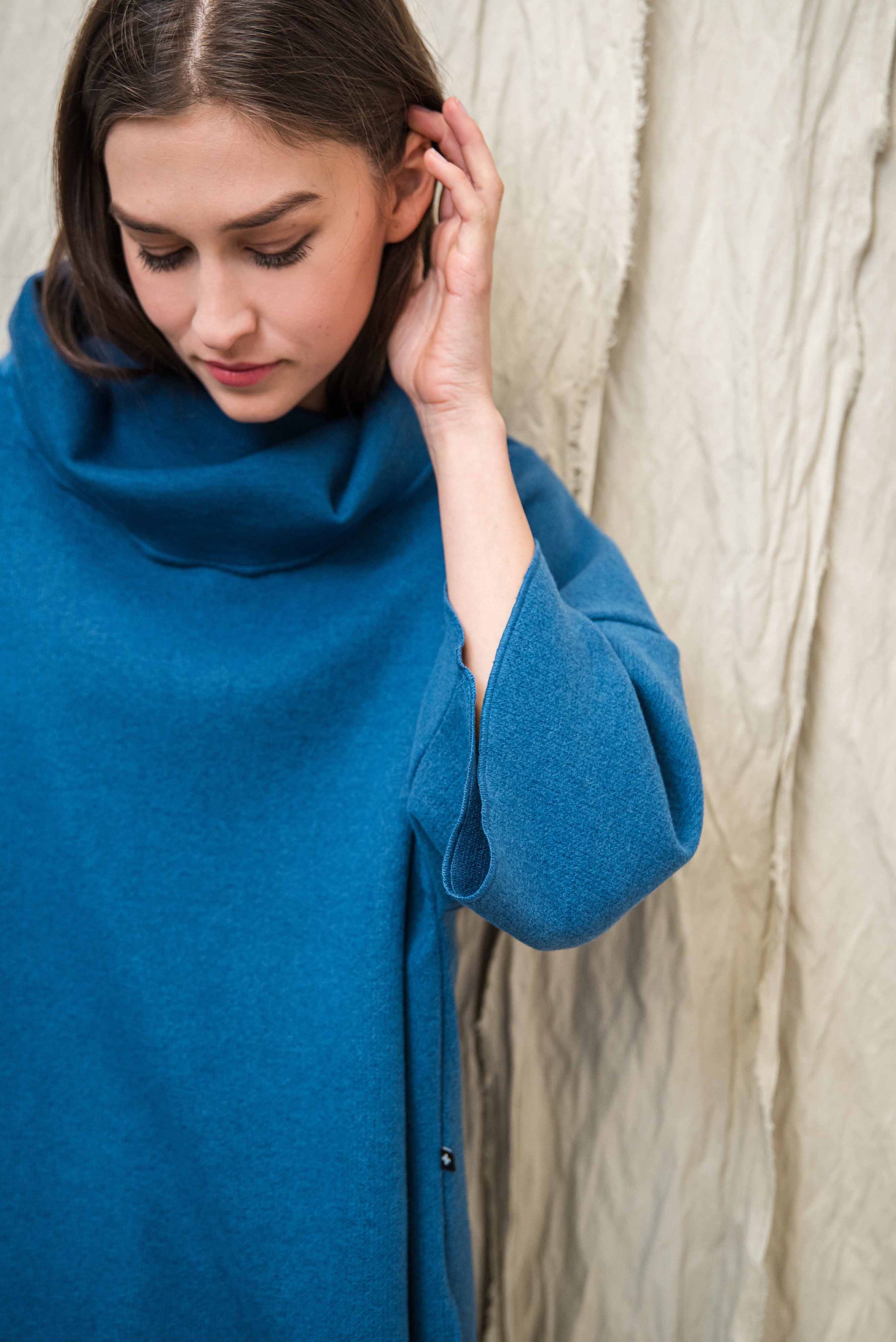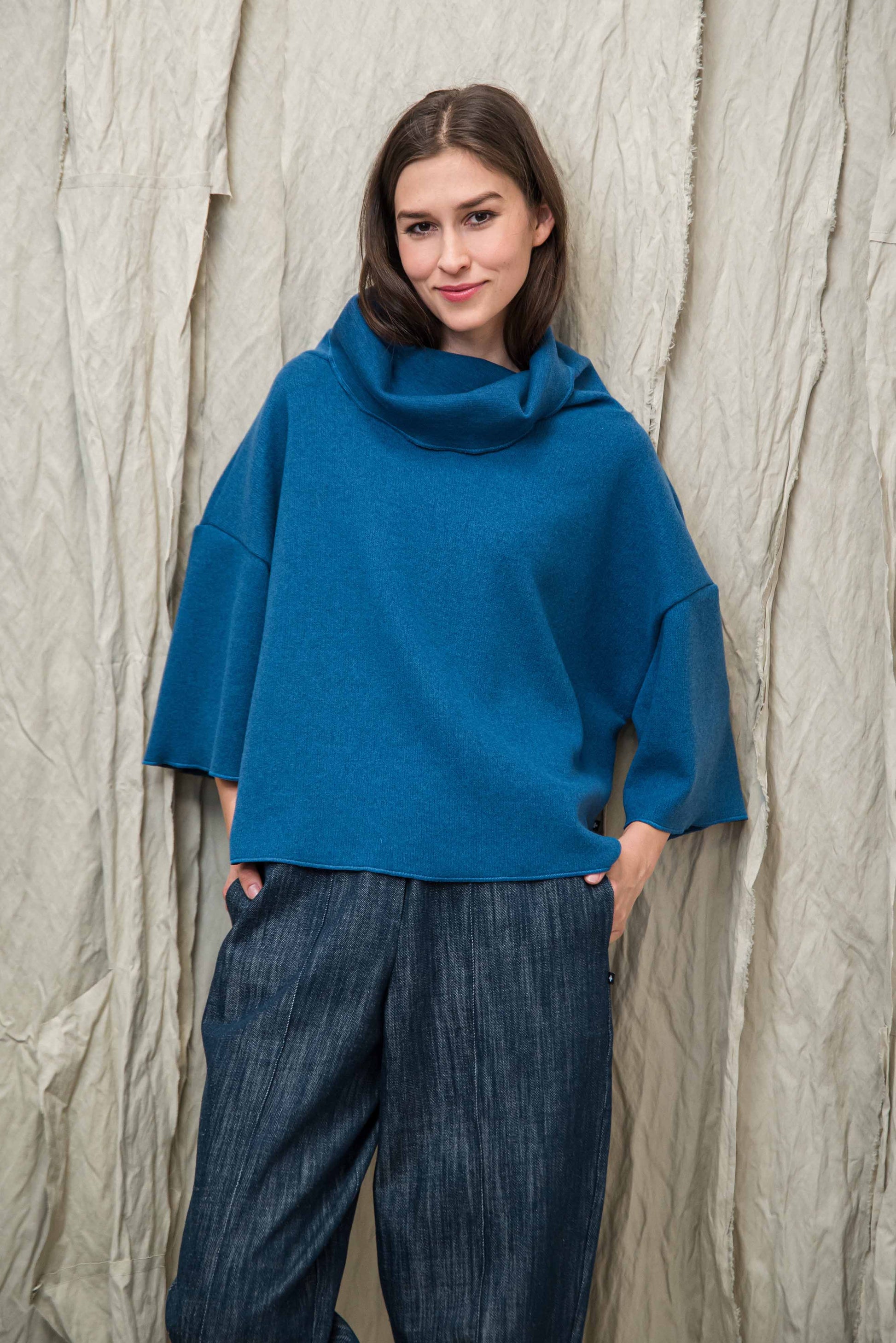 A közepesen vastag, puha kötött textúra természetes rugalmasságával finoman követi a mozdulatokat, miközben kellemes meleget ad. Felülete maximálisan puha, selymes tapintású, lágy esésű, és kíméletesen simul a bőrhöz — ez adja azt az azonnal érezhető komfortot, ami hidegebb napokon különösen jól esik. A szálak strukturált összefonódása stabilitást biztosít, mégis megtartja azt a bensőséges, otthonos puhaságot, amely a minőségi kötött anyagok sajátja. A természetes lágyságból adódóan a felület hordással finoman bolyhosodhat - ez a kötött kelmékre jellemző, teljesen normális folyamat, amely a mindennapi használat során alakul ki. Ha ilyet tapasztalsz, a kisebb göbök kézzel vagy kímélő bolyhosodás-eltávolítóval óvatosan eltávolíthatók, így az anyag sokáig megőrzi harmonikus, puha megjelenését és szépségét. A textúra melege, rugalmassága és puhasága együtt egy olyan anyagot eredményez, amely egyszerre megbízható, kényelmet adó és finoman ölelő érzetű — egy igazán kellemes társ a hűvösebb évszakok mindennapjaiban.