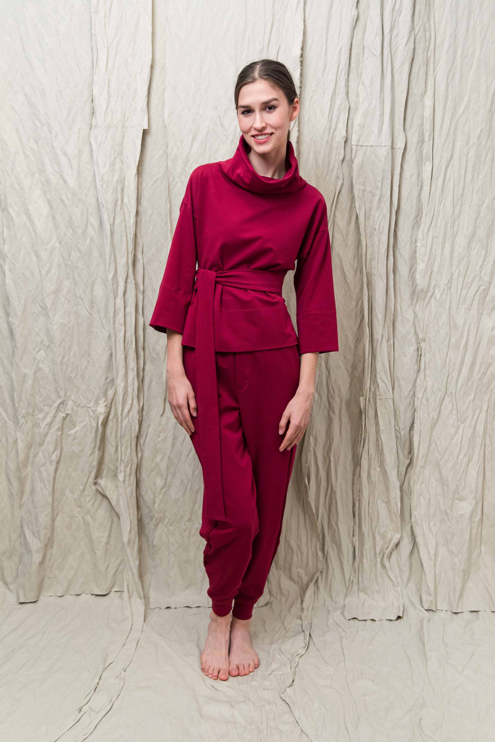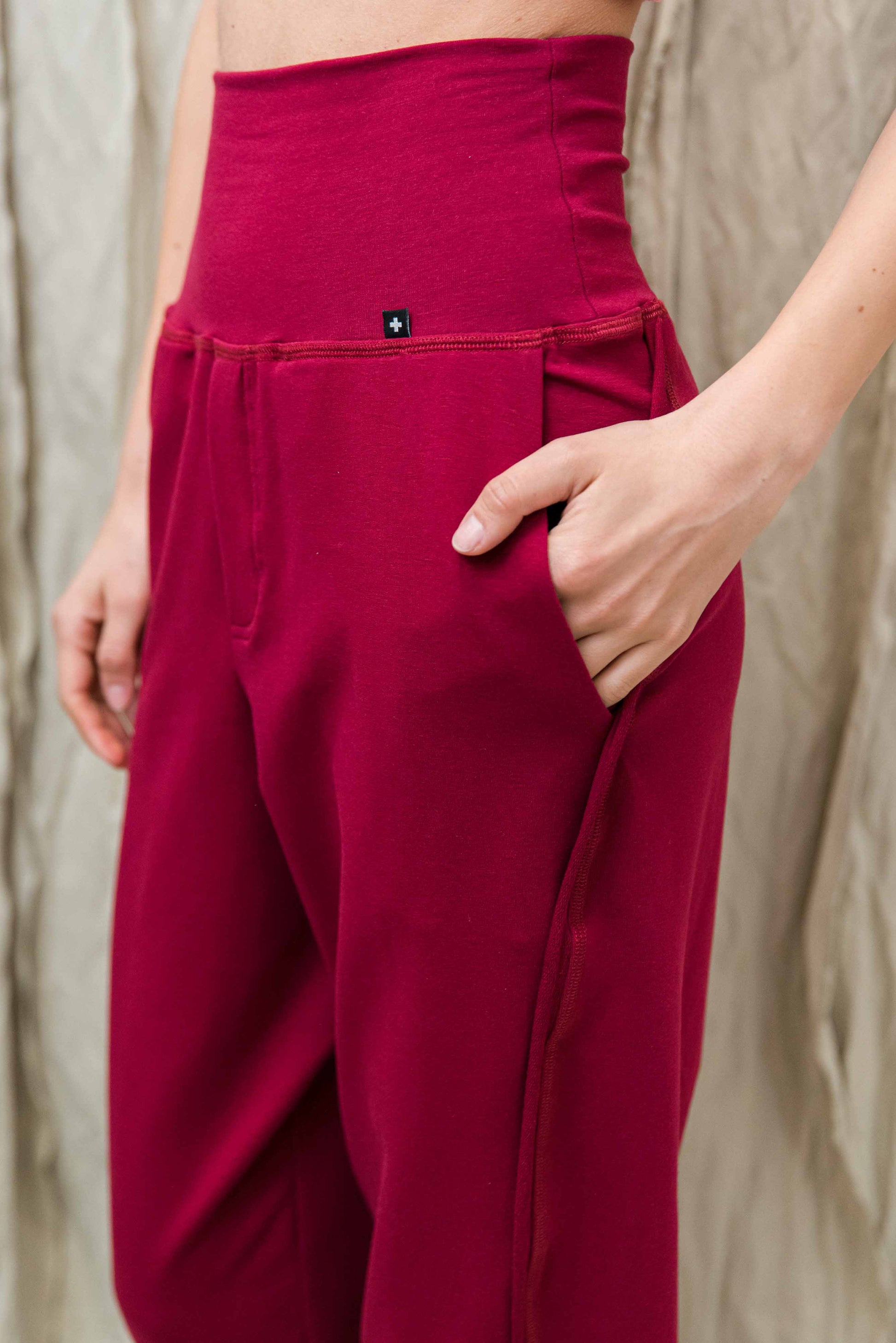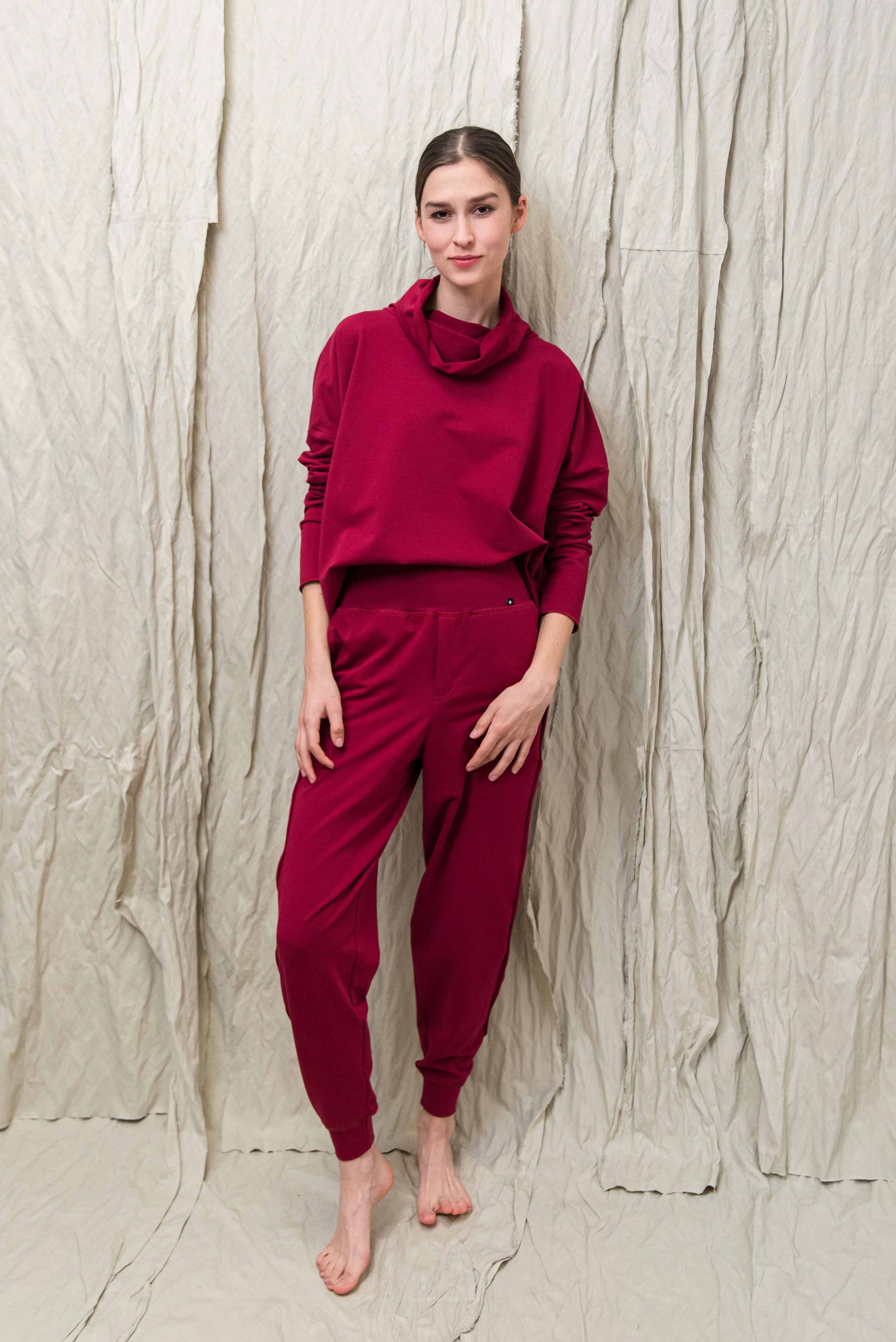 > SANO nadrágunk a kényelmes szabadidőnadrág és a stílusos utcai viselet tökéletes egyensúlya. Laza szabása, a puha passzé részek derékon és bokánál - és fenntartható pamut anyaga gondoskodik a szabad kényelmes mozgásról és a tudatos öltözködés élményéről. Minden időszakban ideális társ: könnyed, mégis karakteres. Párosítsd AYA pulóverünkkel a lezser, egységes megjelenésért.