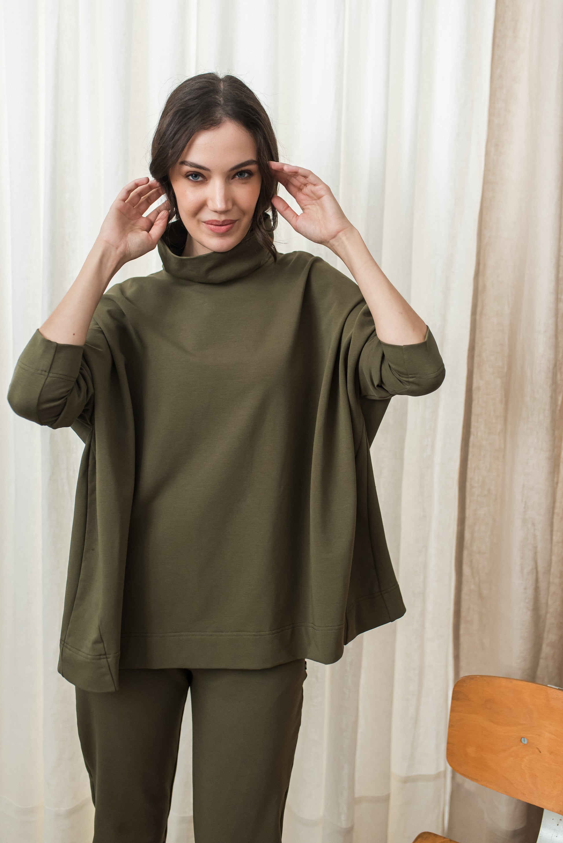 > SHIA pulóverünk egyméretes, oversize darab - mely rövid garbójával, hosszú ujjával és bő szabásával gondoskodik a tökéletes kényelemről - puha anyagának köszönhetően pedig ölelő gondoskodással kíséri végig a napodat. Ez a pulcsi főnyeremény annak, akinek a harmónia lételeme - minden magasságon és alkaton jól mutat, az őszi szezon egyik kedvence nálunk.
