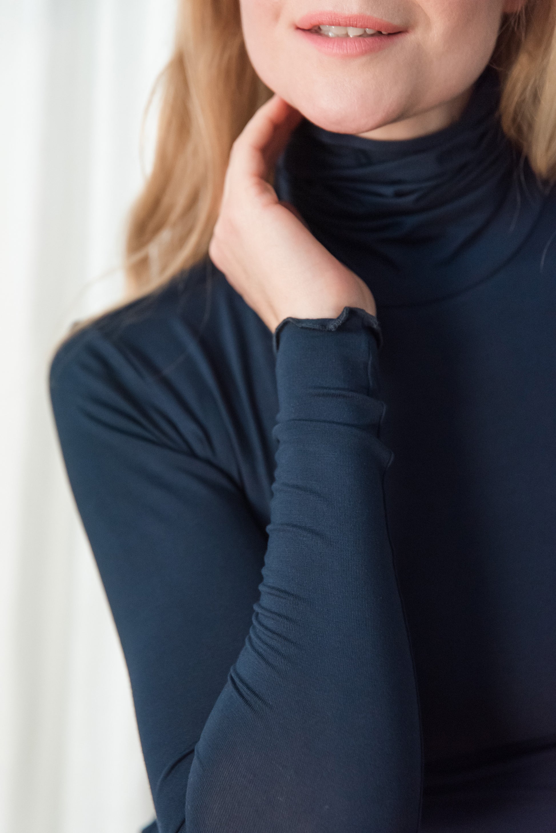 > SUA garbónk végig szűk, hosszú ujjú fazon - az alja, a garbó része és ujja vége mikrolock eldolgozása adja egyedi, letisztult, puritán karakterét, amit nagyon szeretünk! Puha bambusz anyagunkból könnyed és ölelő darab - szinte észrevétlen viselése, tökéletesen kényelmes!