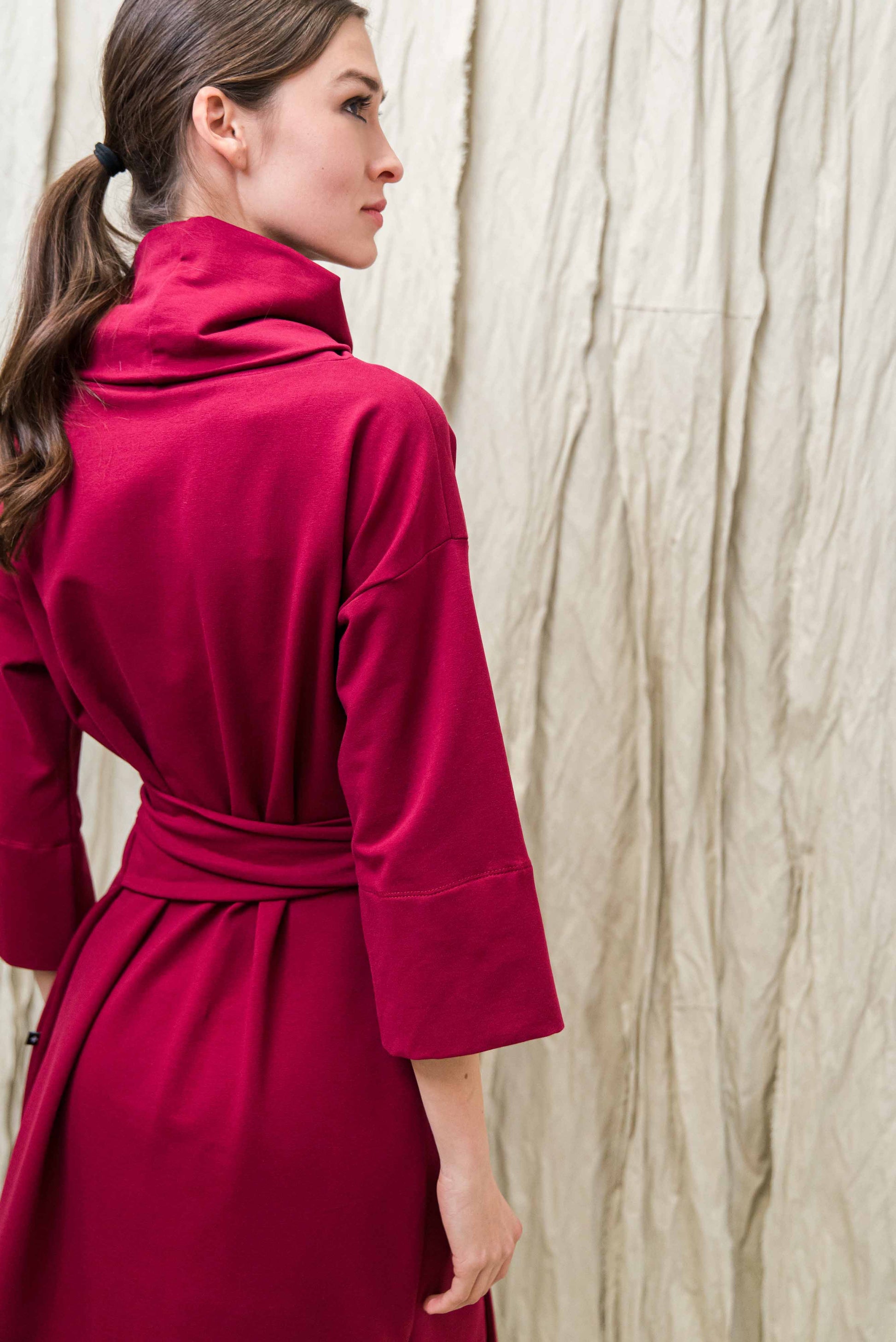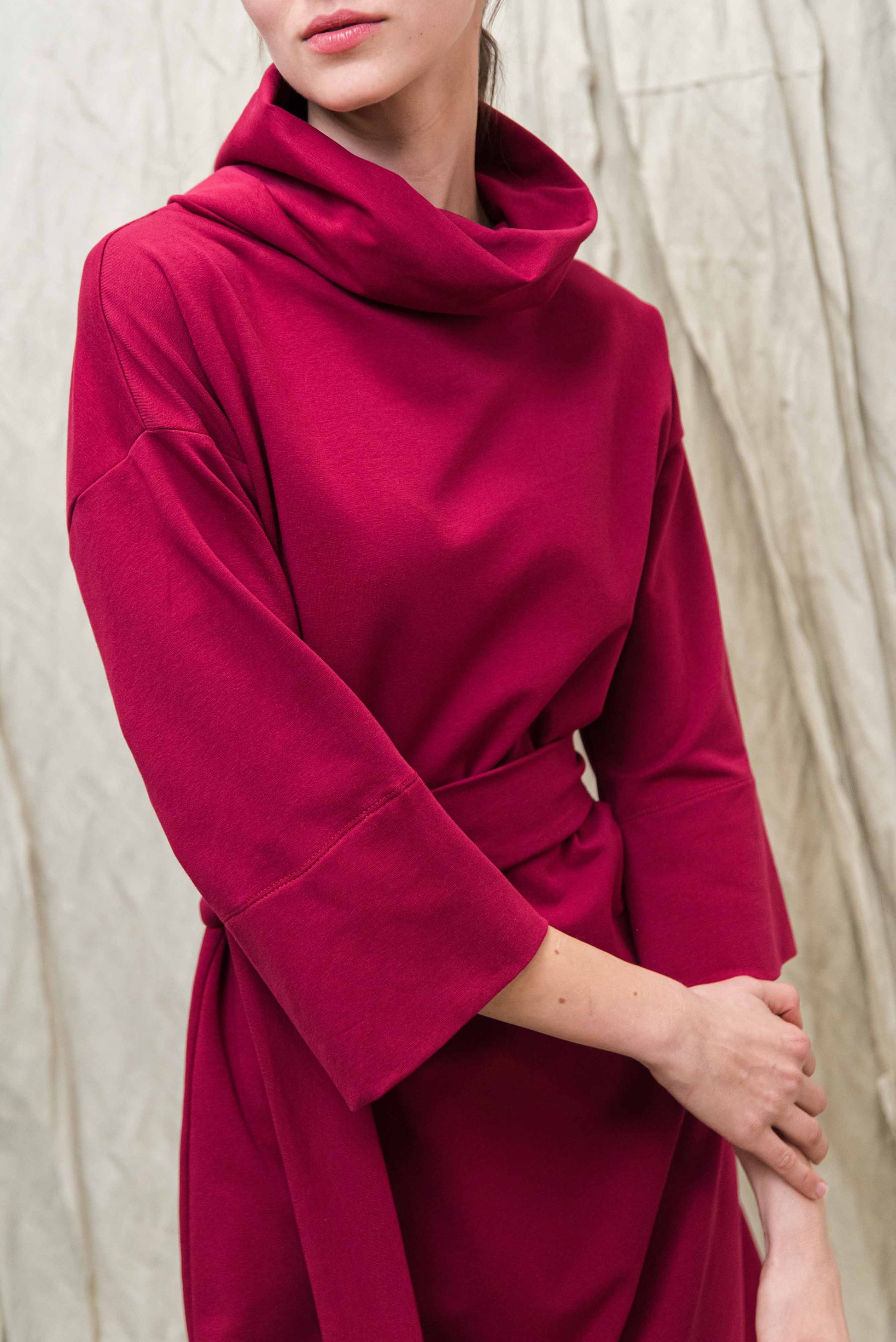 > TAMA ruhánk lágyan követi a test vonalát: kámzsás nyaka, 3/4-es ujjai és finoman bővülő sziluettje természetes mozdulatokat enged. Megkötője egy oldalról indul, melyek magunkon körbe tekerve és az egyik oldalon magán az övön átkötve rögzíthetünk — úgy formálva, ahogy neked a legkényelmesebb. Puha pamut anyagának köszönhetően egész nap kényeztető könnyedséget ad, miközben minden alkaton letisztult megjelenést mutat. Nem véletlen, hogy az egyik legnagyobb kedvenc a NONPLUS ruhatárban.