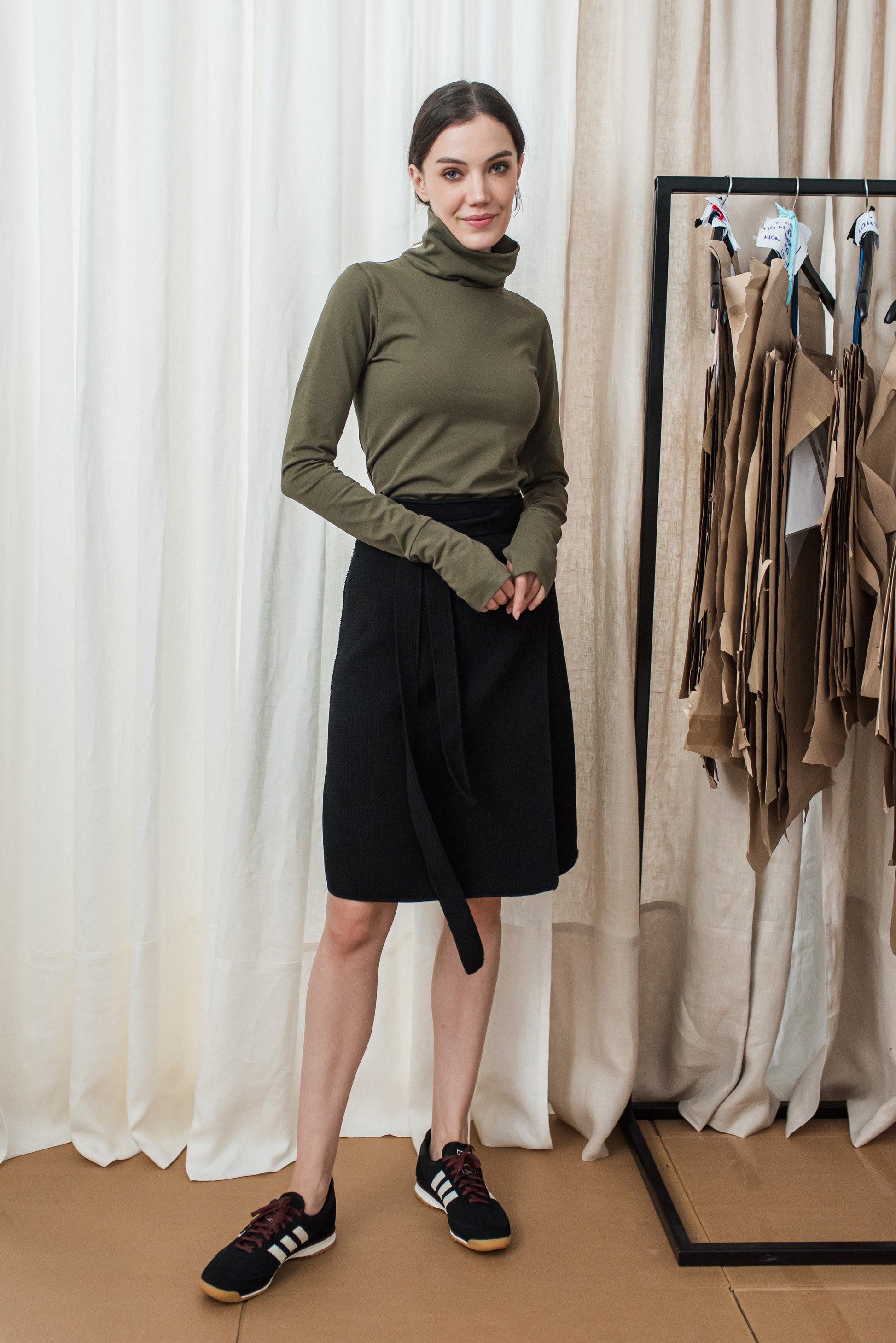 > A TOMO szoknya a nonplusz letisztult esztétikáját képviseli: egyszerre nőies, modern és kényelmes. Az átlapolós fazon elegáns mozgást enged, miközben kiemeli a derékrészt és természetes vonalvezetésével finom egyensúlyt teremt a strukturáltság és a lazaság között. A puha, mégis tartásos anyag mikrolock eldolgozással készült, amely apró részleteiben is a minőséget és gondosságot tükrözi. Az AYA pulóverrel szettben viselve letisztult, sportosan elegáns megjelenést ad – tökéletes választás a mindennapokra, amikor a kényelem és a stílus kéz a kézben jár.